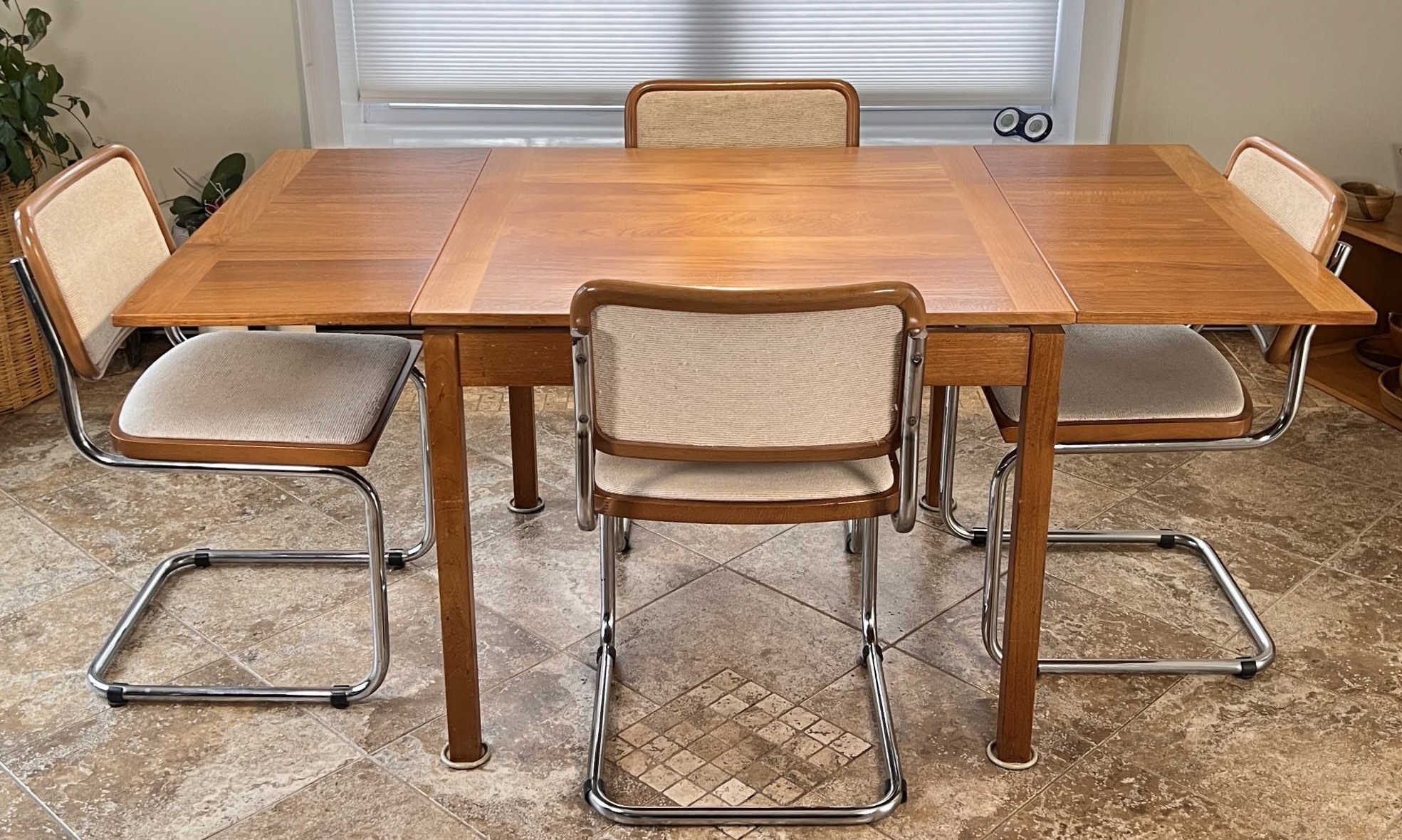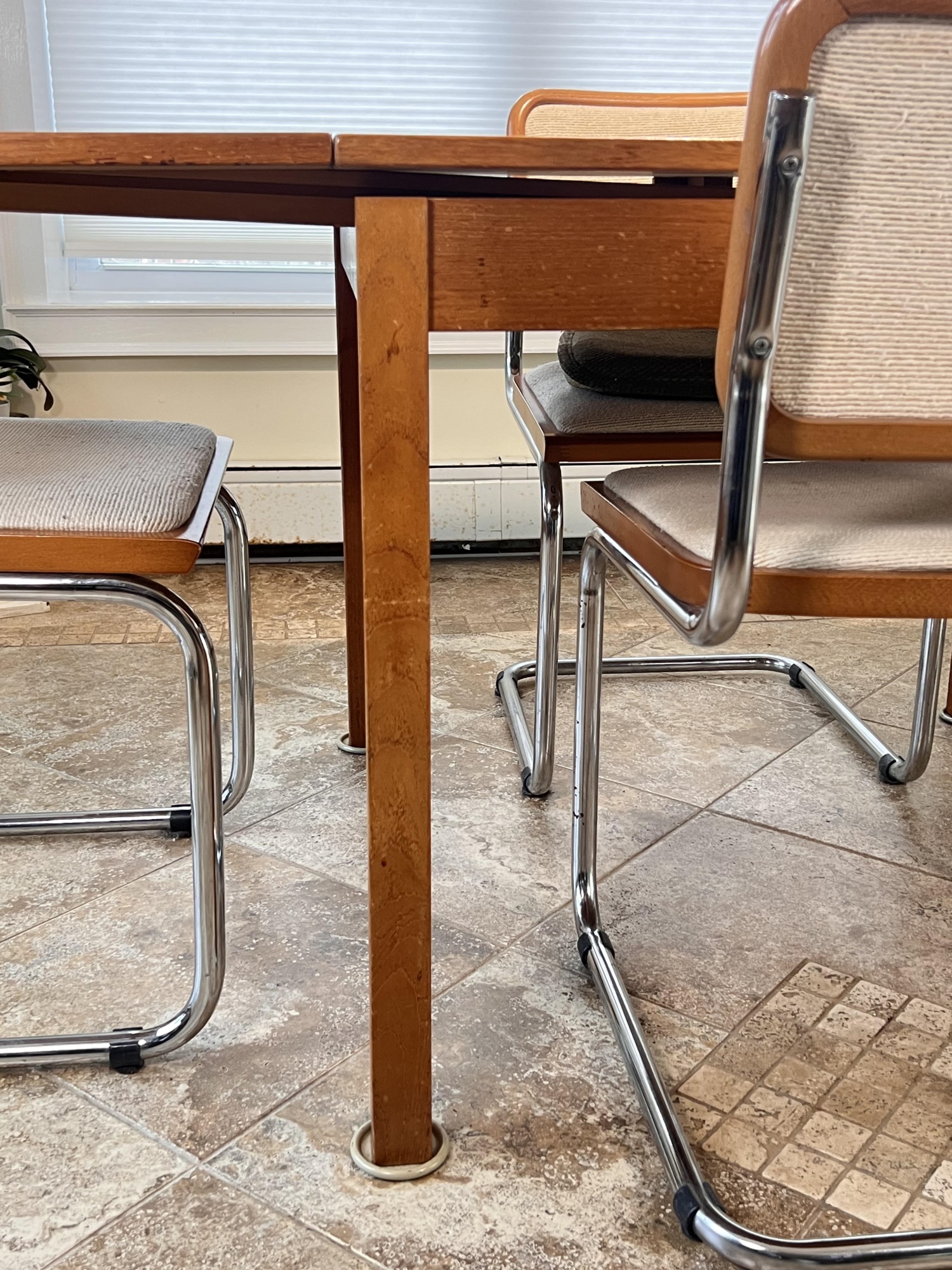 with (4) Chrome framed chairs. 29 x 67 x 35 1/4 inches