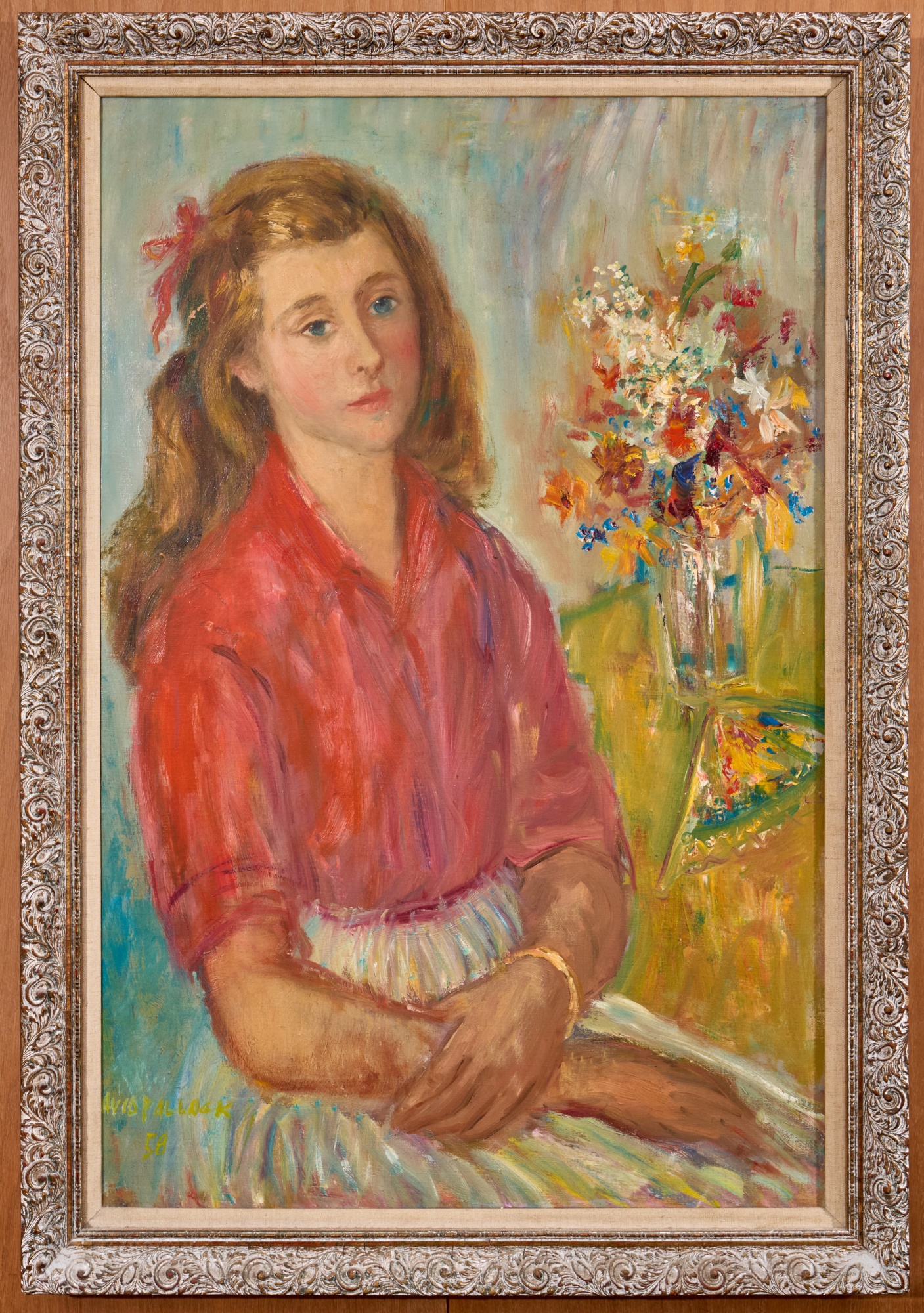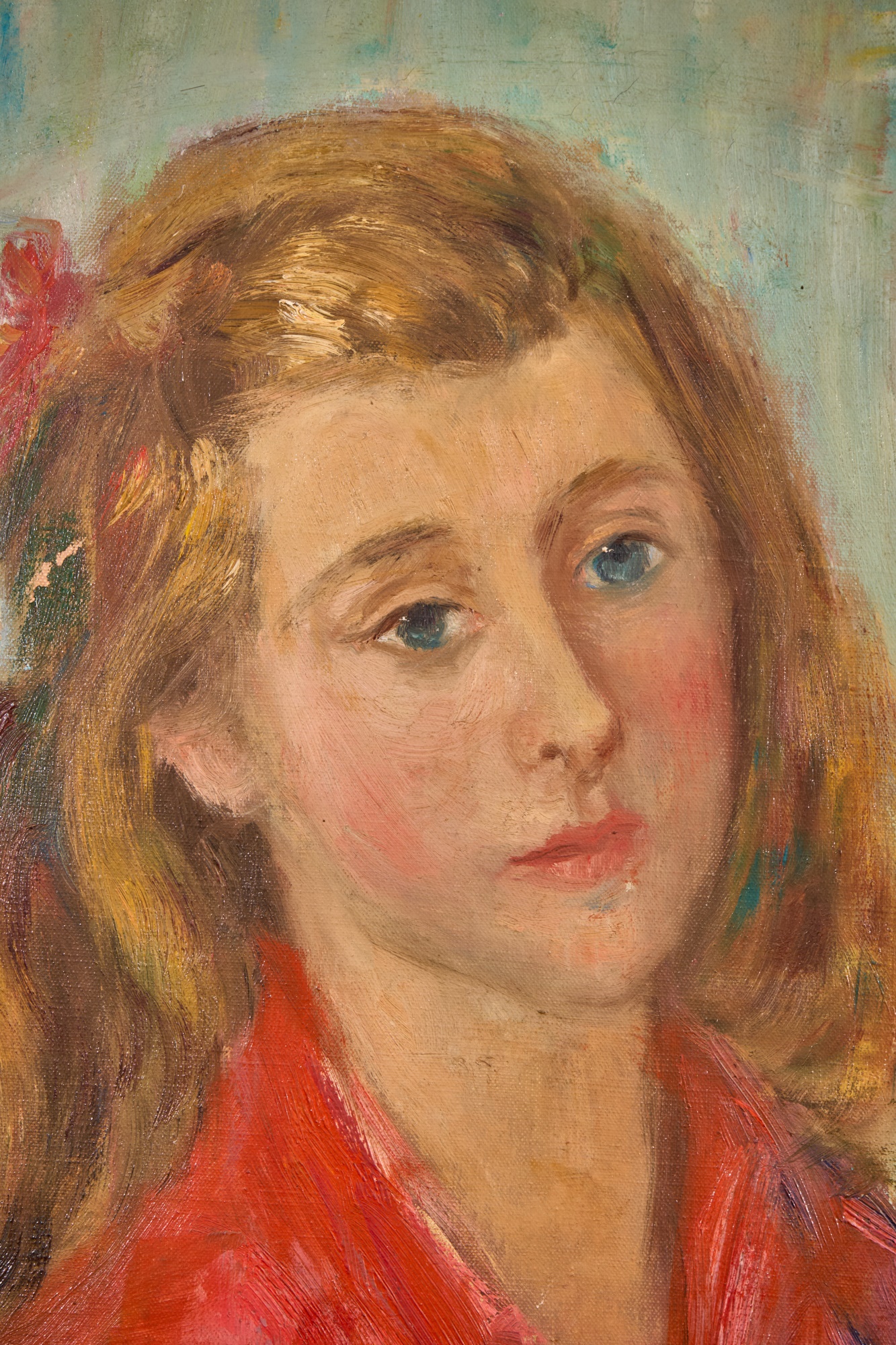 Portrait of a Young Girl. Oil on canvas 35 x 23 inches. signed and dated 1958. framed 39 x 27 inches (overall) Condition: Good