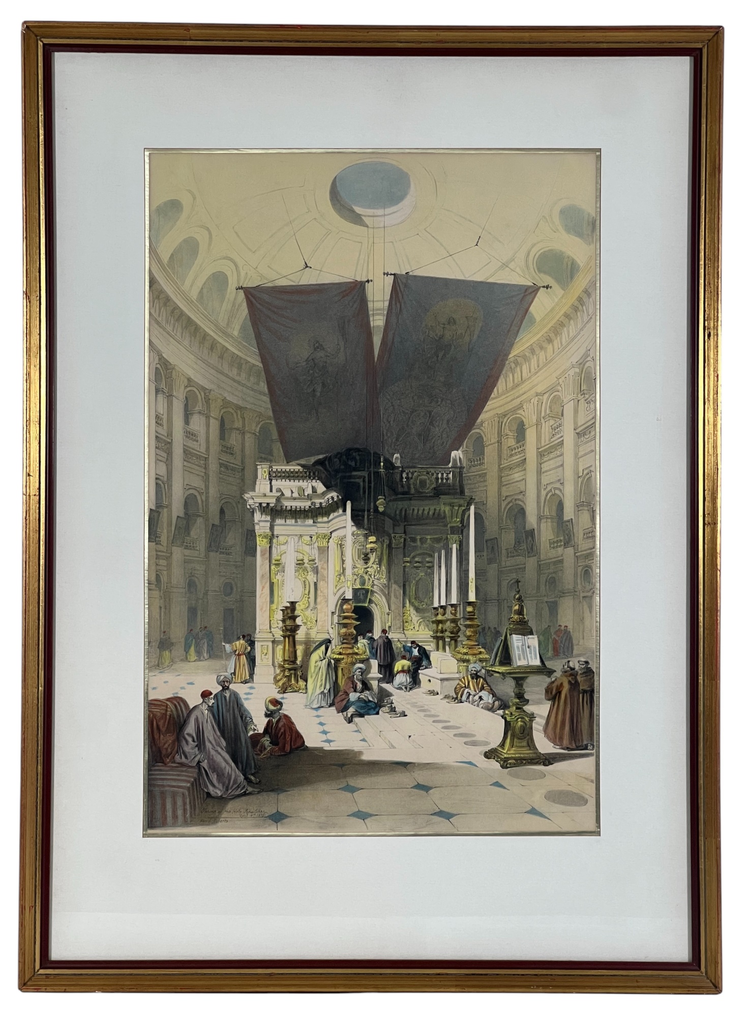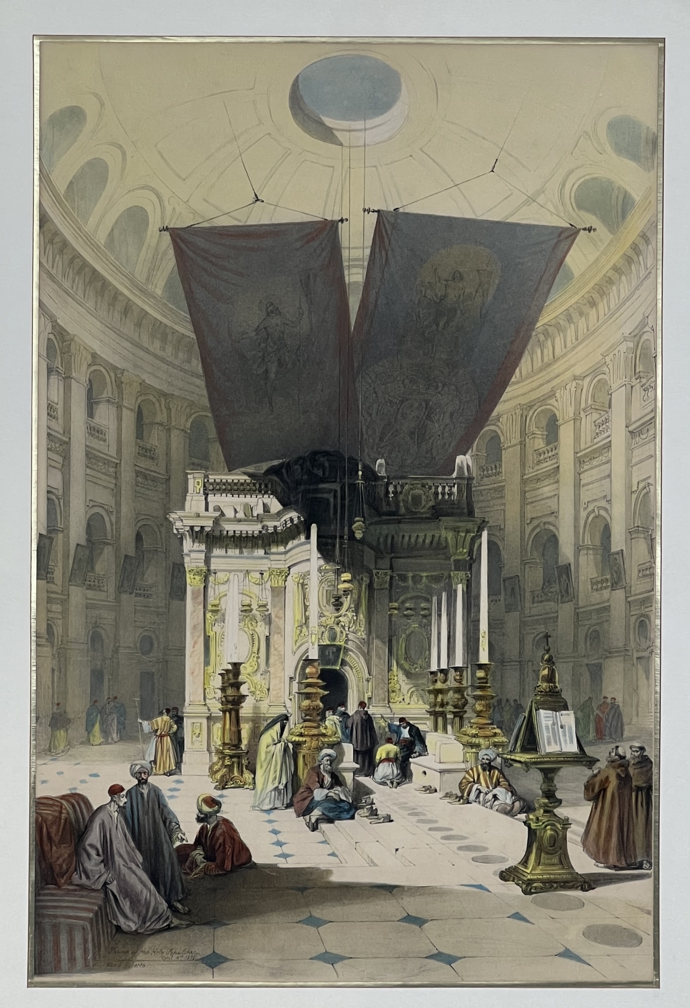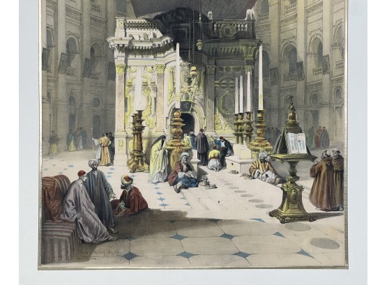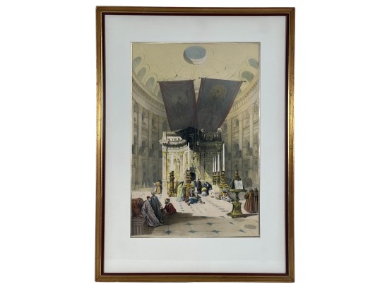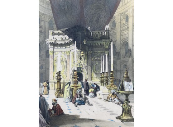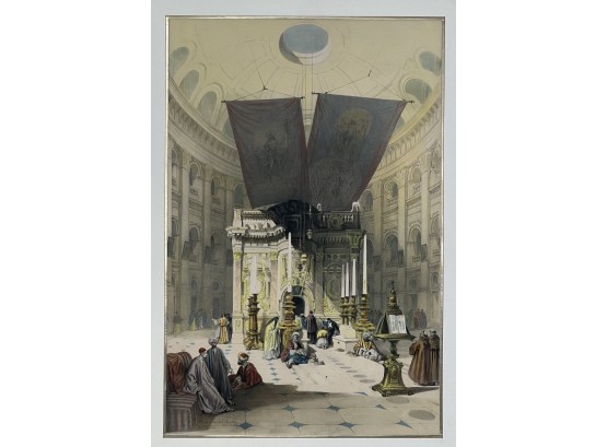 "Shrine of the Holy Sepulchre", chromolithograph, purchased in Jerusalem. 27 x 19 1/2 inches overall. Condition: Good. Temp No 8847