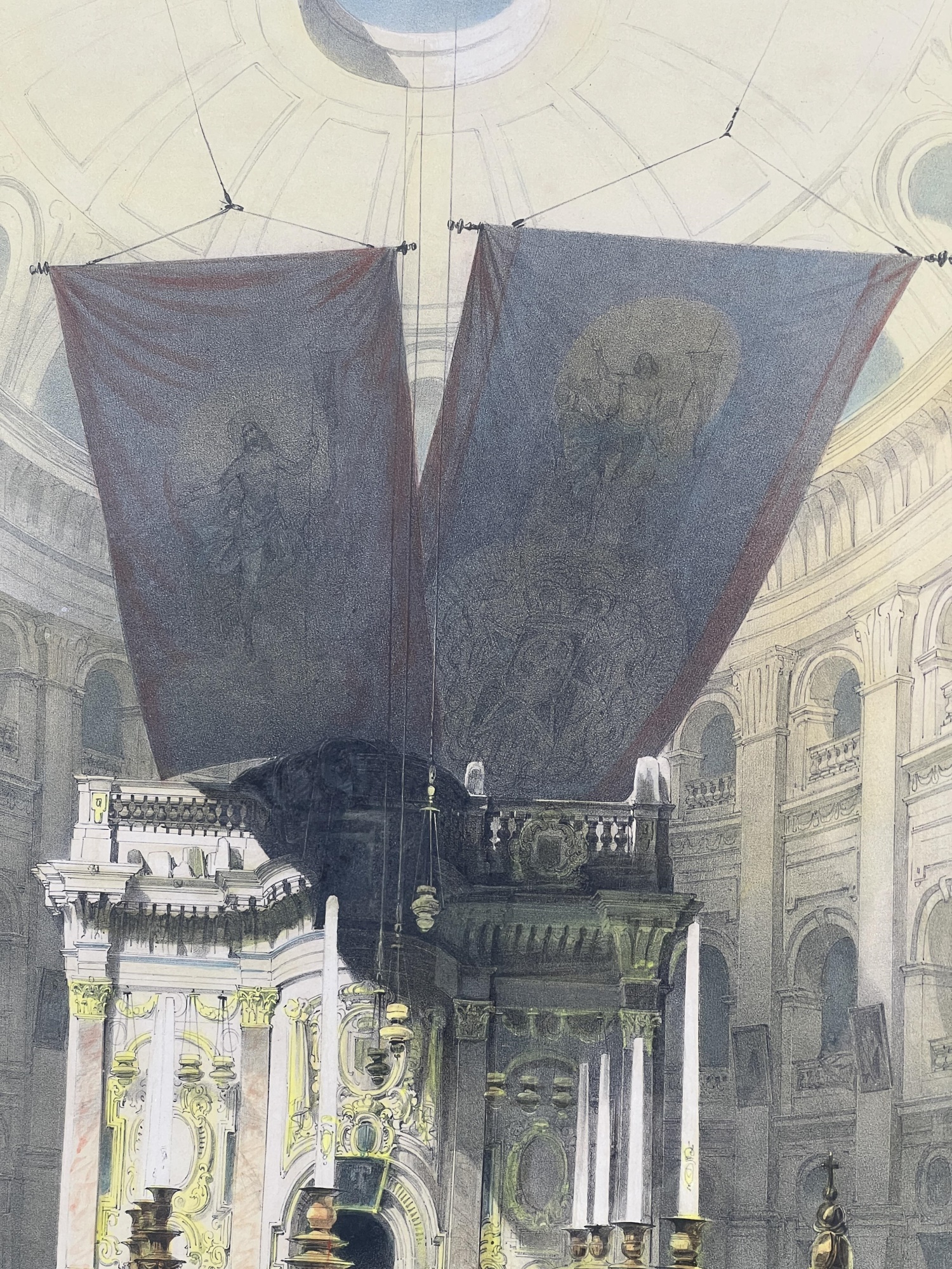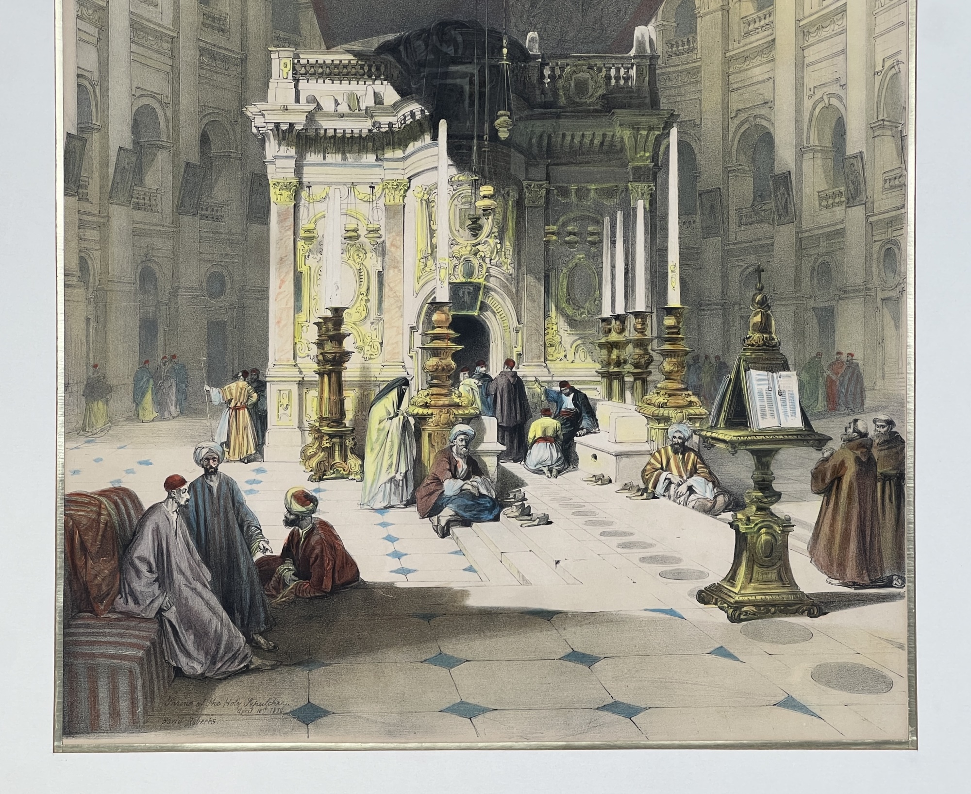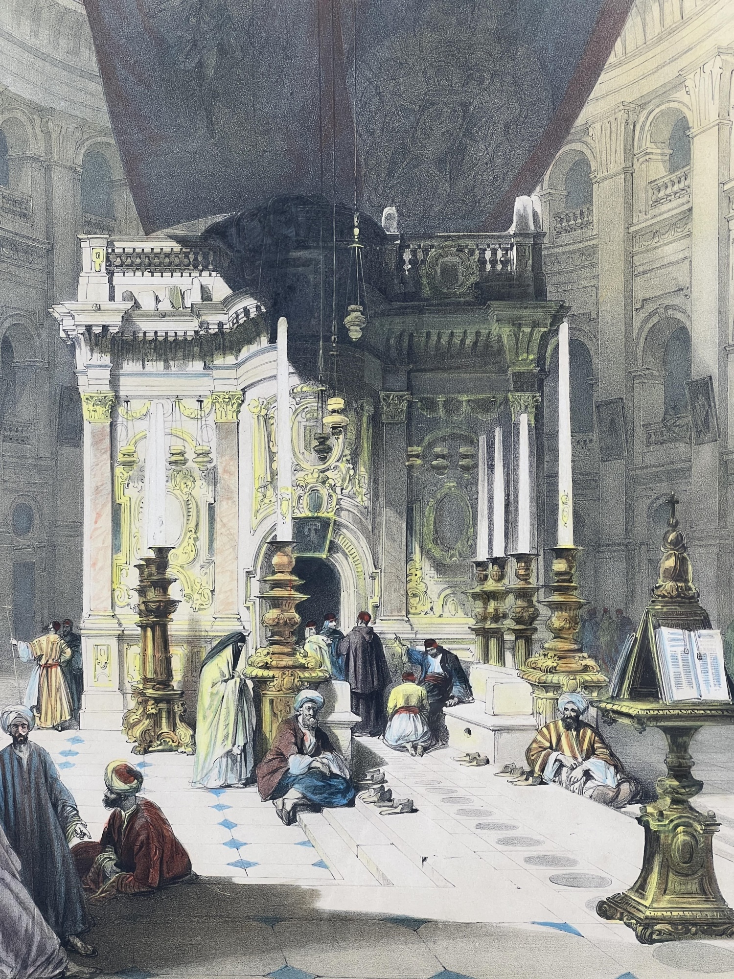 "Shrine of the Holy Sepulchre", chromolithograph, purchased in Jerusalem. 27 x 19 1/2 inches overall. Condition: Good. Temp No 8847