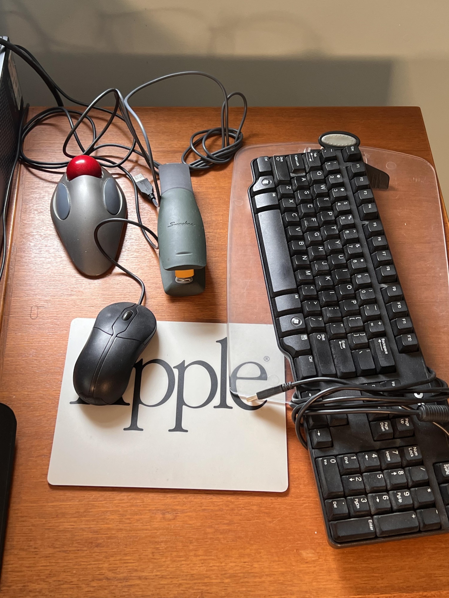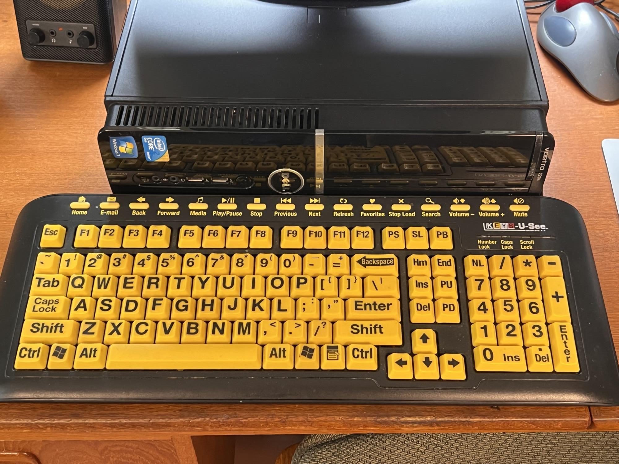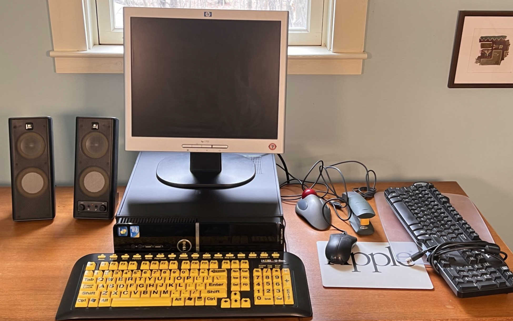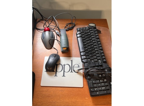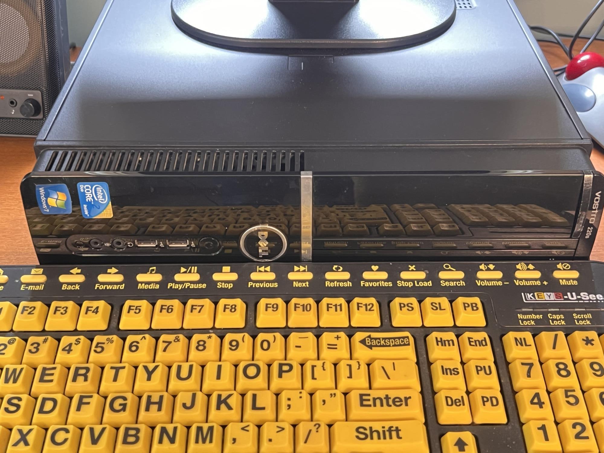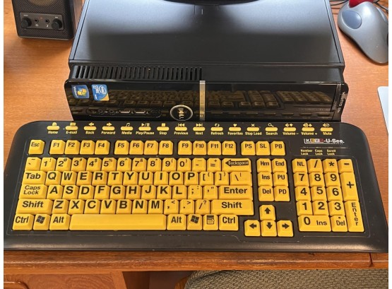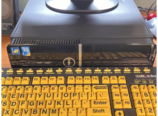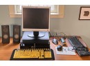 Dell desktop (hard drive removed or wiped clean), HP monitor, (2) keyboards, Logitech speakers, etc