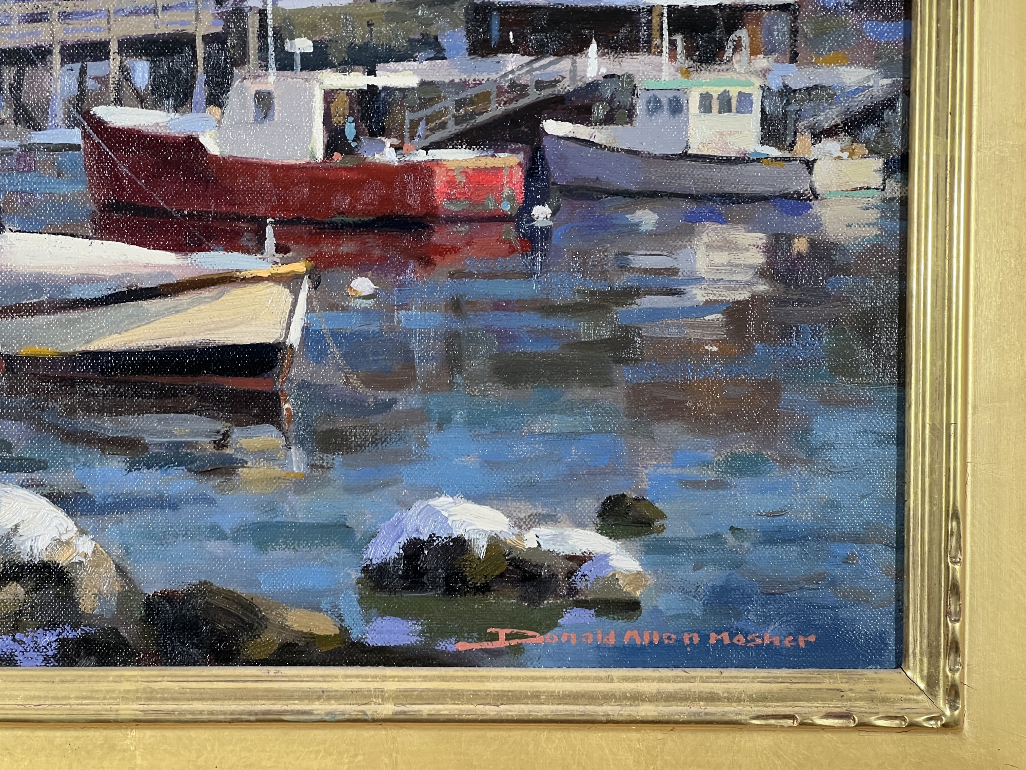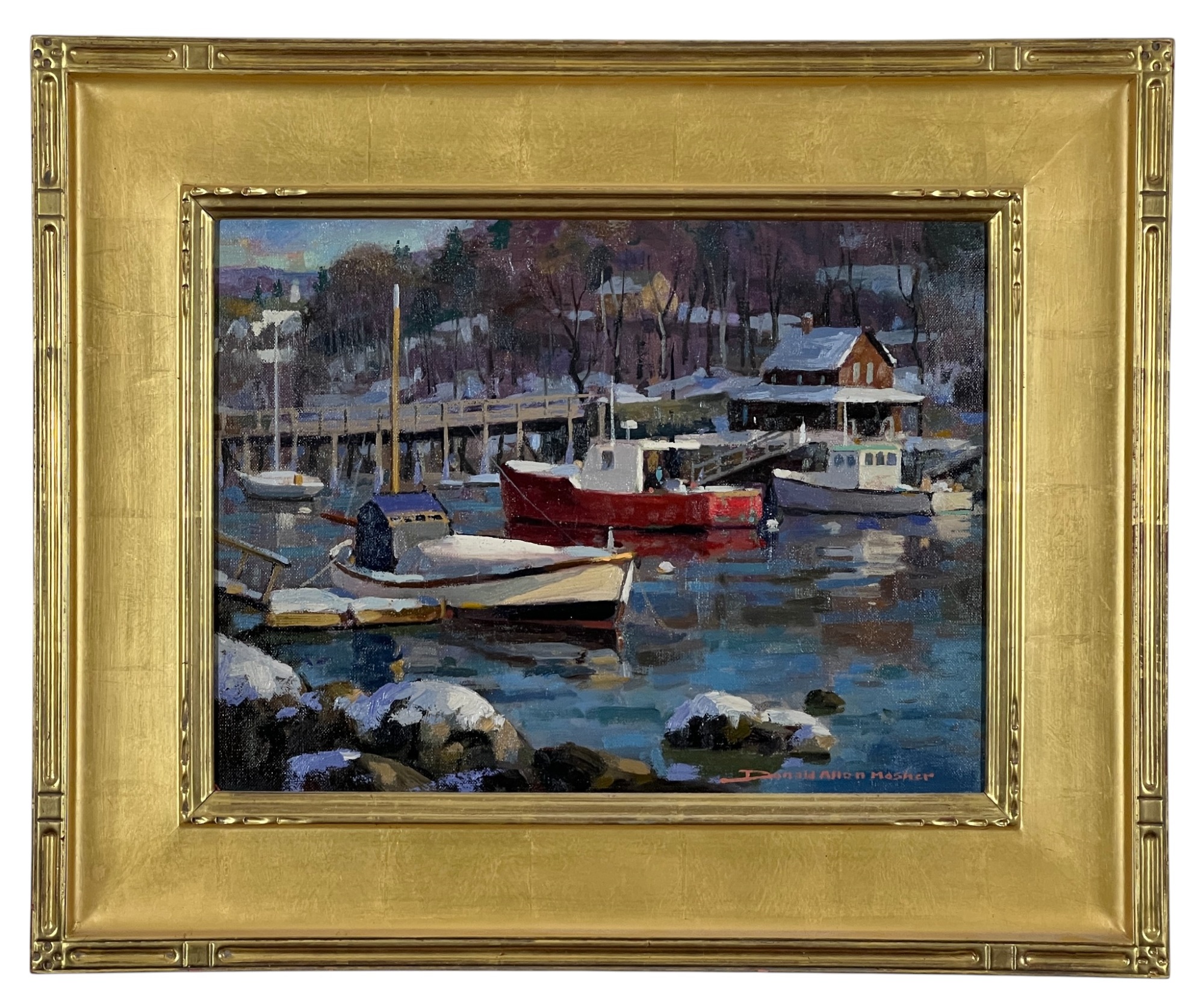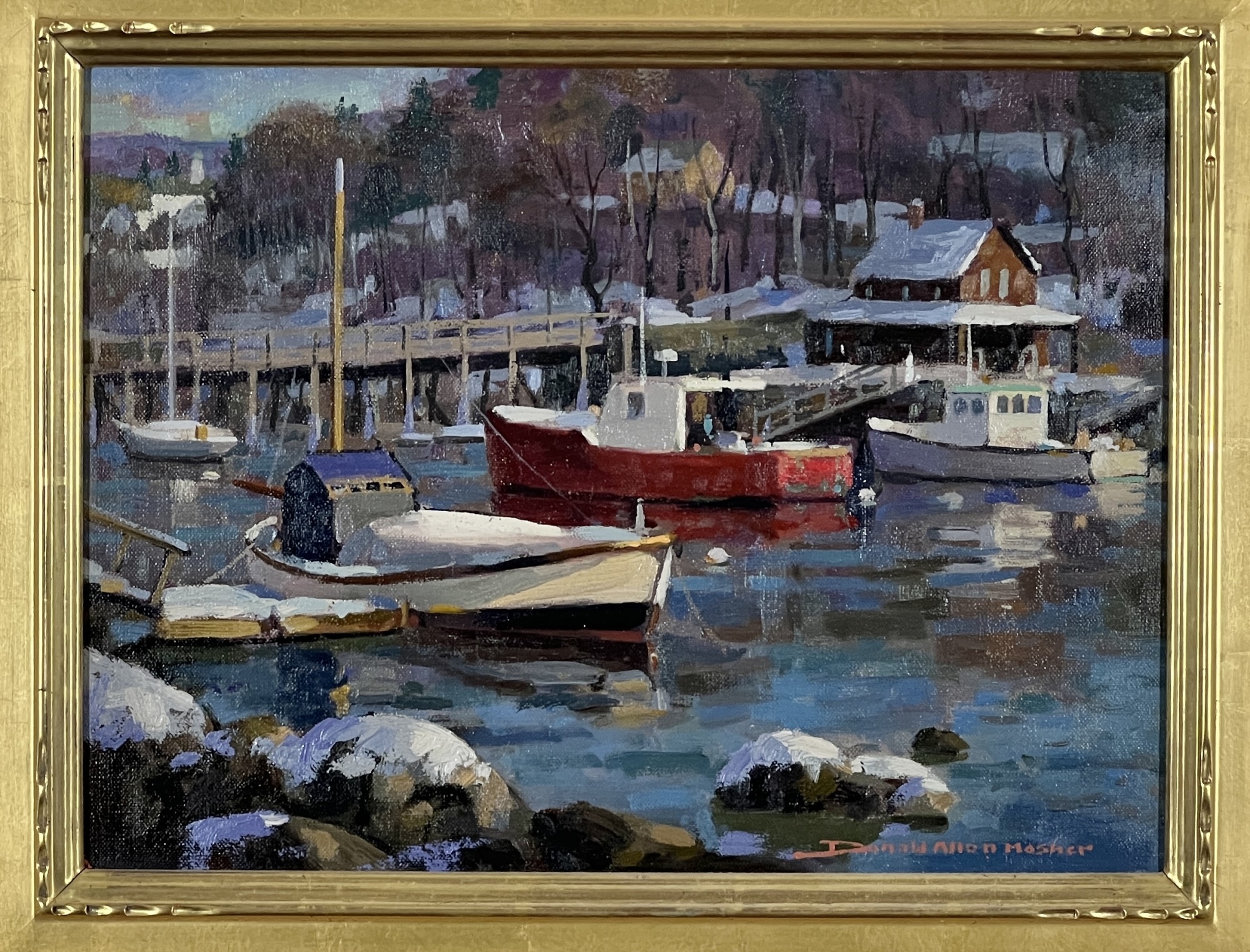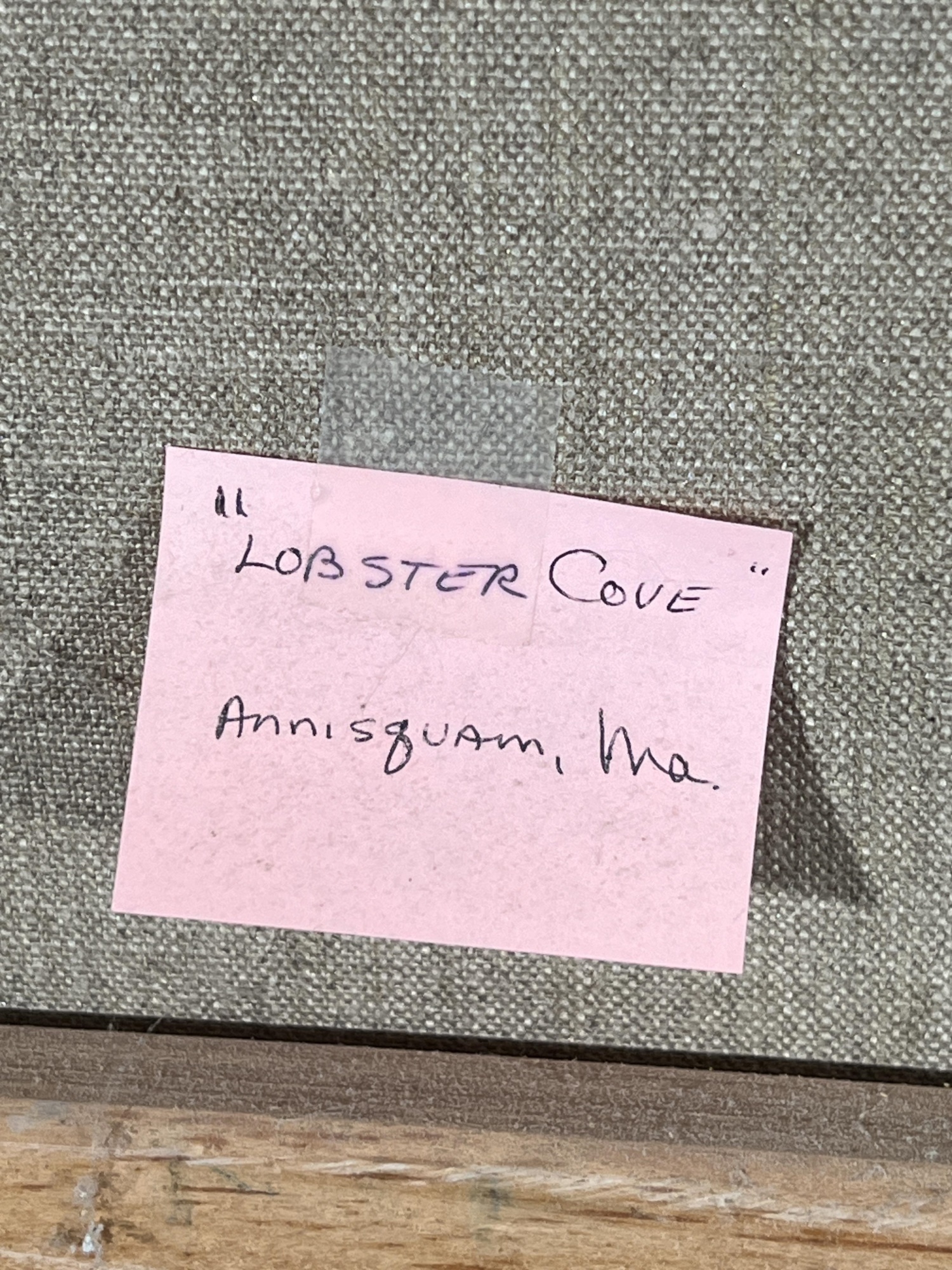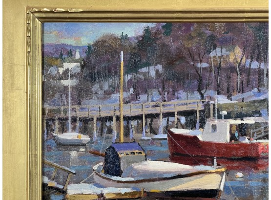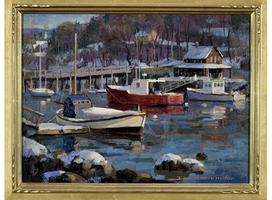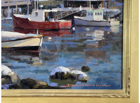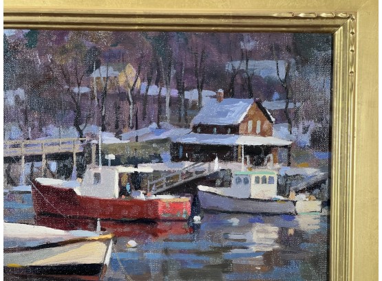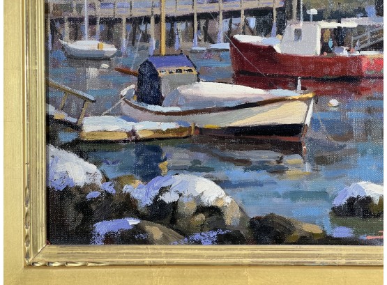 "Lobster Cove - Annisquam, MA", oil on canvas 12 x 16 inches, signed lower right, housed in a nice carved & gilt frame. 18 3/4 x 22 3/4 inches overall. Condition: Good.