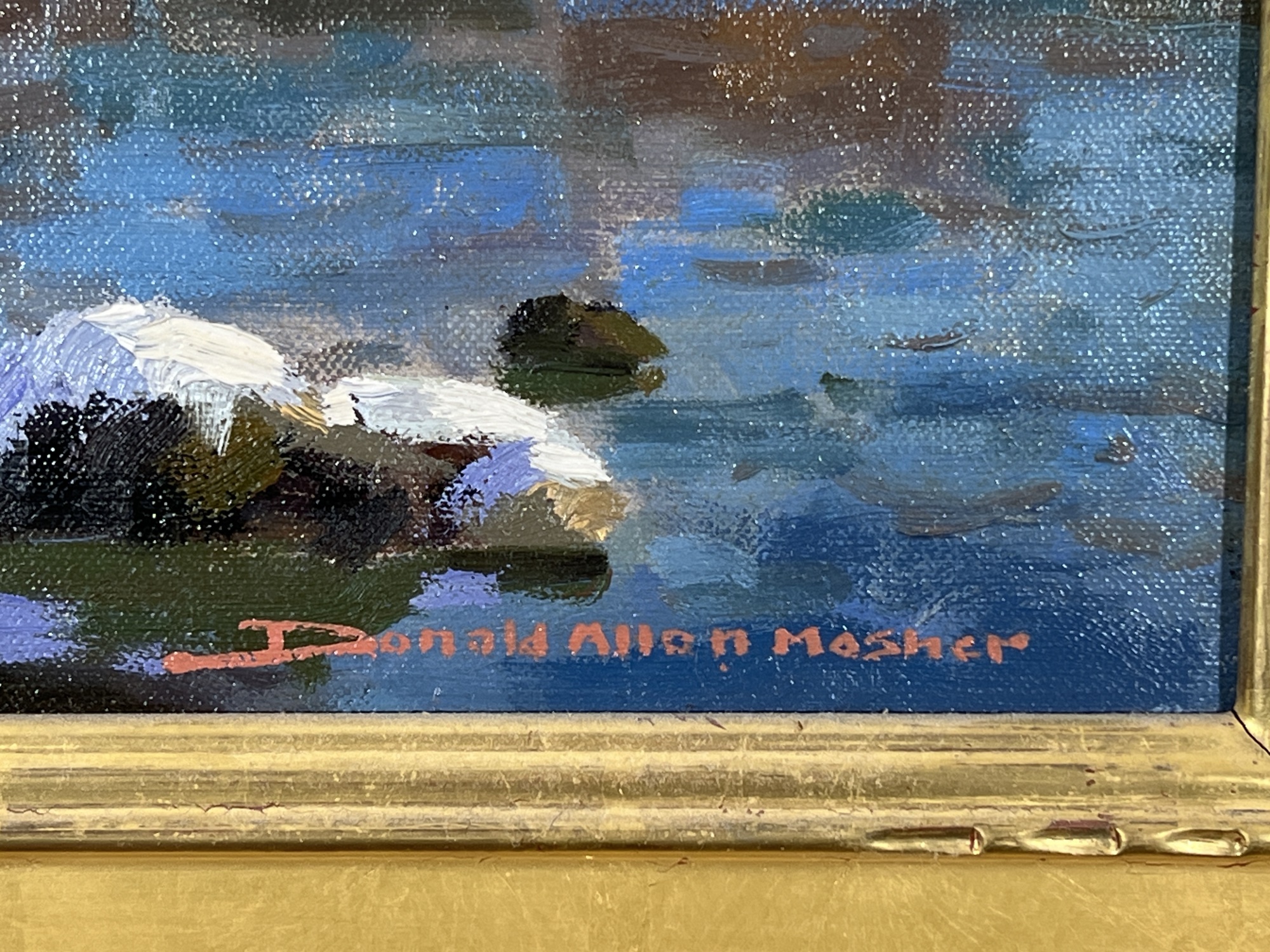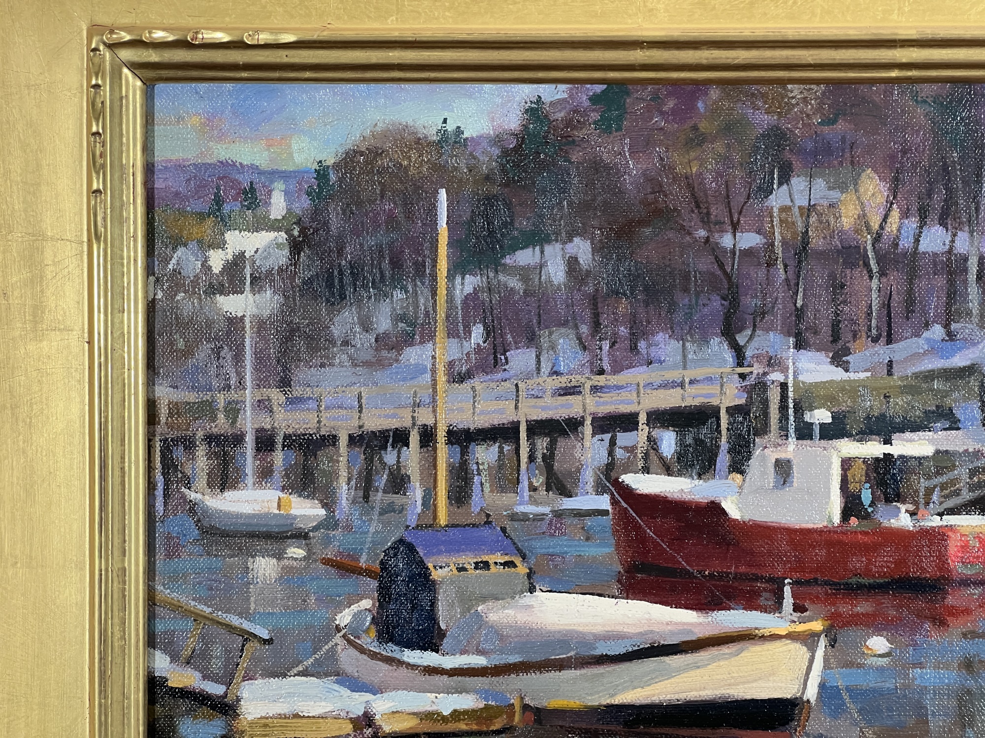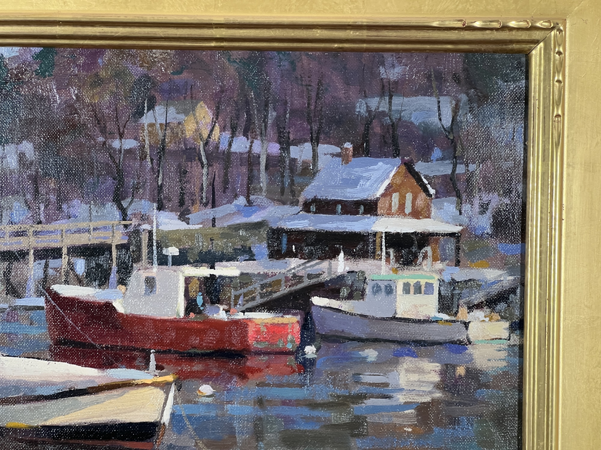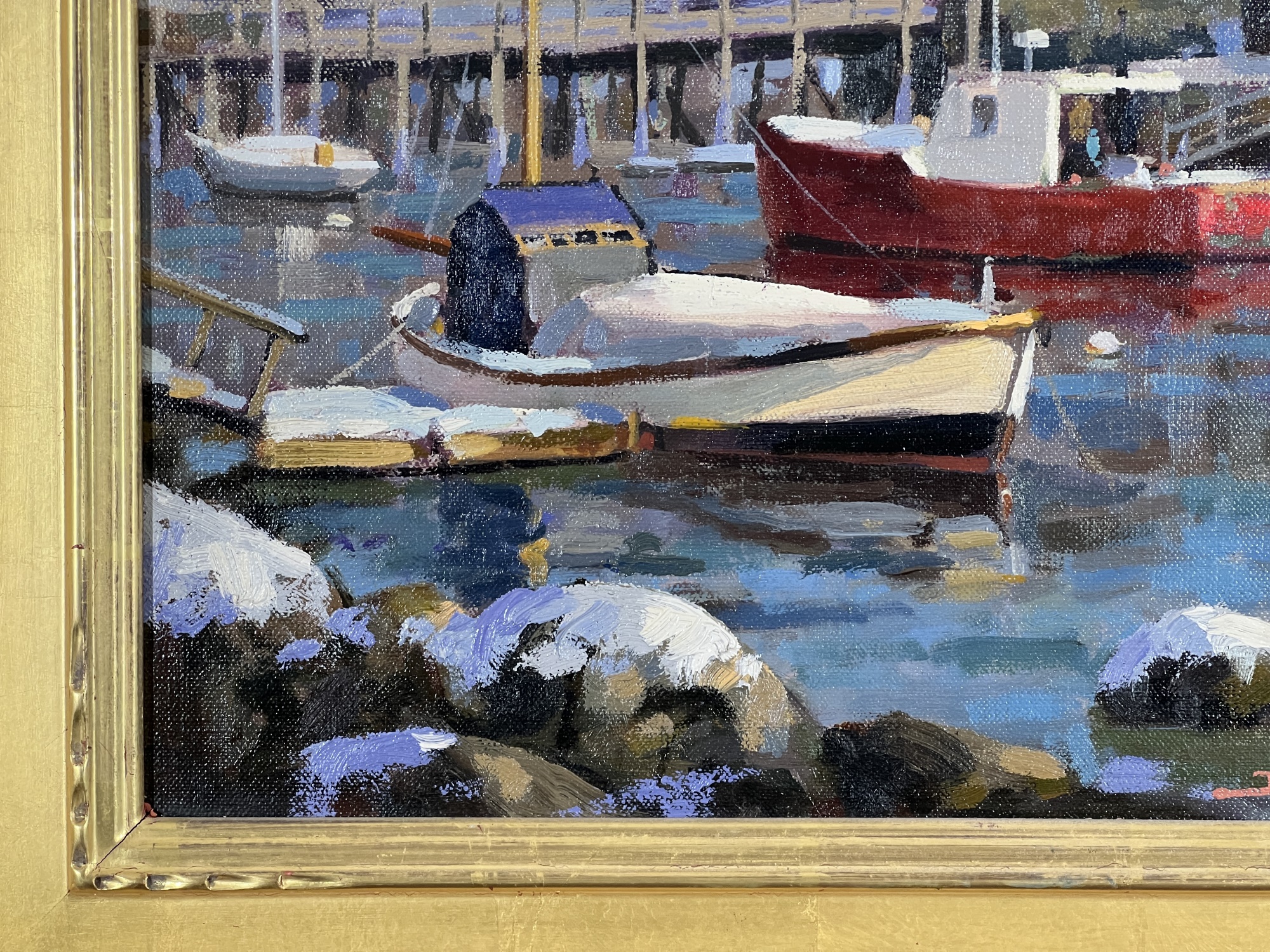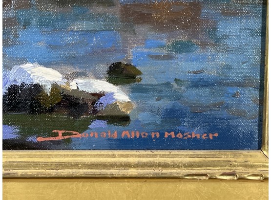 "Lobster Cove - Annisquam, MA", oil on canvas 12 x 16 inches, signed lower right, housed in a nice carved & gilt frame. 18 3/4 x 22 3/4 inches overall. Condition: Good.