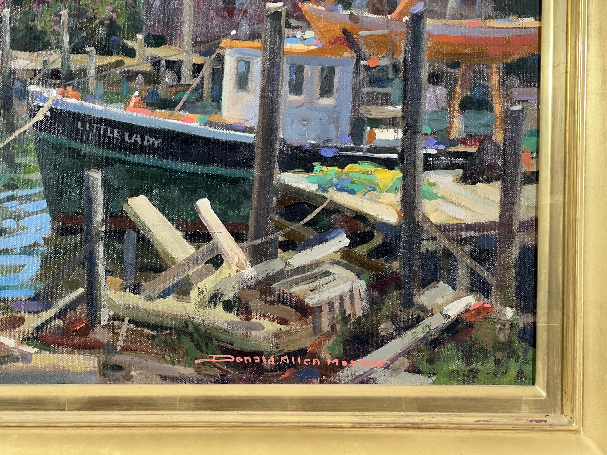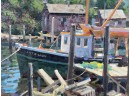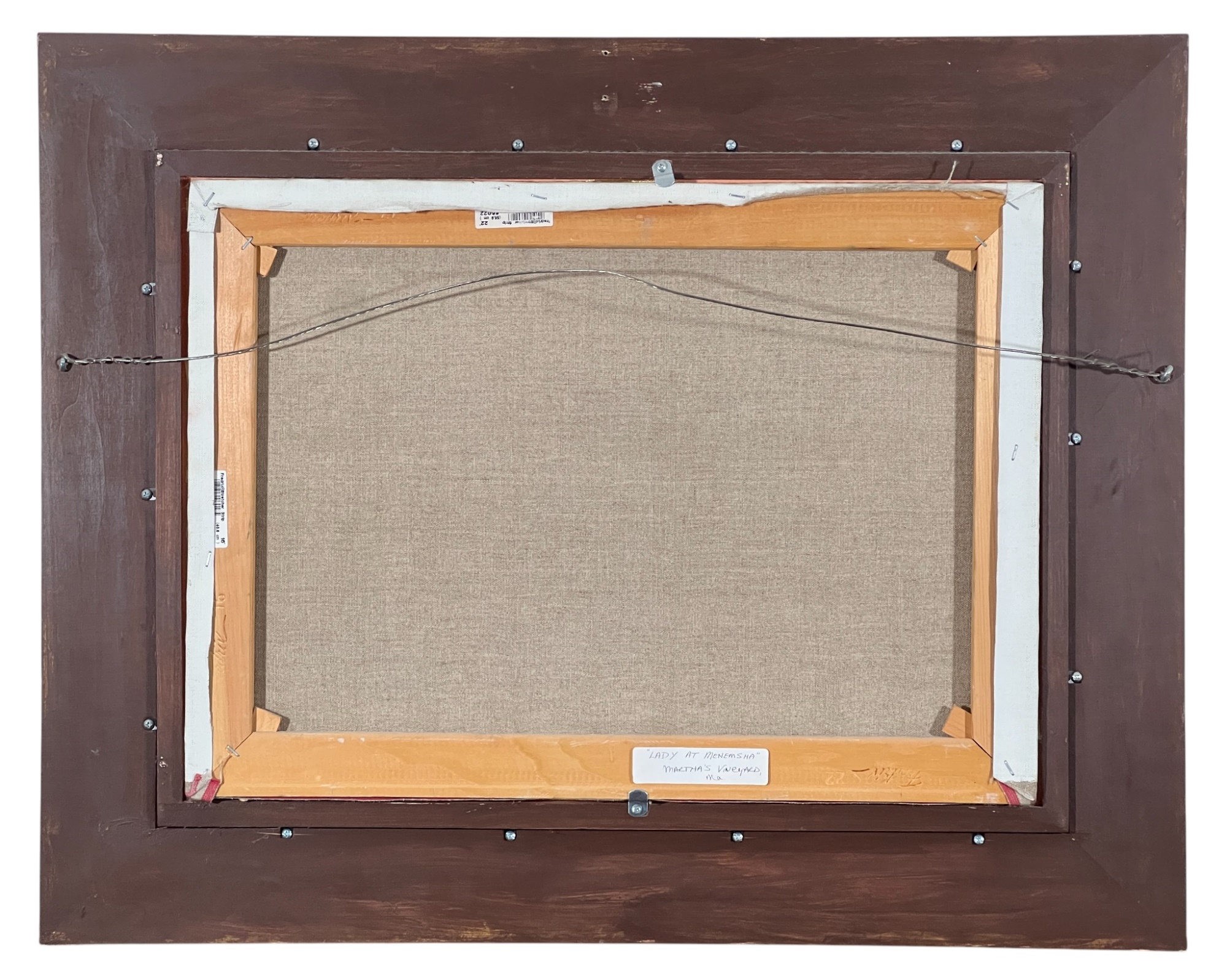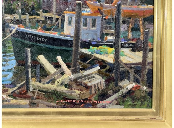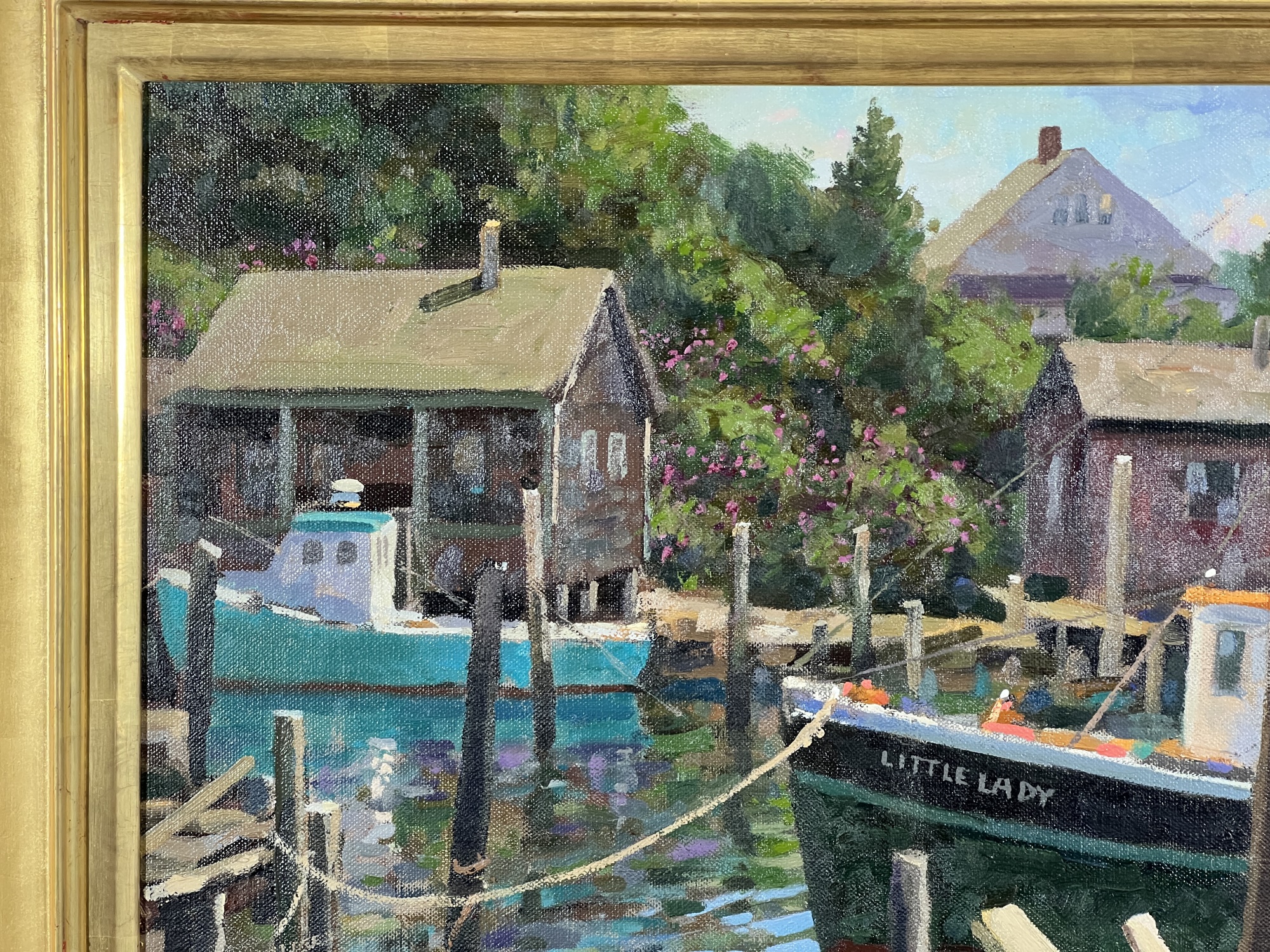 "Lady at Menemsha, Martha's Vineyard", oil on canvas 16 x 22 inches, signed lower right, housed in a nice carved & gilt frame, titled verso. 23 1/2 x 29 1/2 inches overall. Condition: Good.