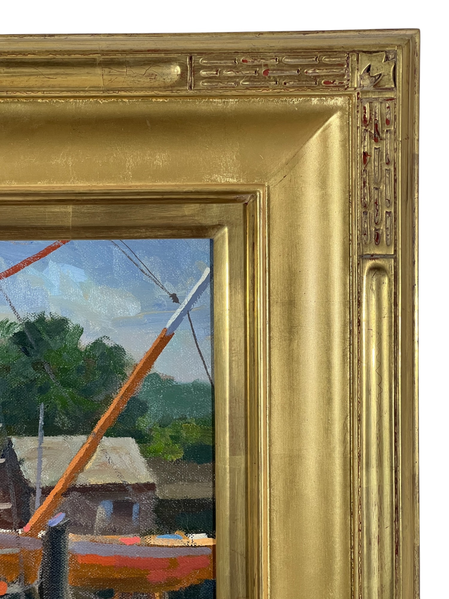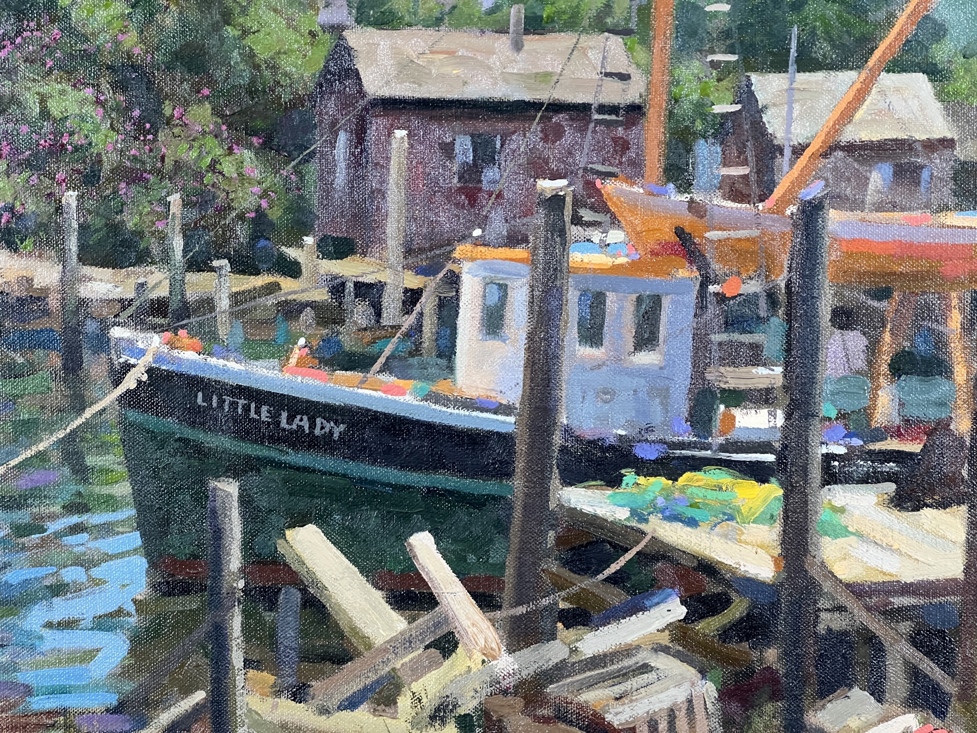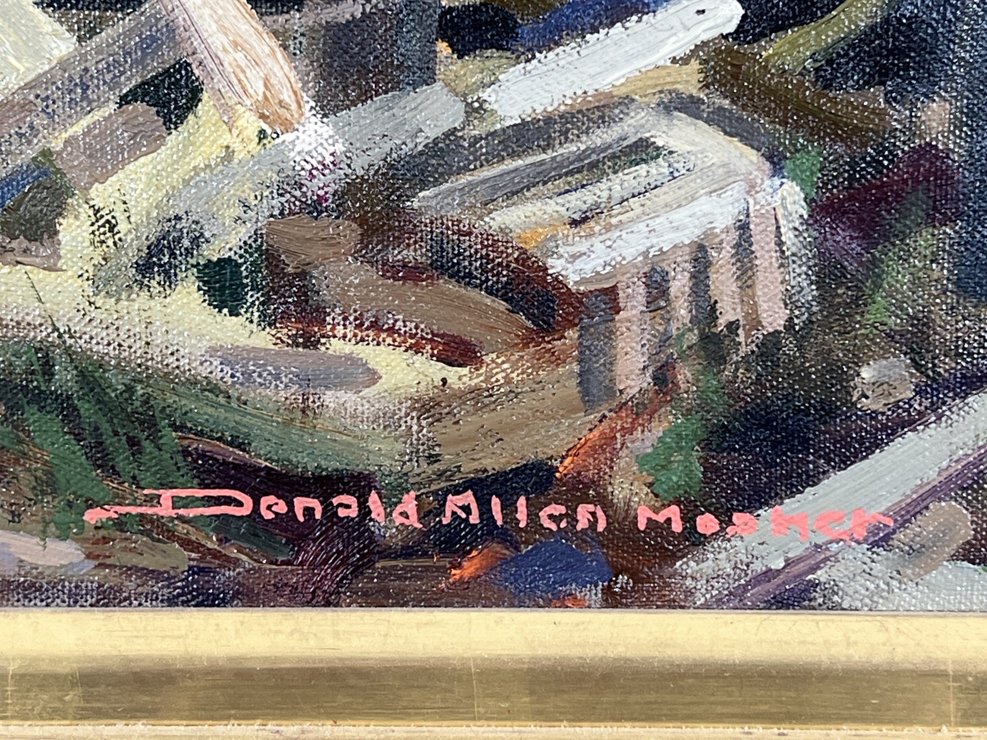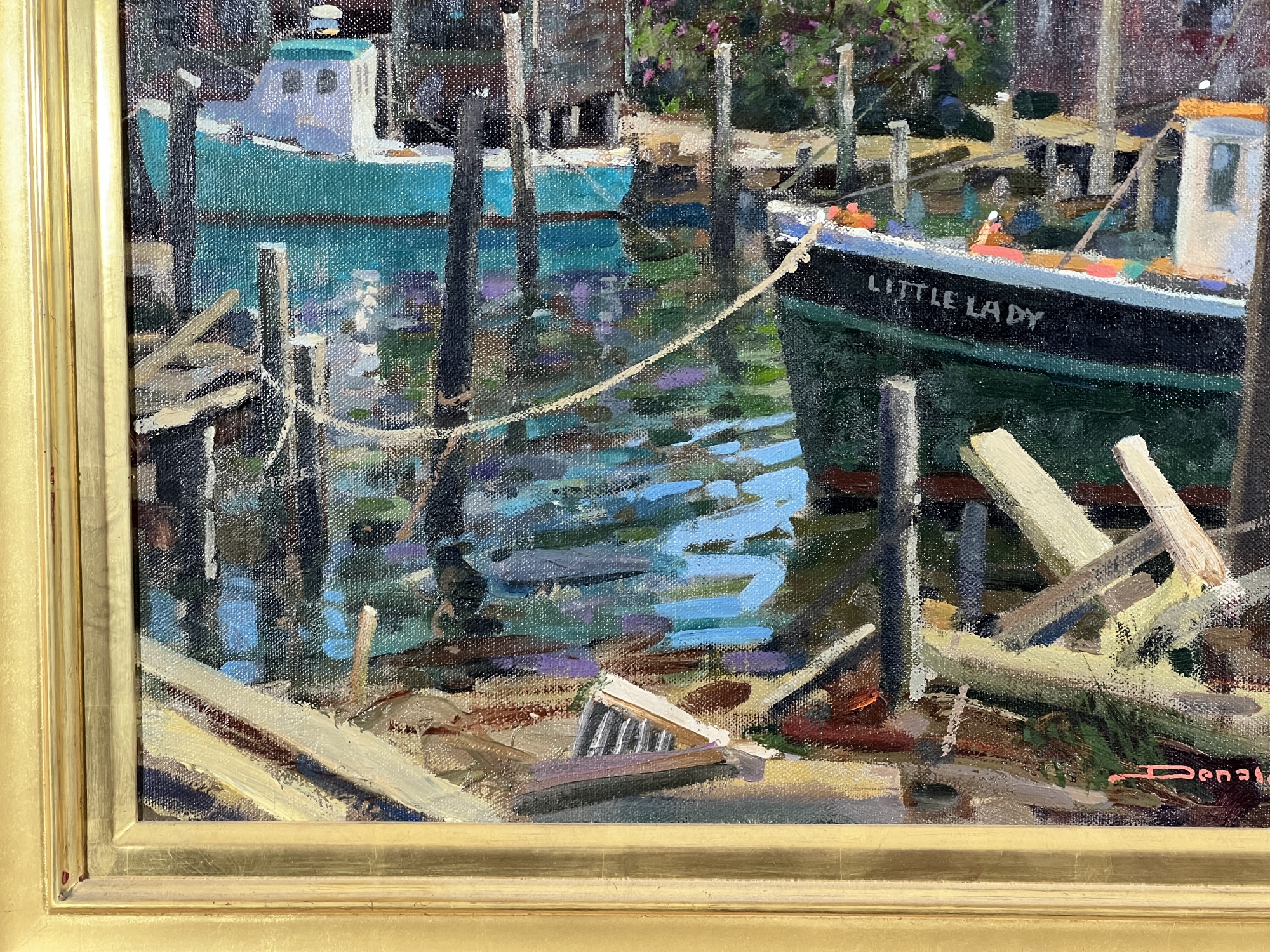 "Lady at Menemsha, Martha's Vineyard", oil on canvas 16 x 22 inches, signed lower right, housed in a nice carved & gilt frame, titled verso. 23 1/2 x 29 1/2 inches overall. Condition: Good.