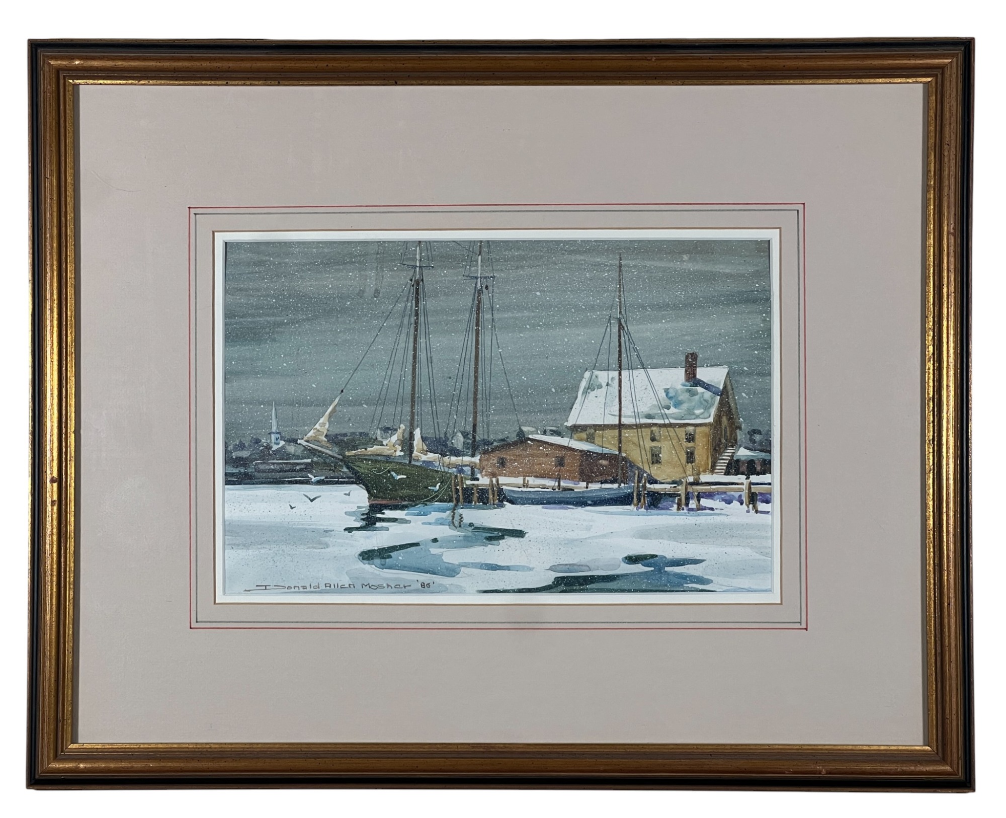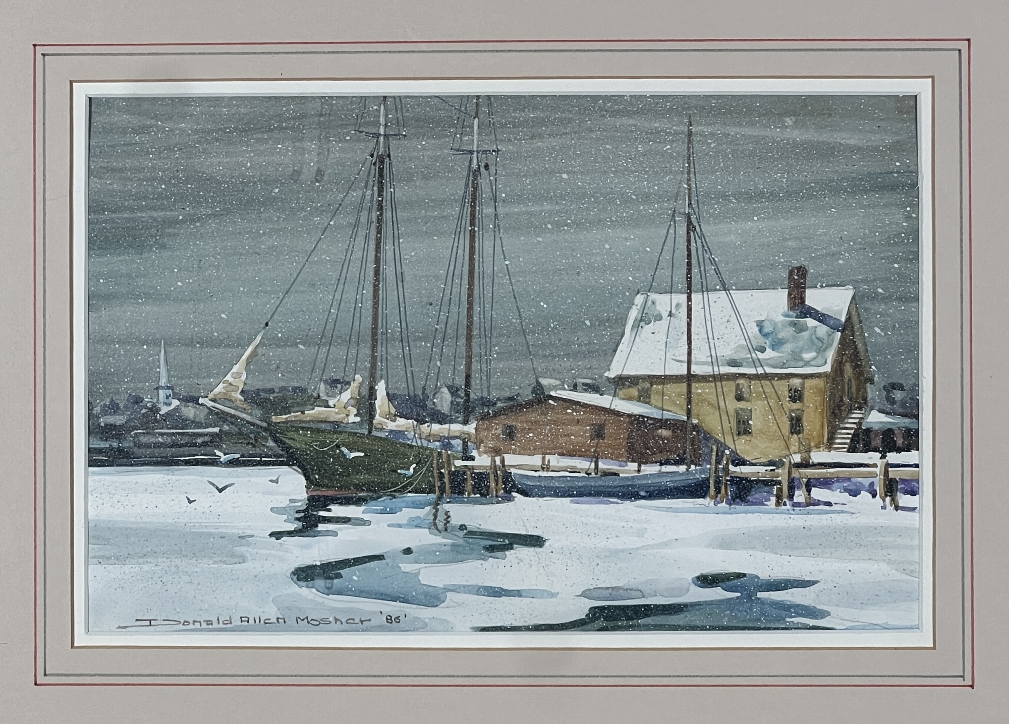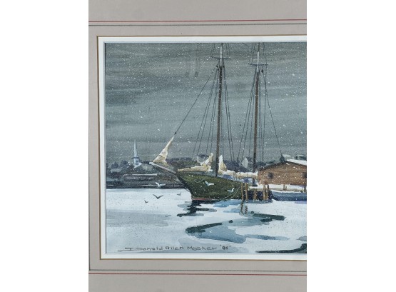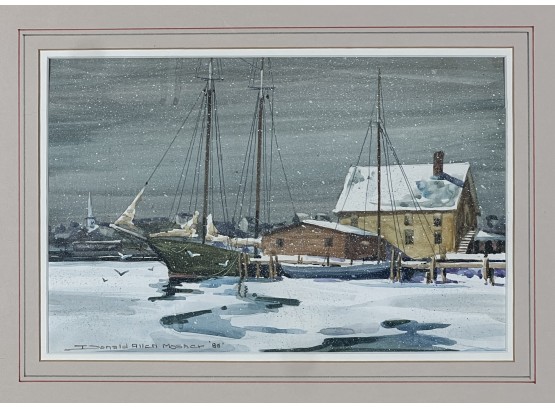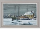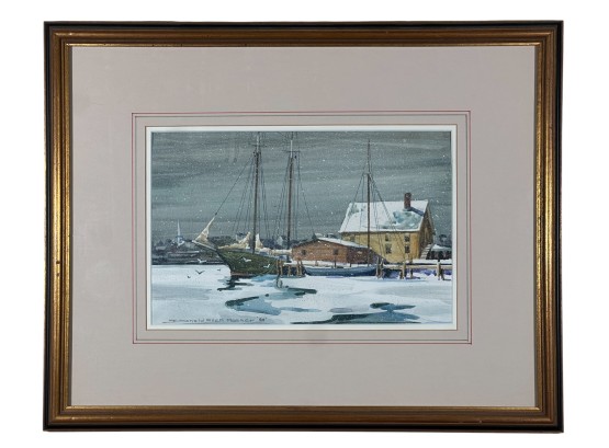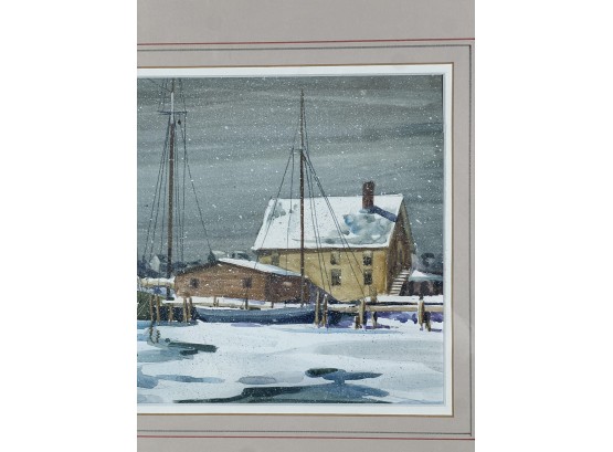 "Frozen Harbor", watercolor on paper 7 1/4 x 11 1/4 inches, signed & dater lower left. 15 1/2 x 19 1/2 inches overall. Condition: Good.