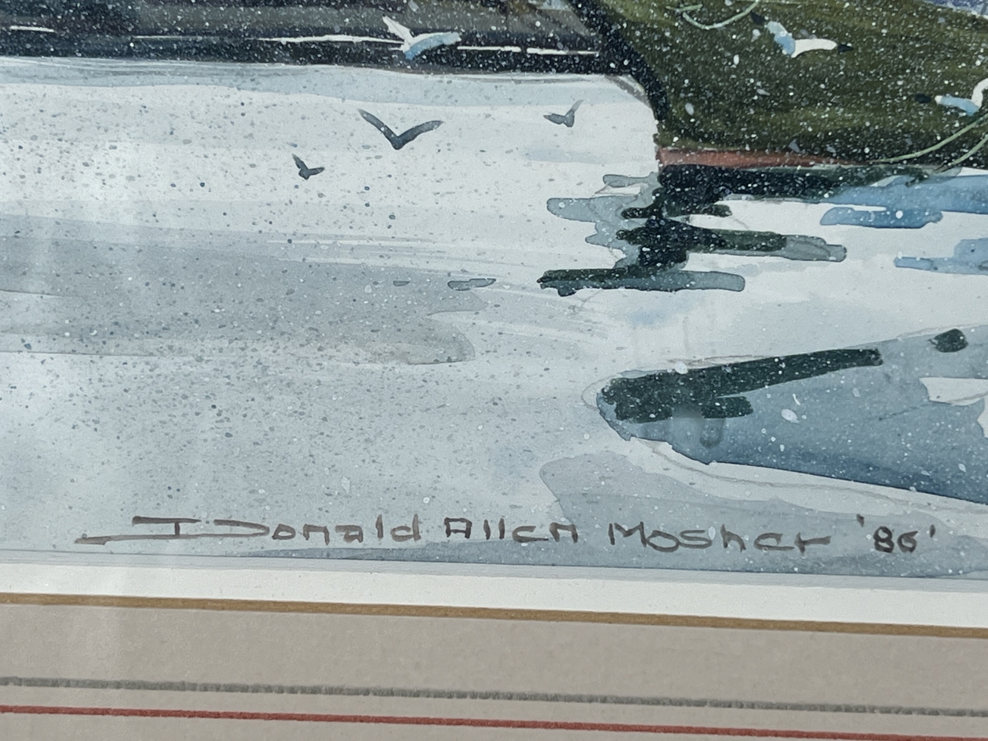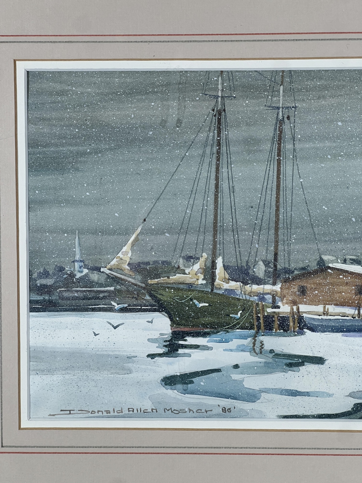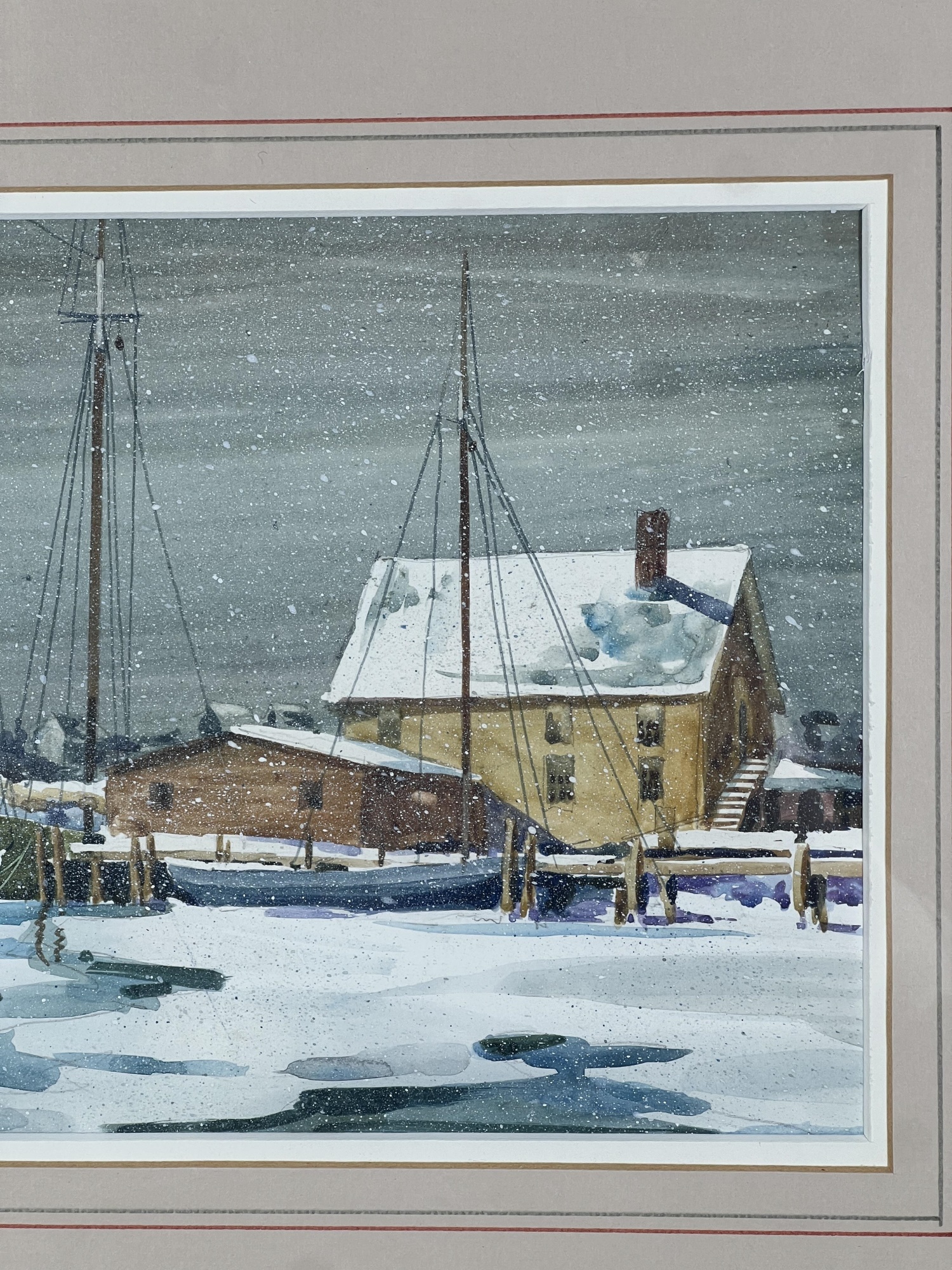 "Frozen Harbor", watercolor on paper 7 1/4 x 11 1/4 inches, signed & dater lower left. 15 1/2 x 19 1/2 inches overall. Condition: Good.