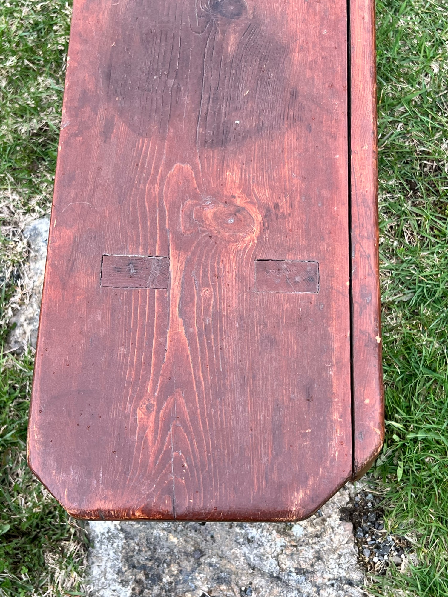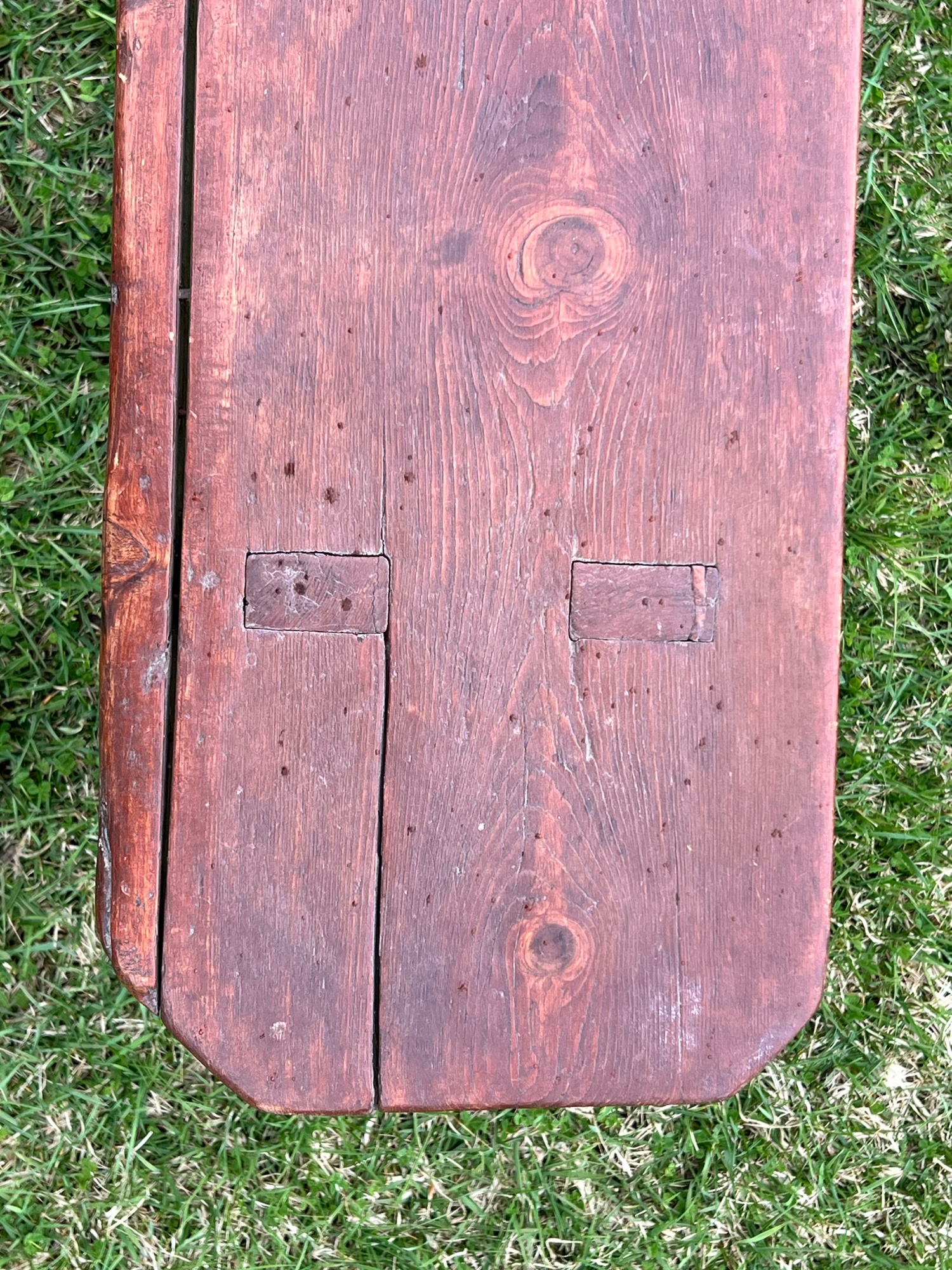 Through tenon construction. 18 x 73.5 x 10.5 inches Condition: Shrinkage cracks, ink mark Temp No 6042