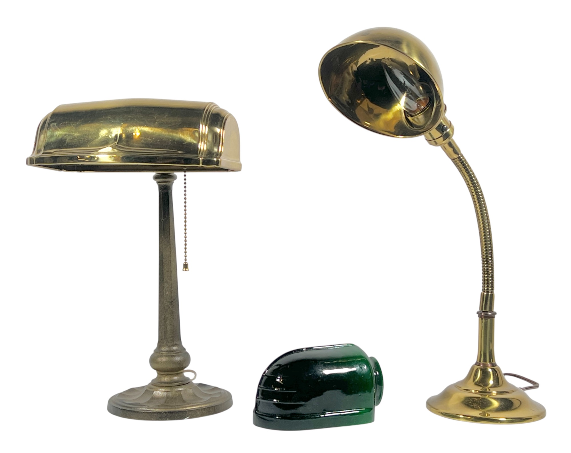 Along with a green glass library lamp shade. 19 1/2 inches. Condition: Untested. Temp No 8776