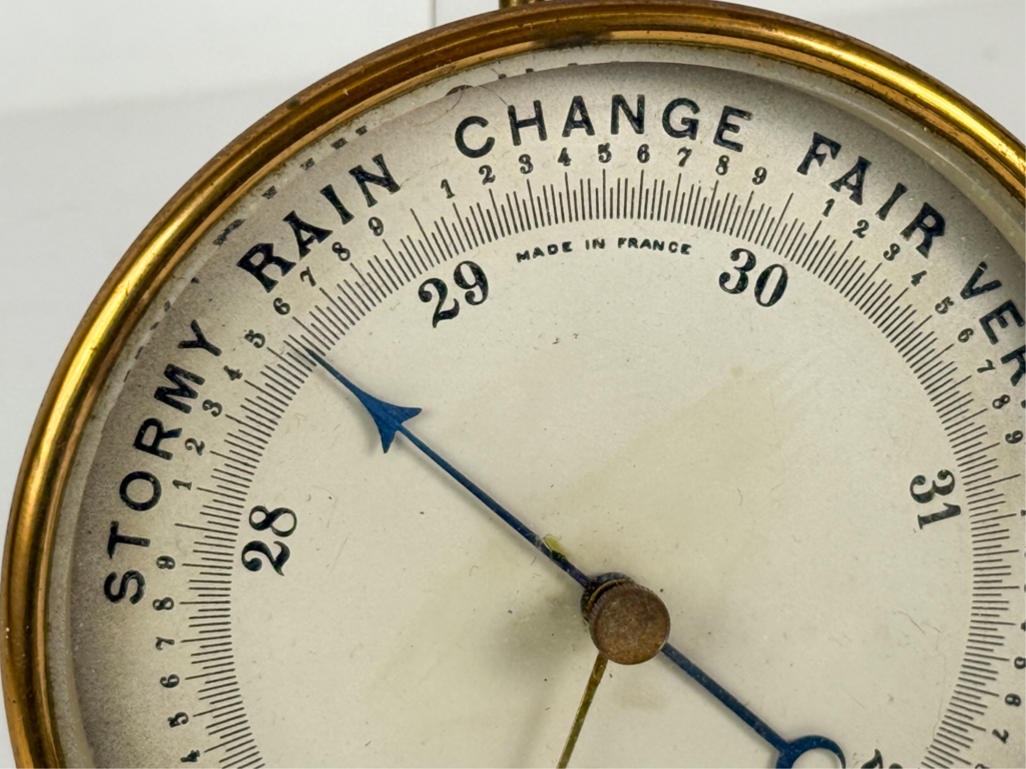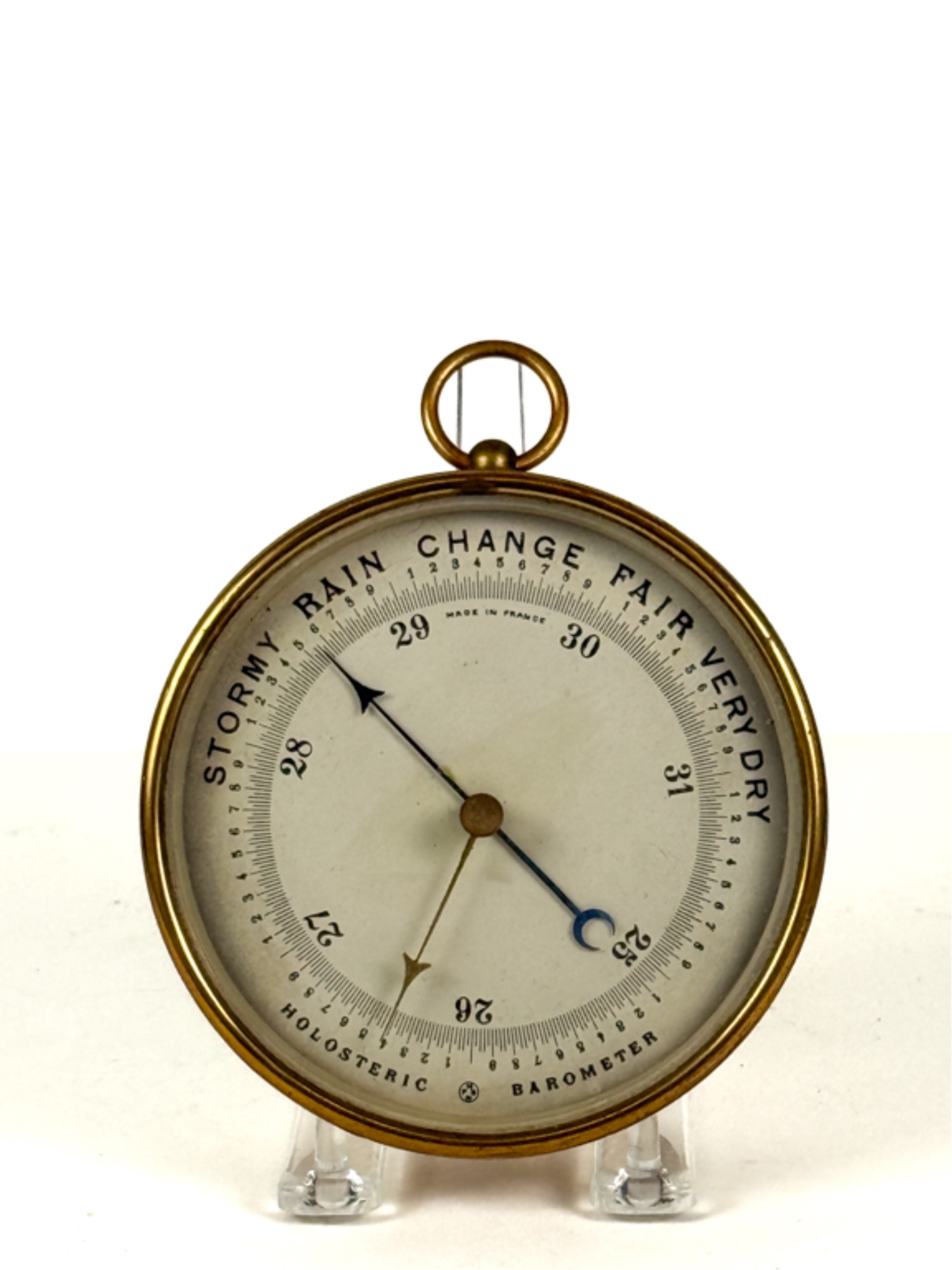 Pertuis, Hulot, Bourgeois & Naudet French brass holosteric barometer. 5 x 2 inches. Condition: Good, untested.