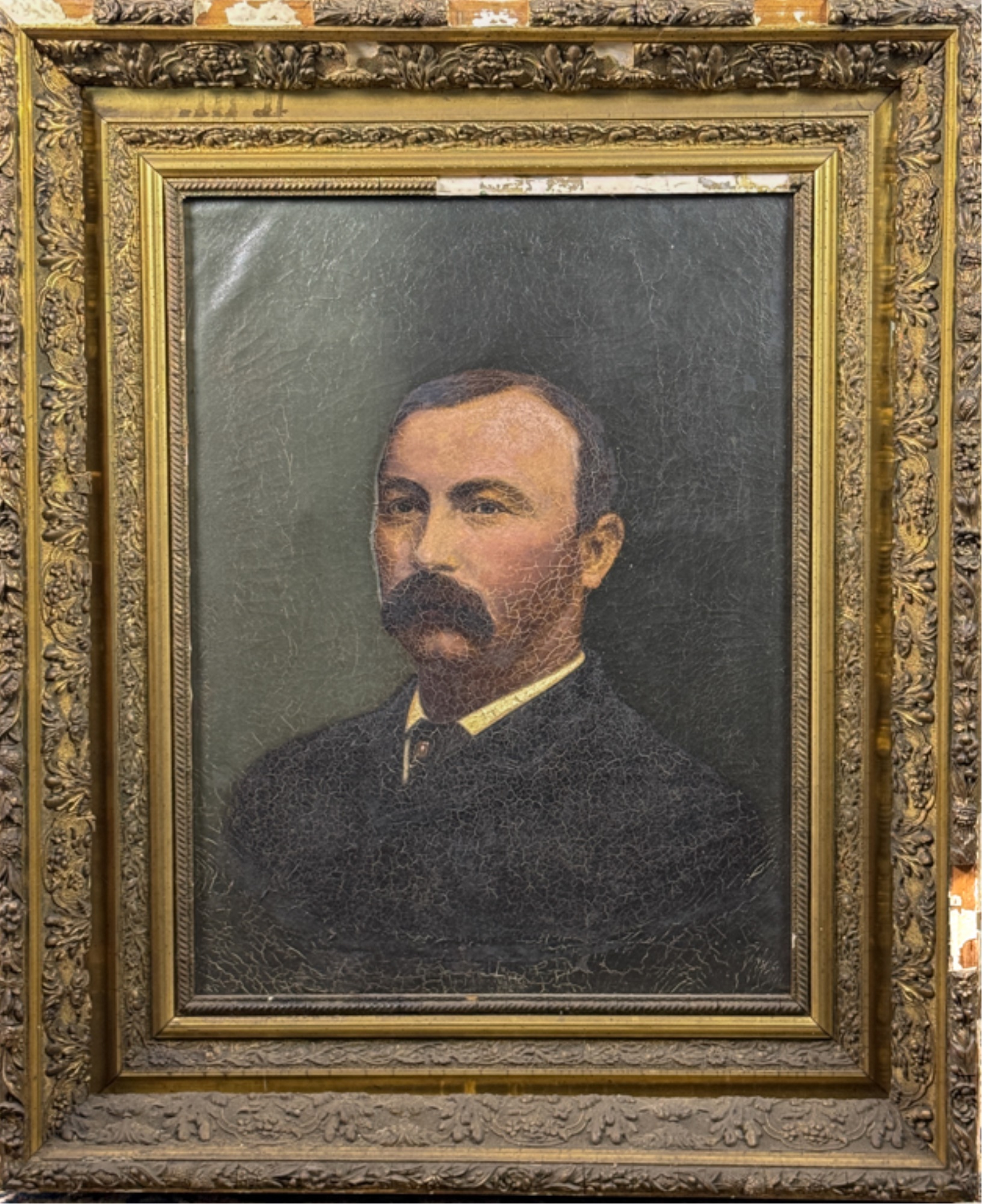 Notes: Craquelure, losses to frame, in need of restoration.