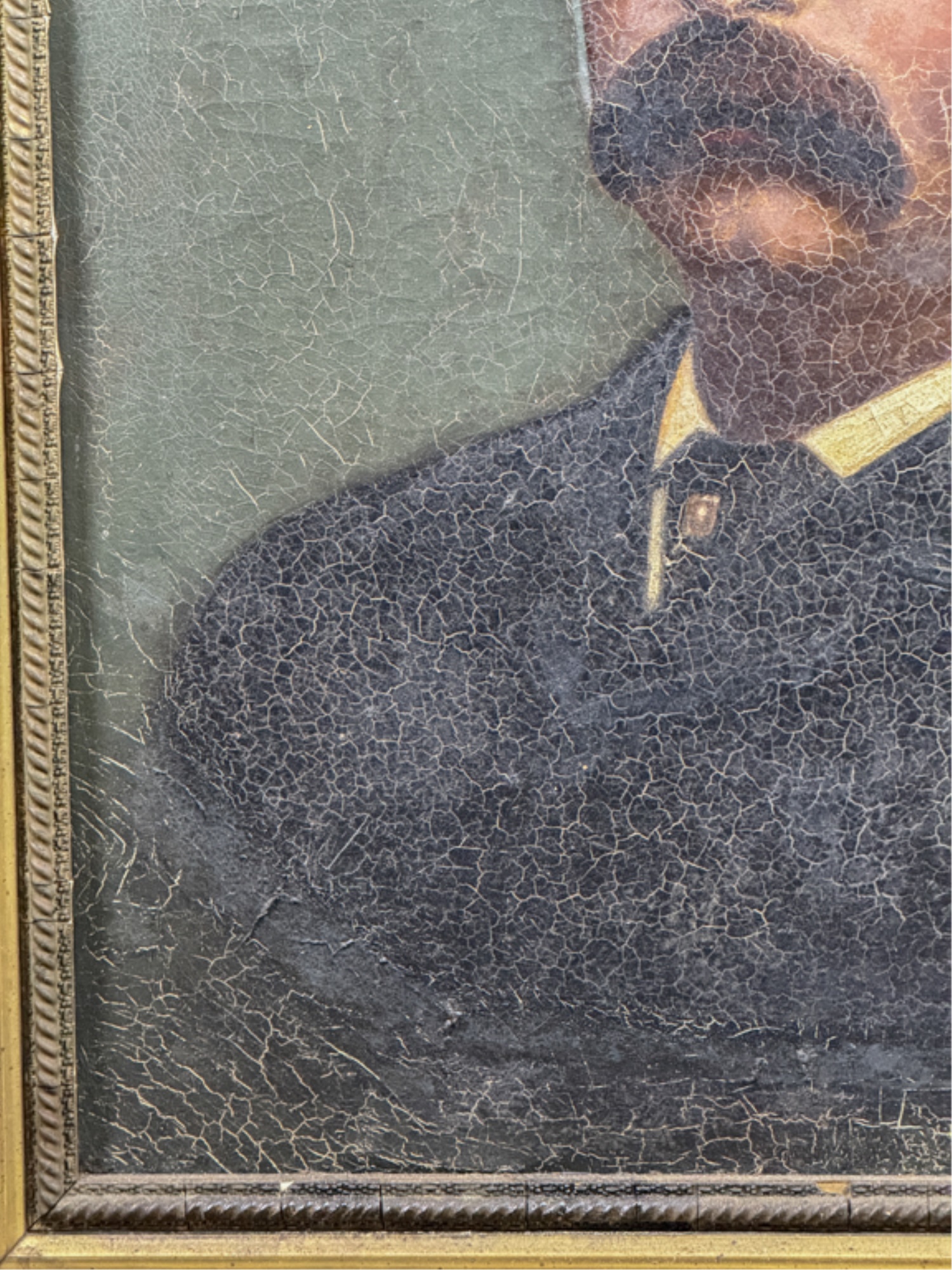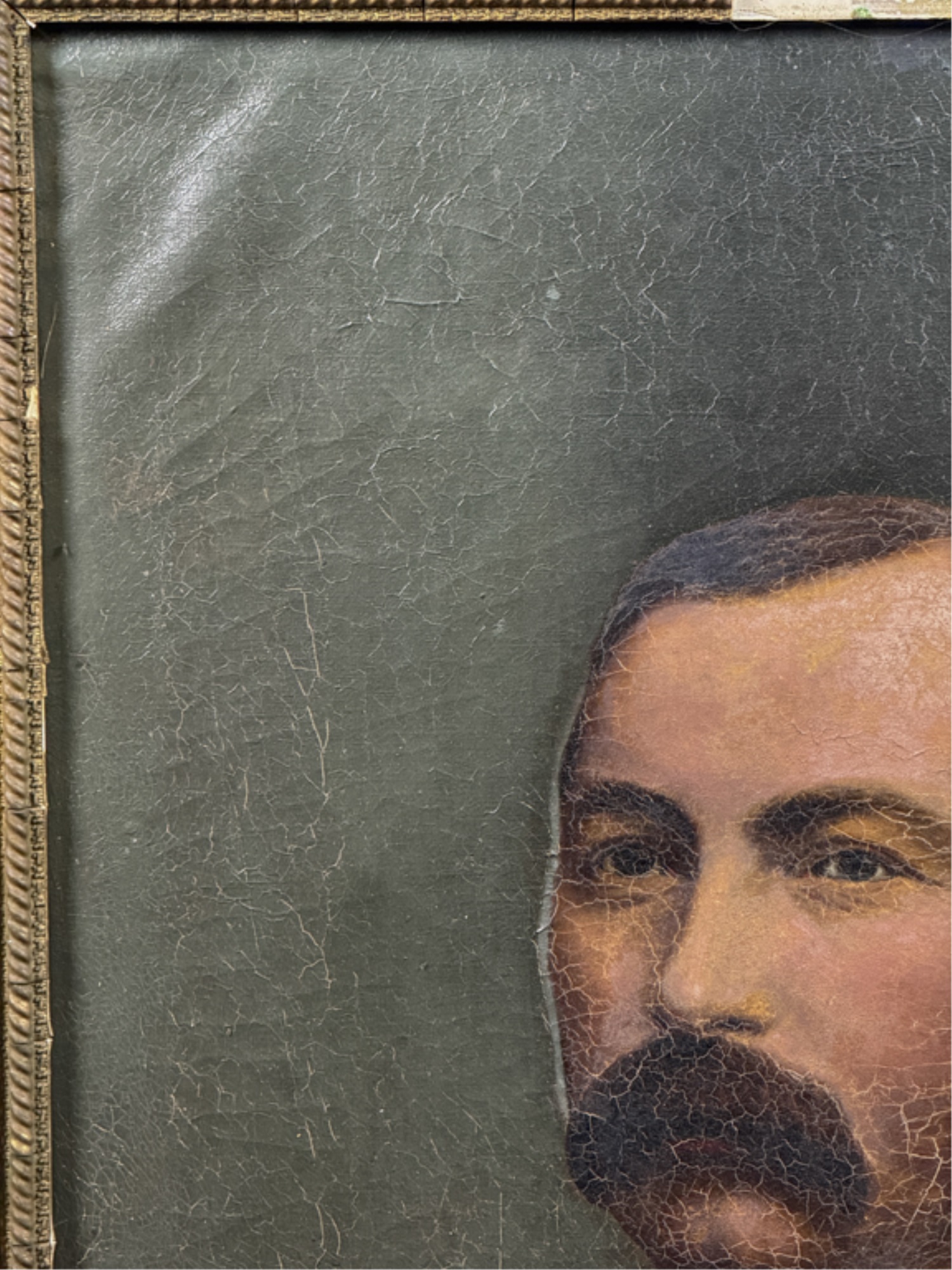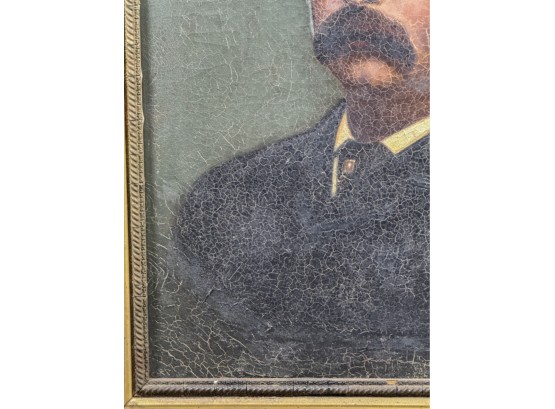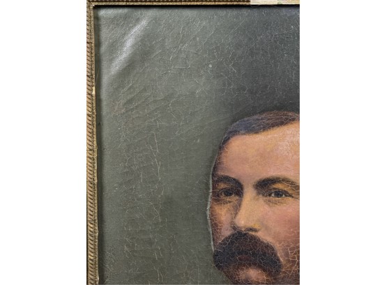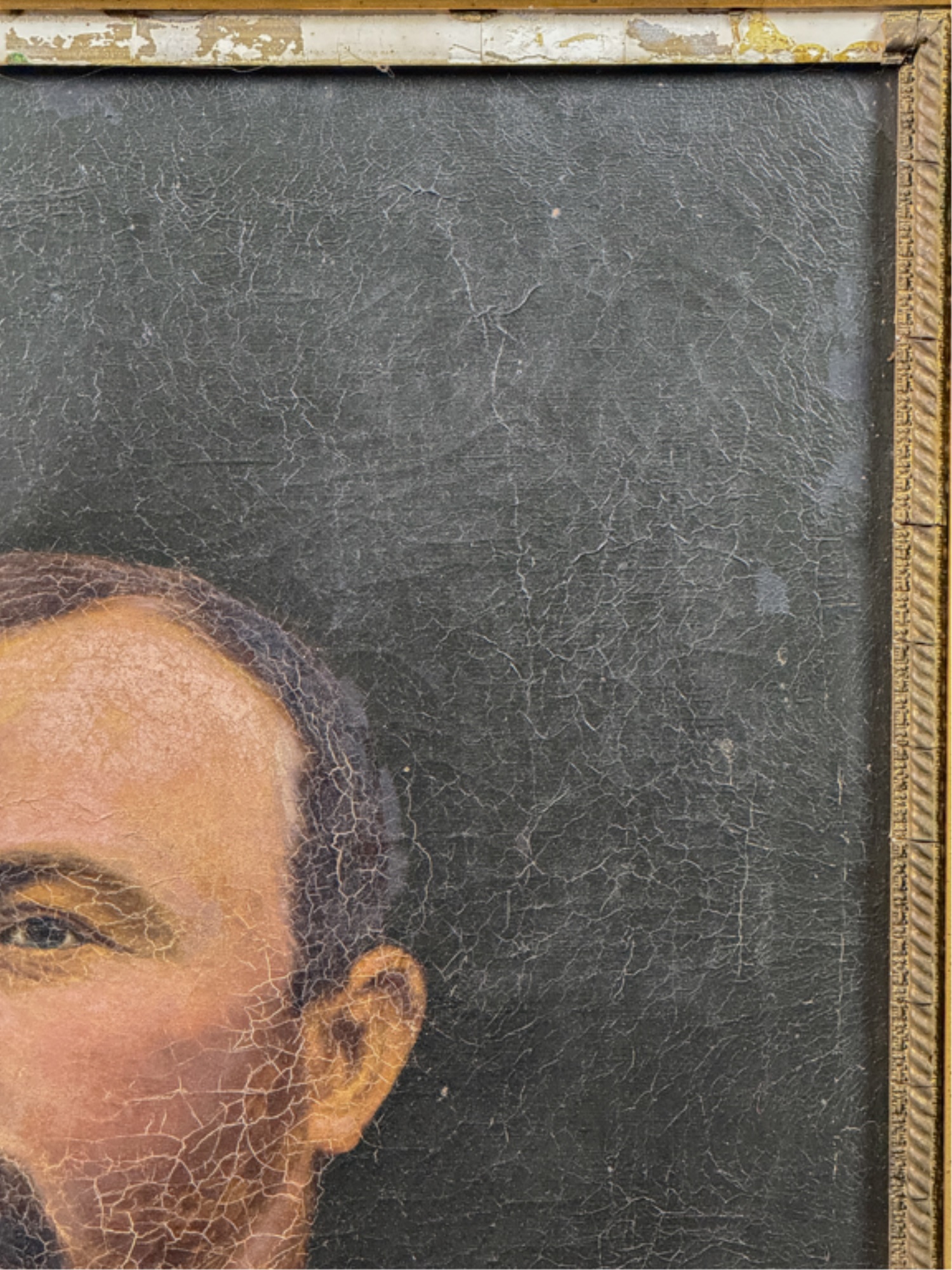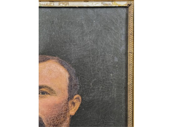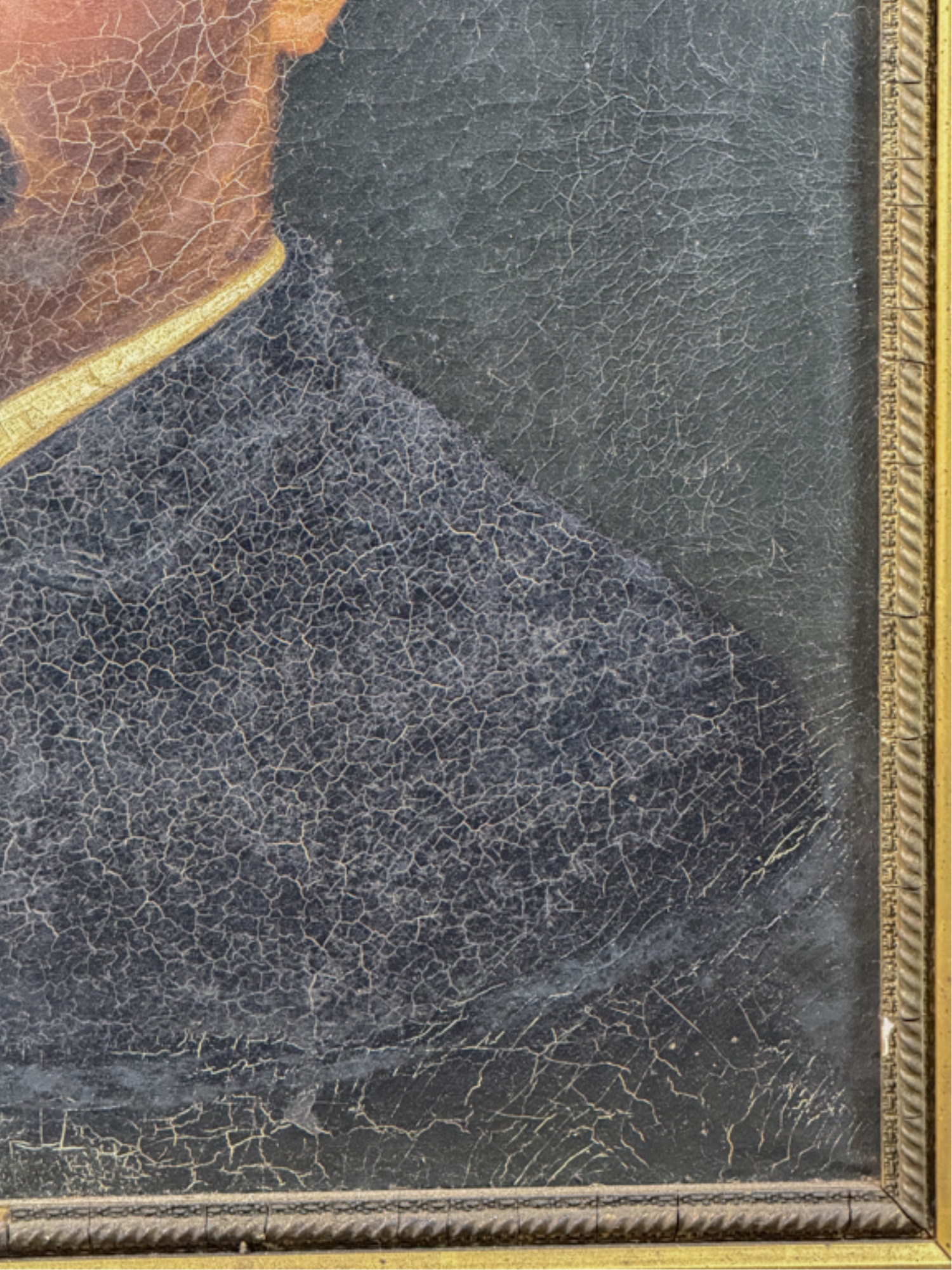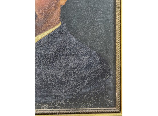 Oil on canvas. Unsigned. Framed. 32 1/2 x 27 inches. Condition: Craquelure, losses to frame, in need of restoration.
