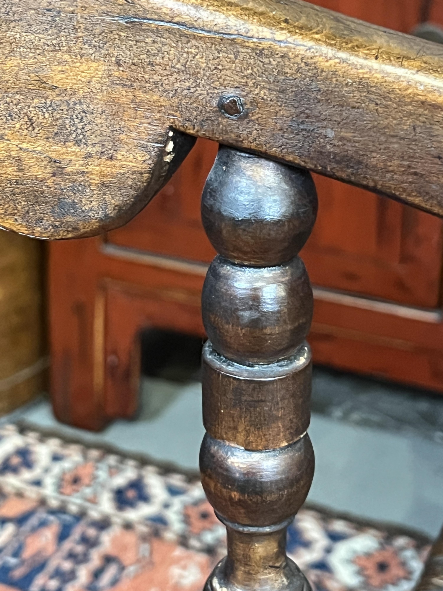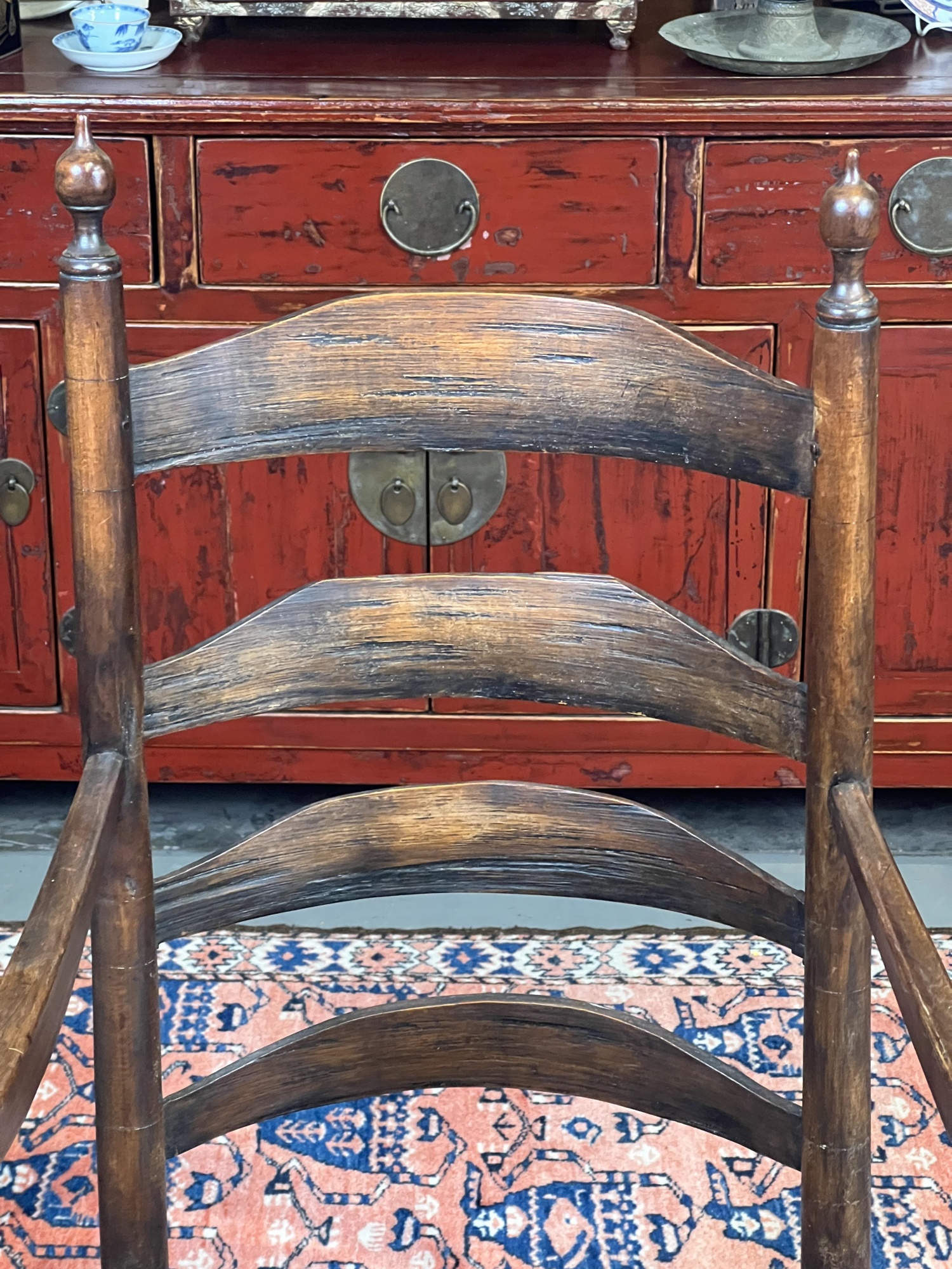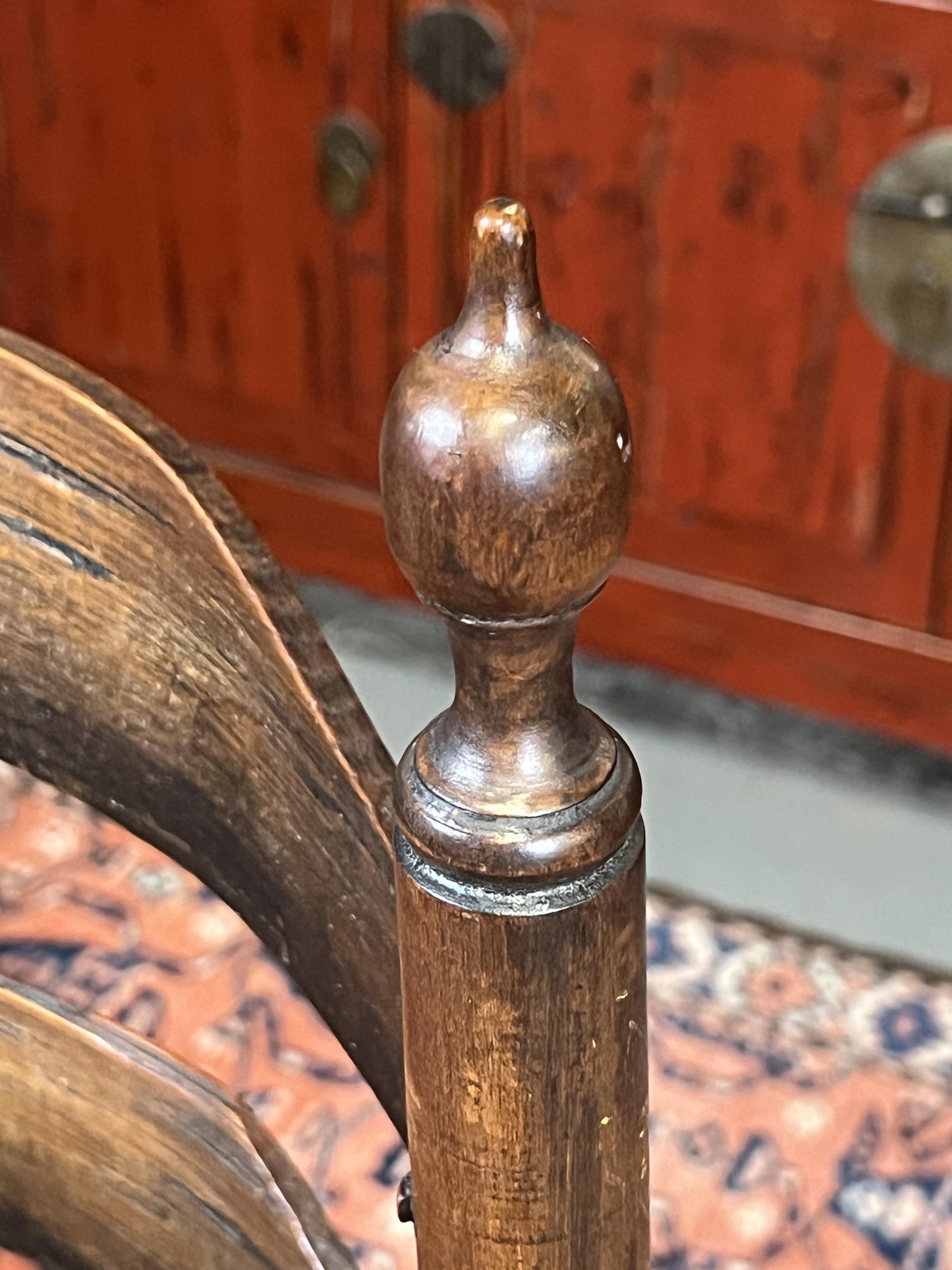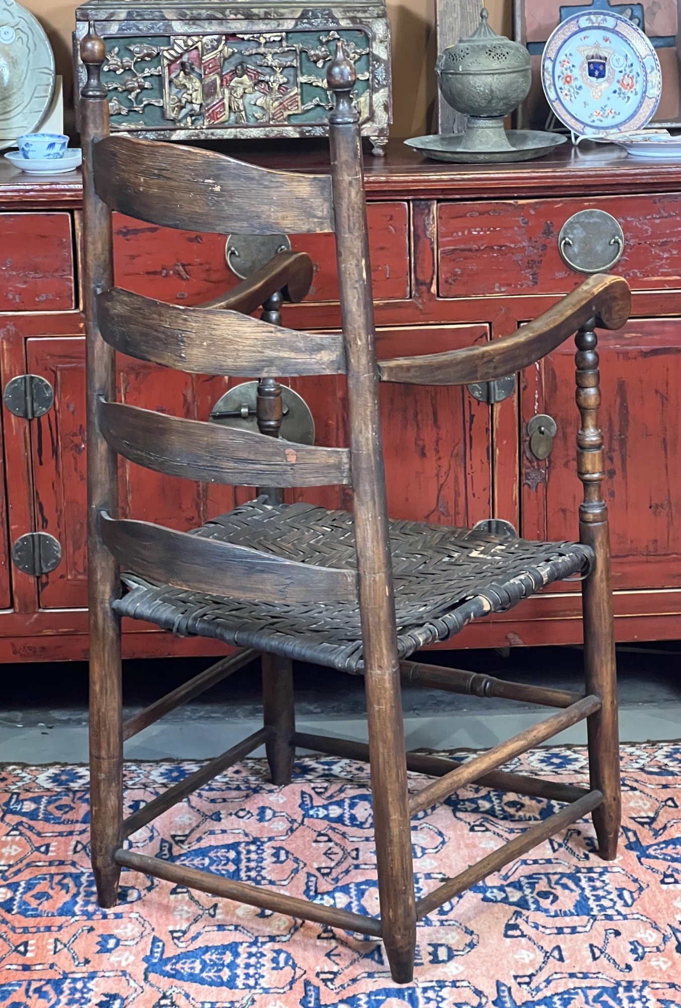 Old refinish, some losses to seat webbing. 42" x 20 1/2" x 24"