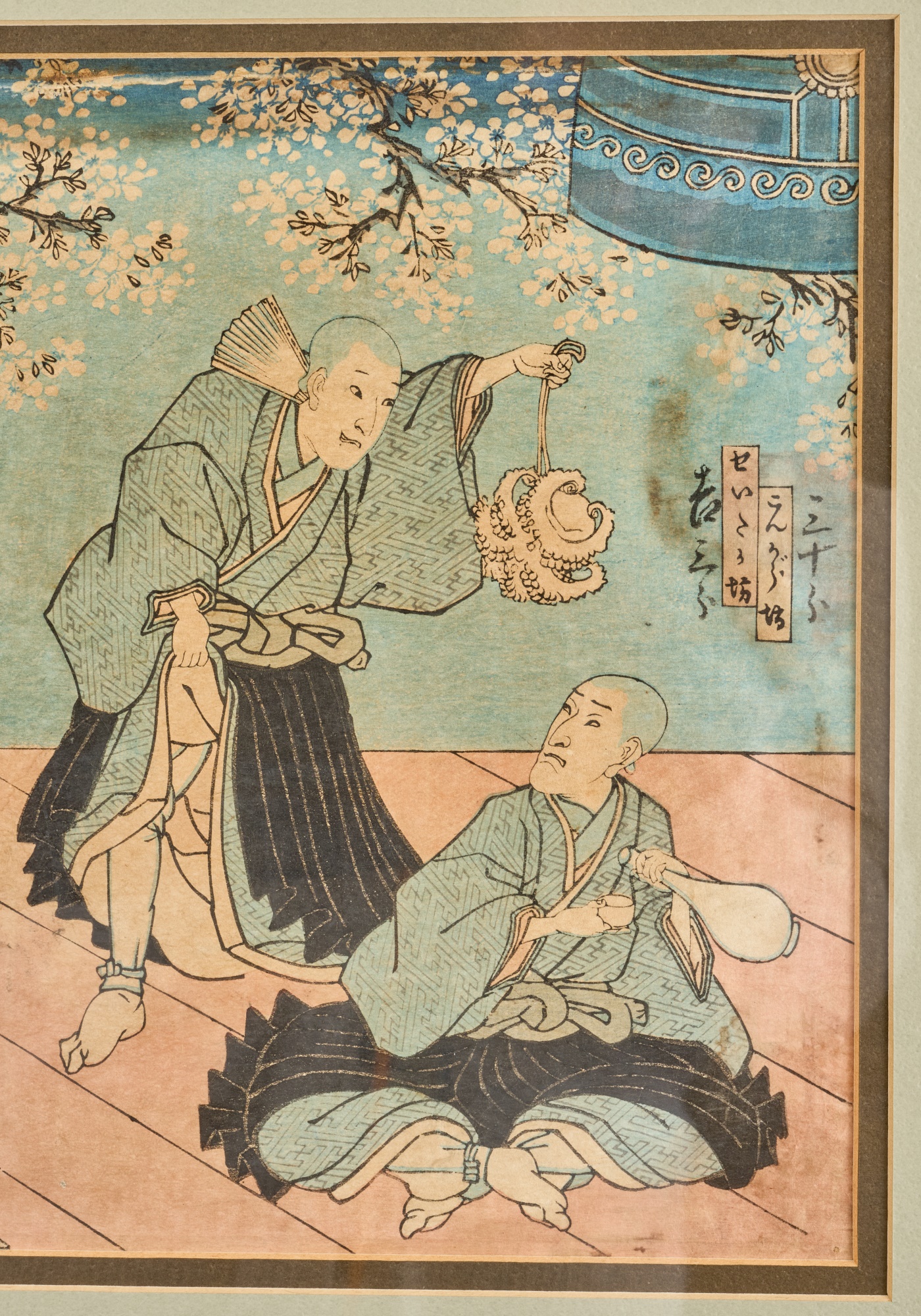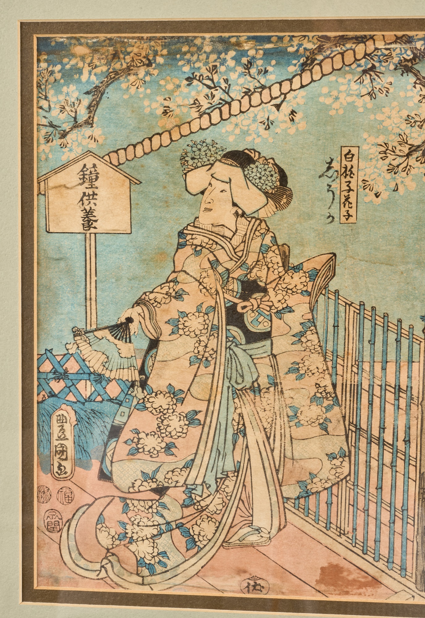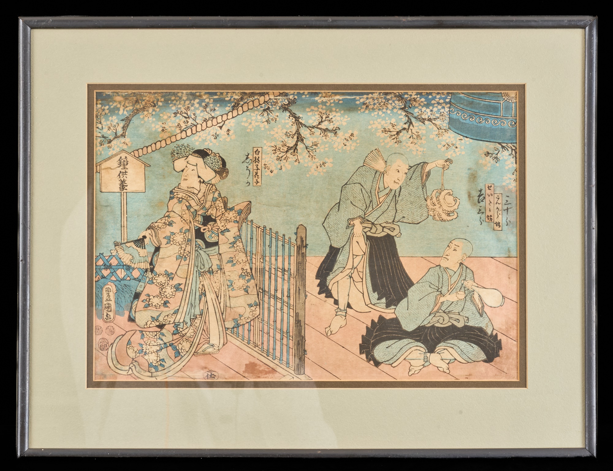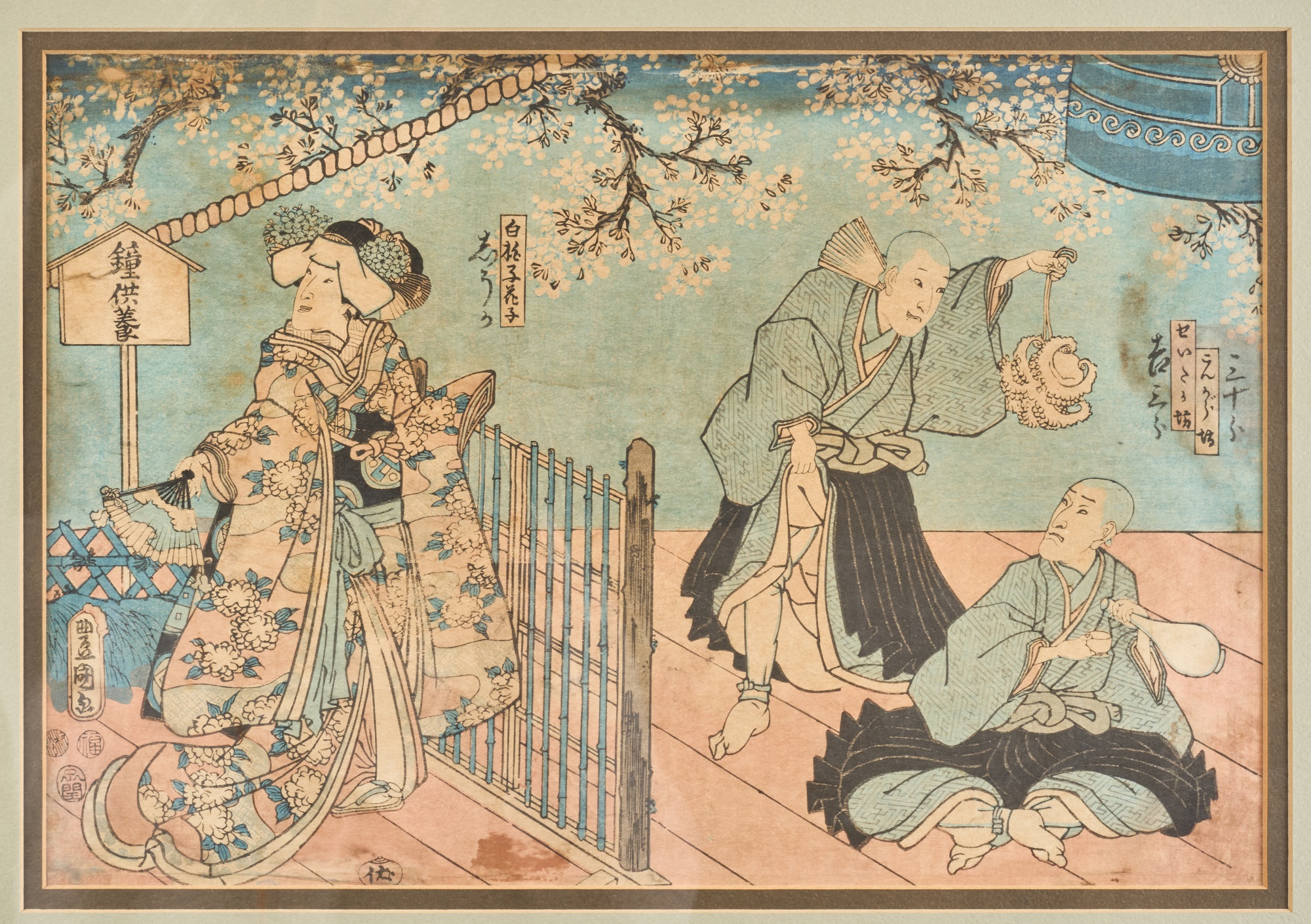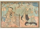 Diptych. Color Woodblock print, 14 x 18.5 inches (overall including frame) Condition: Wear, staining