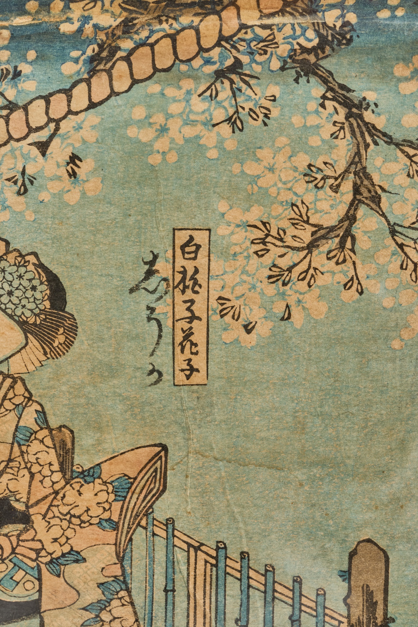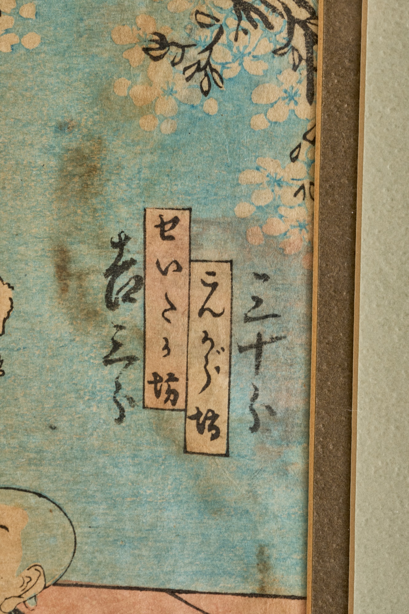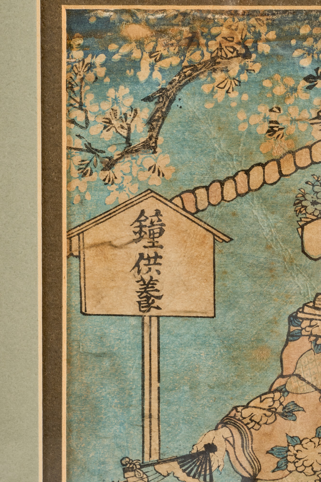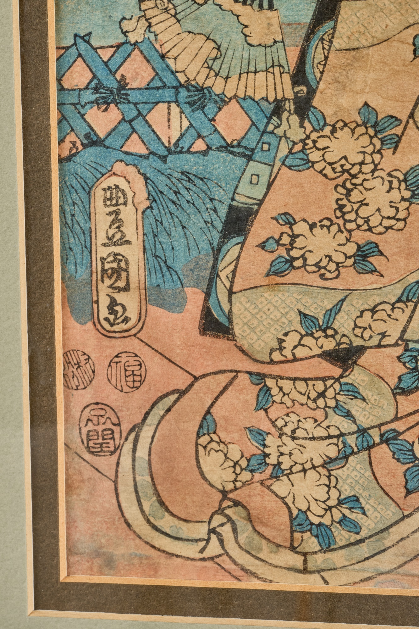 Diptych. Color Woodblock print, 14 x 18.5 inches (overall including frame) Condition: Wear, staining
