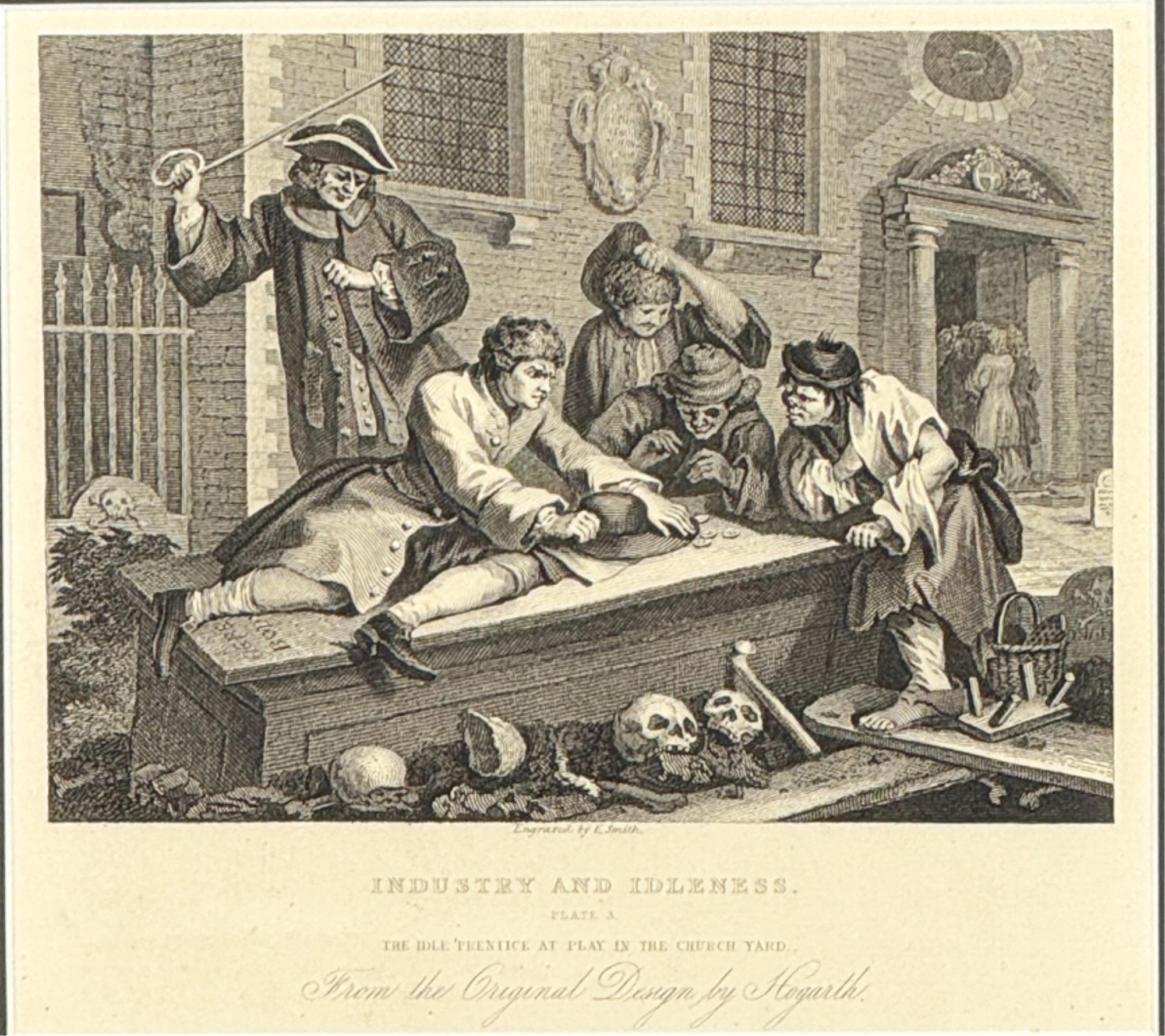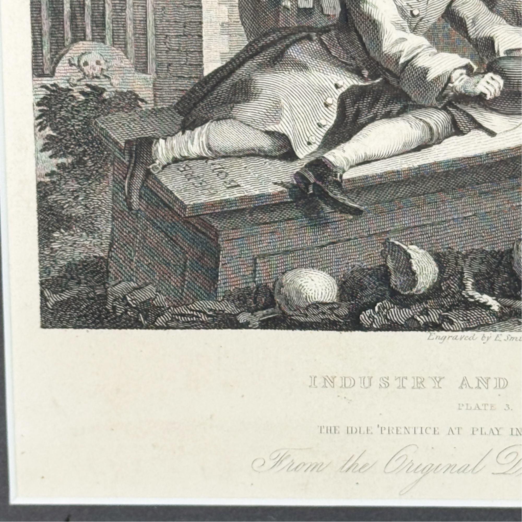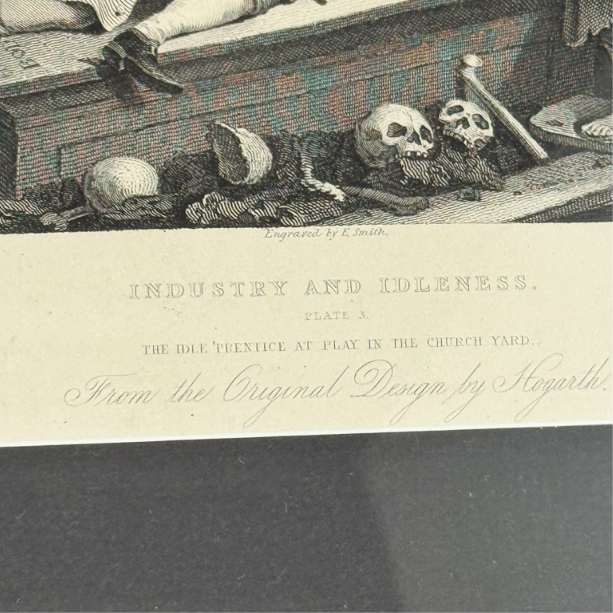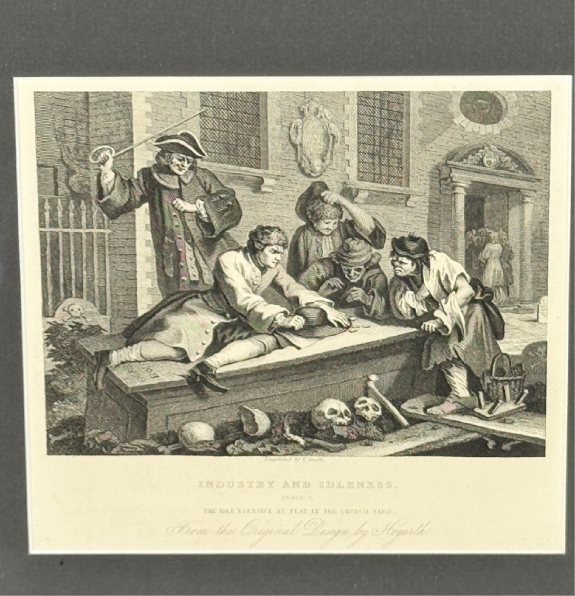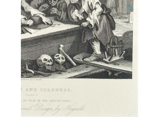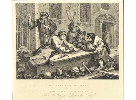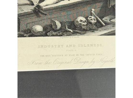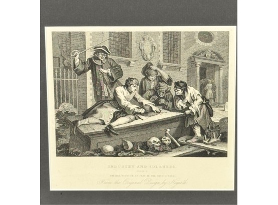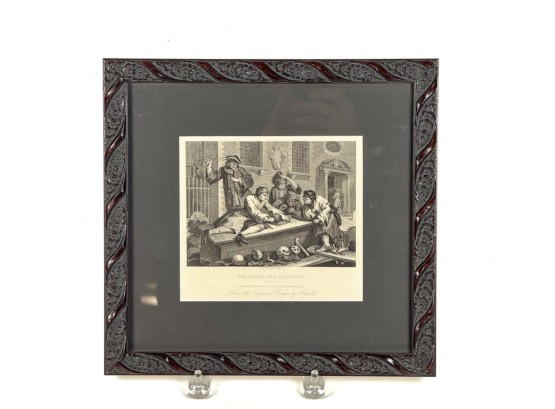 "Industry and Idleness". Framed 11 3/8 x 12 inches. Condition: Good.