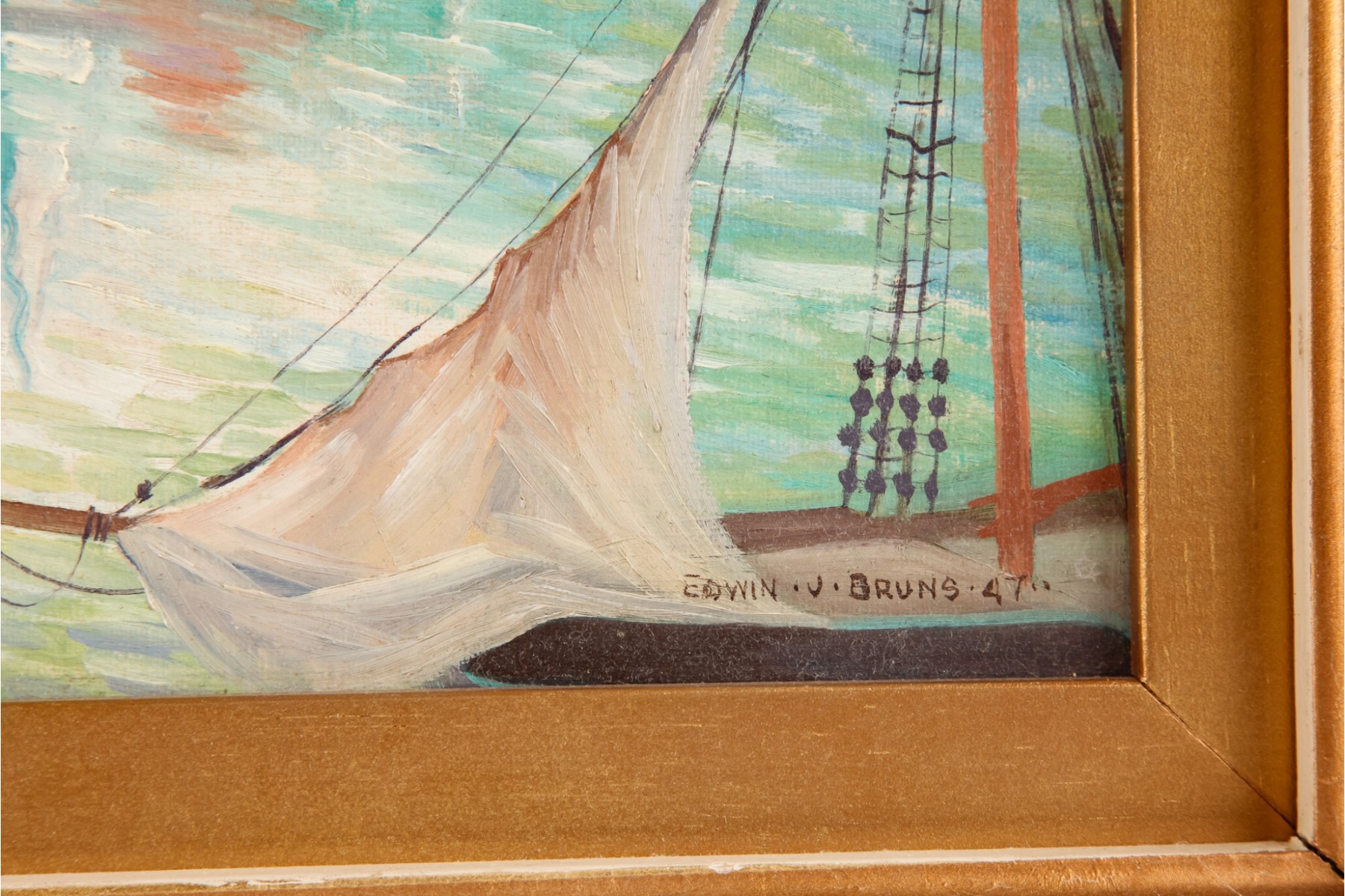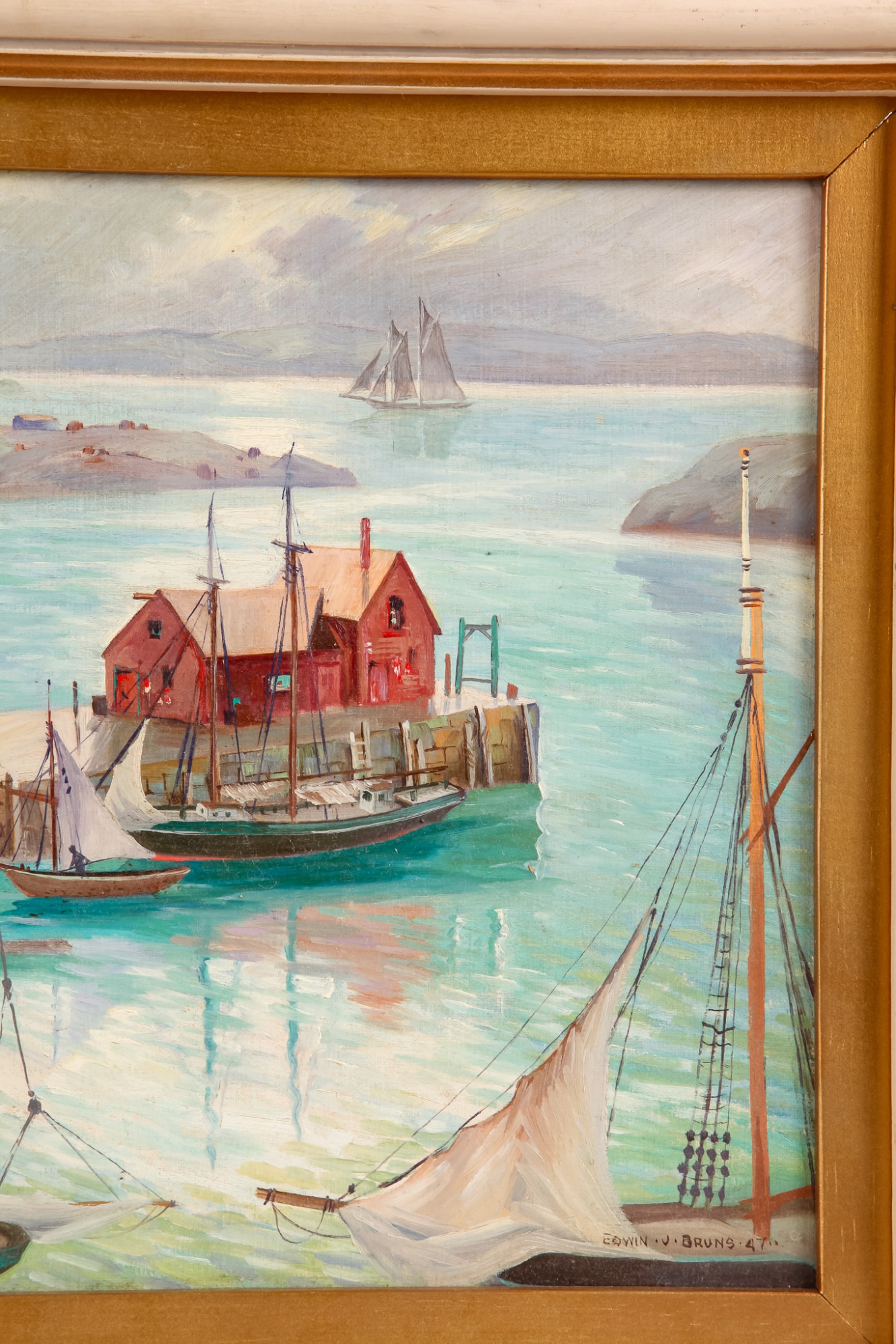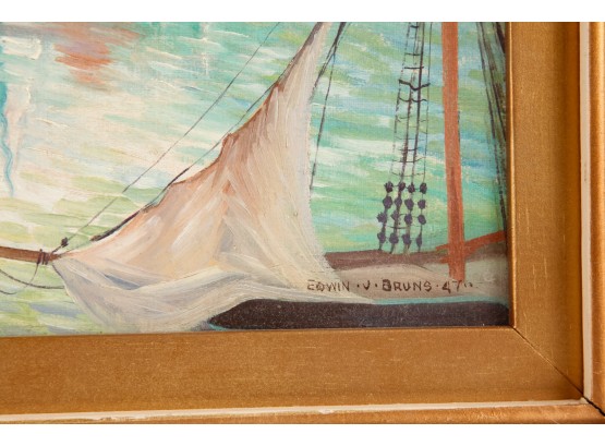 Framed oil on board, signed and dated 1947. 18 x 20 inches, framed size.