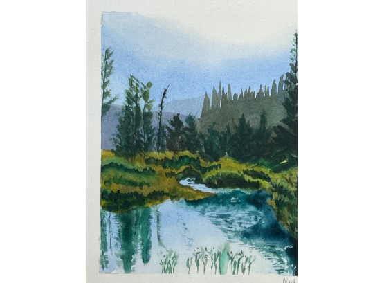 Maine Landscape. watercolor 18 x 17 inches (overall including frame) Condition: Good Temp No 6248