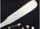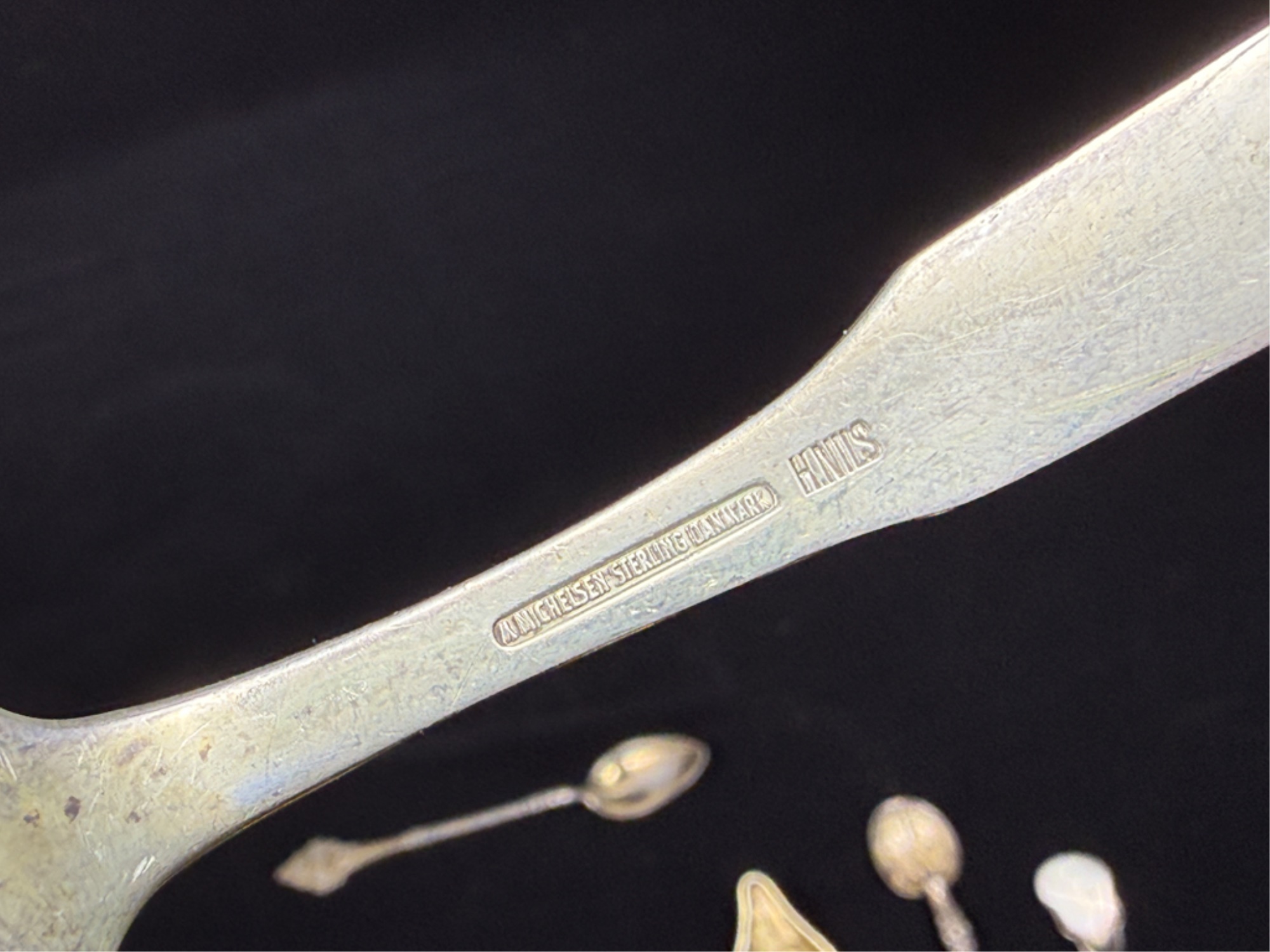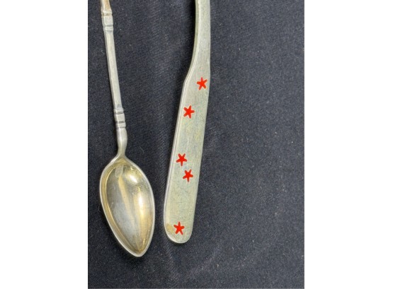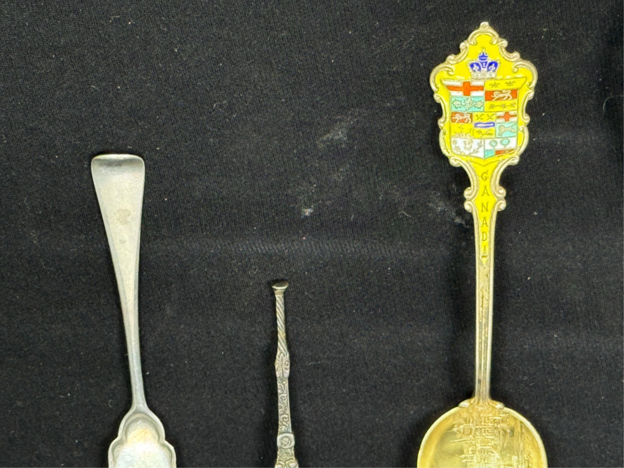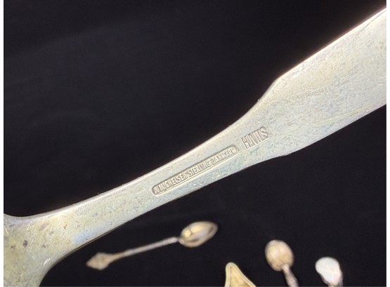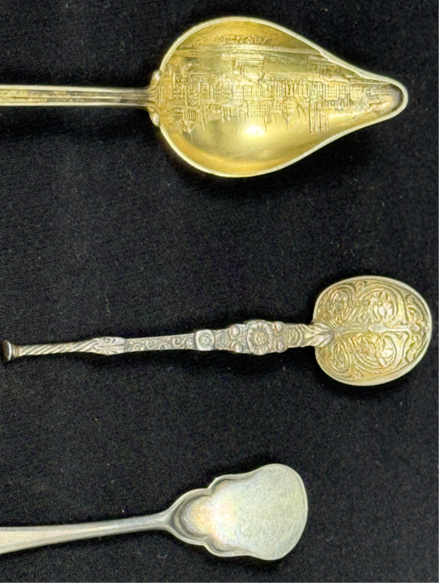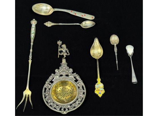 (1) 830 silver spoon, (2) spoons unmarked, strainer unmarked. 7 x 3 1/2 inches. Condition: Good. Temp No 2841