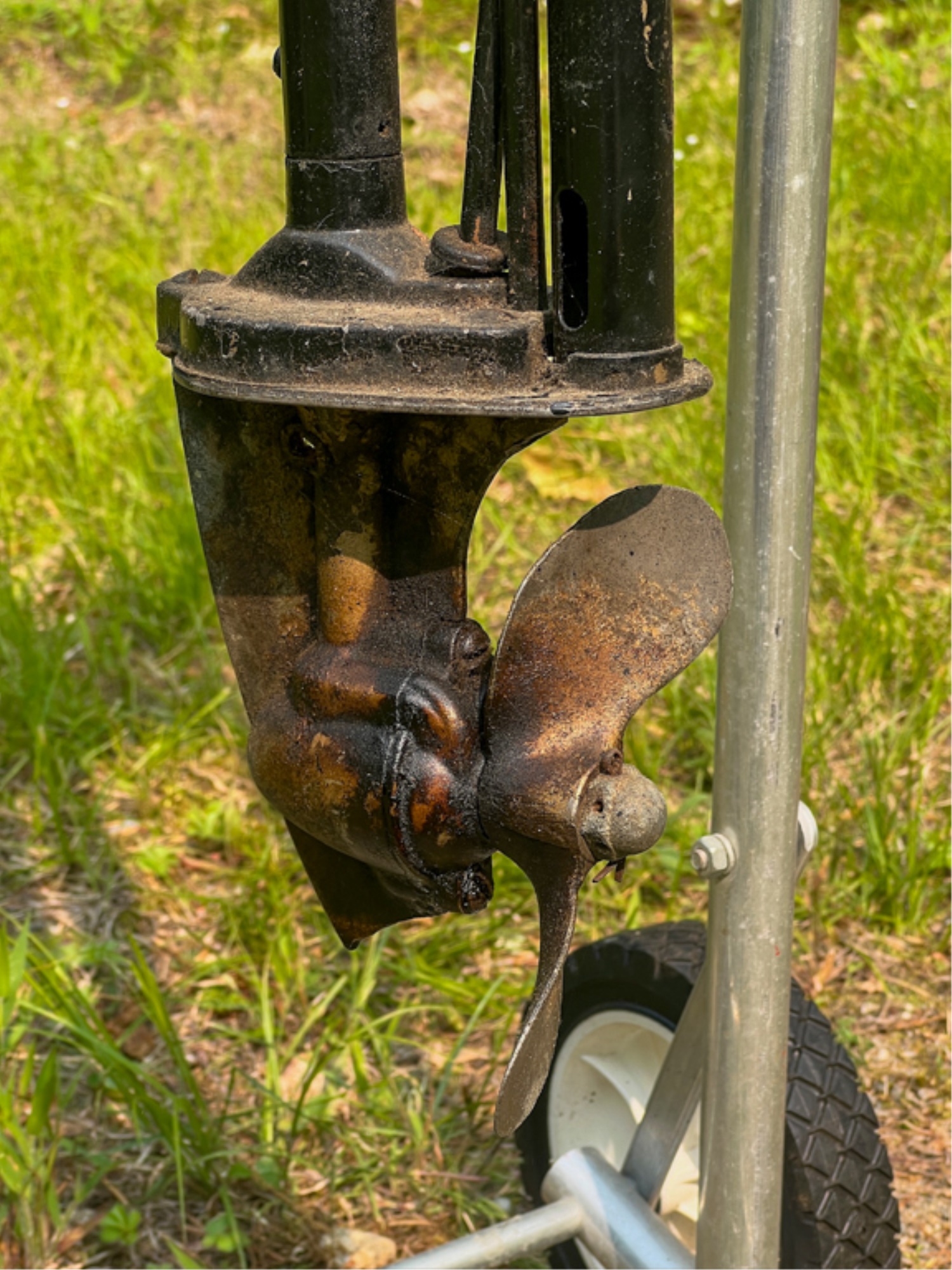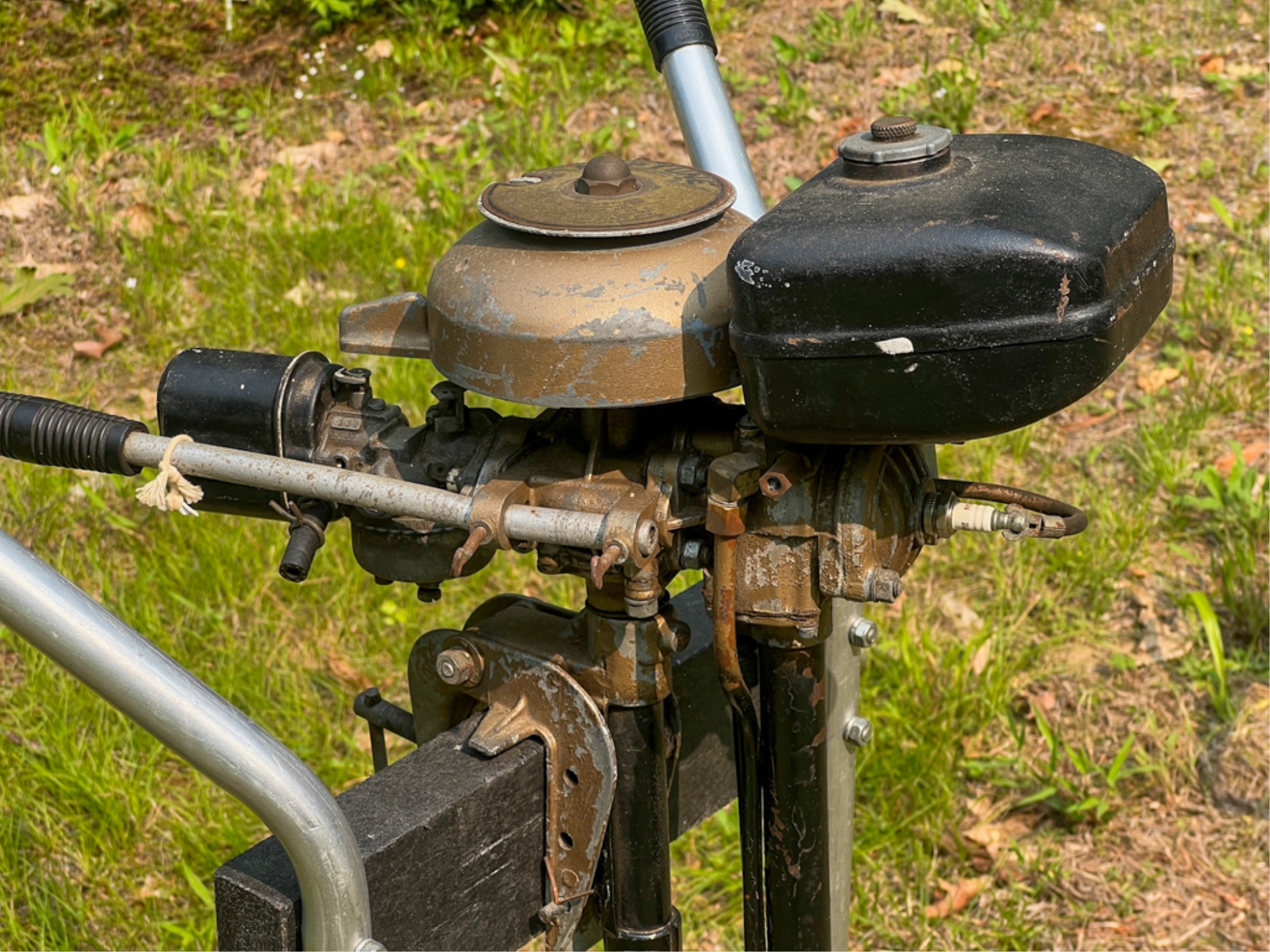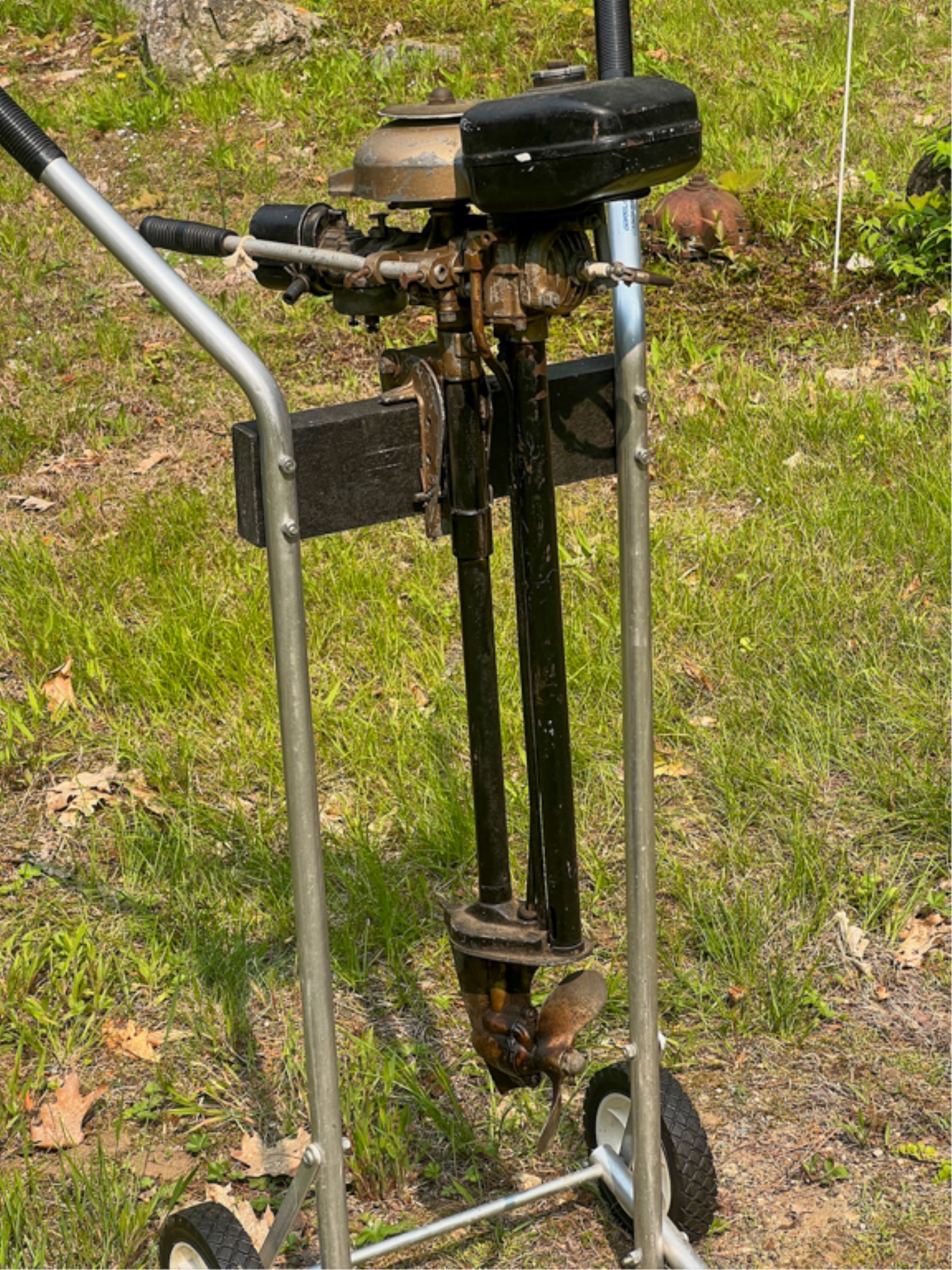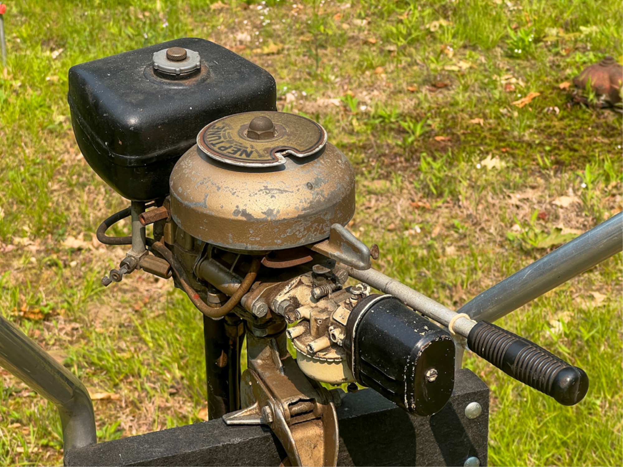 Muncie Gear Works Inc. Neptune "Mighty Mite" outboard motor, serial no F2624. 32 inches. Condition: Untested, maintained, & stored in a dry, enclosed shed. Temp No 4087