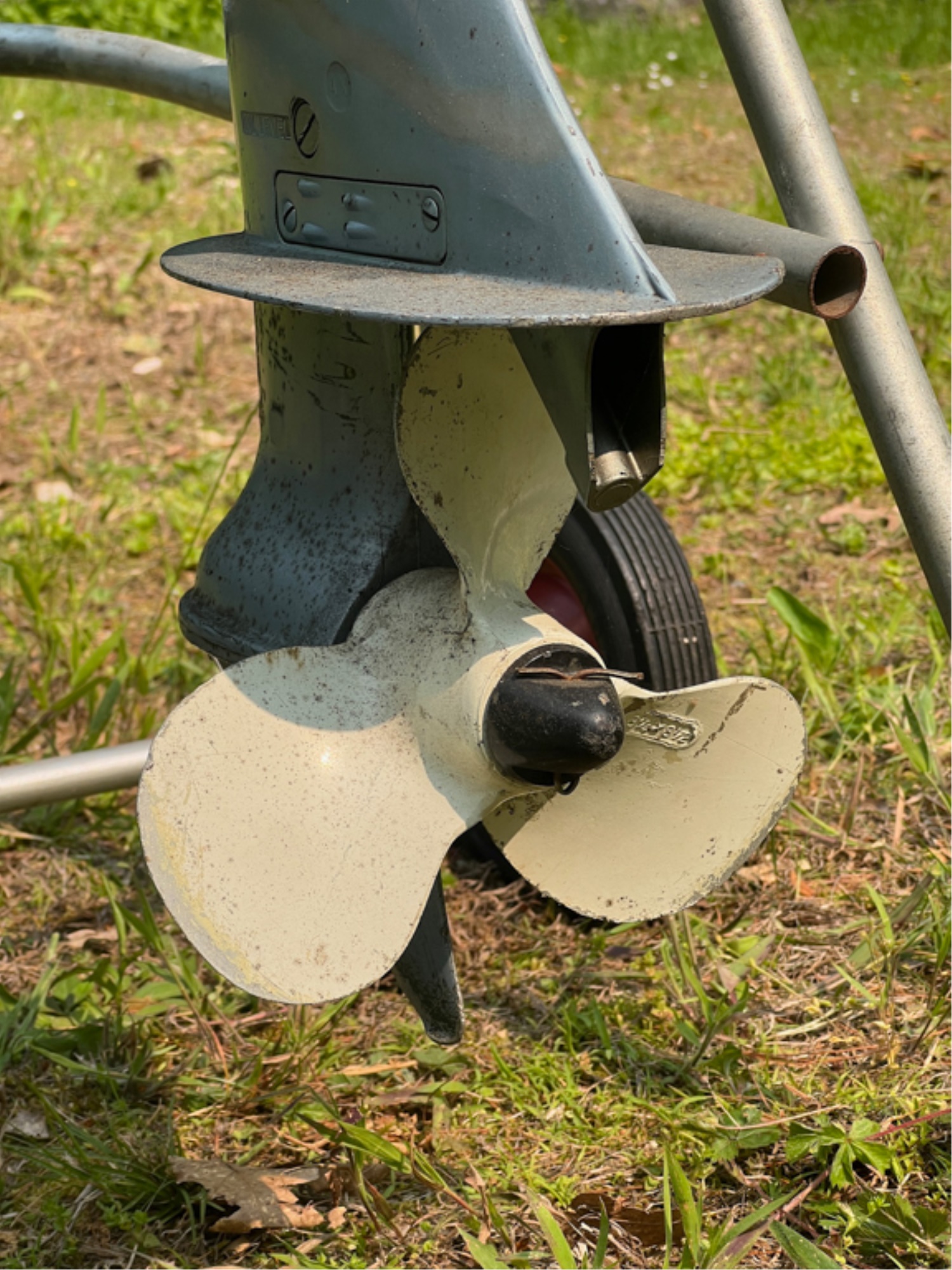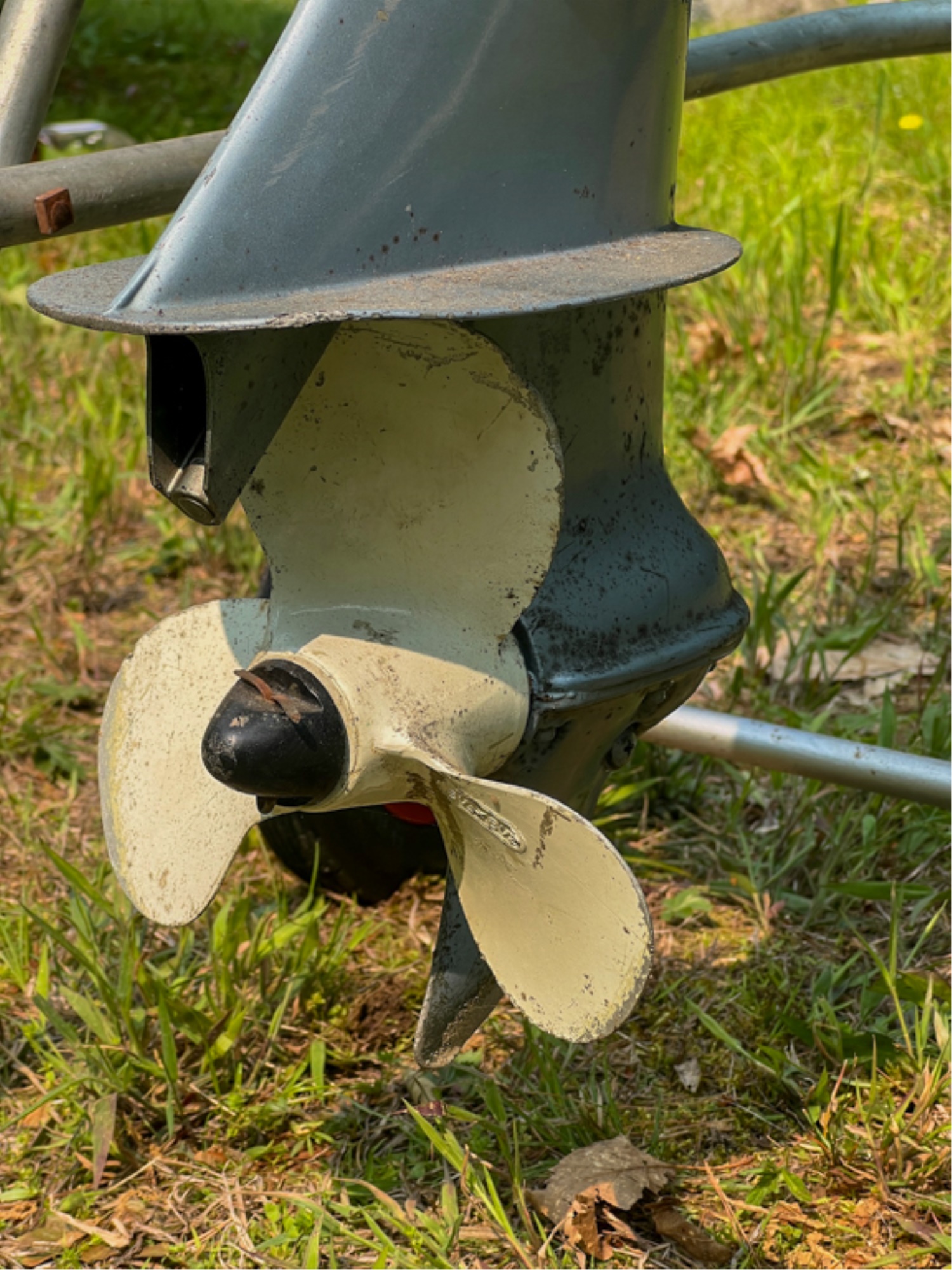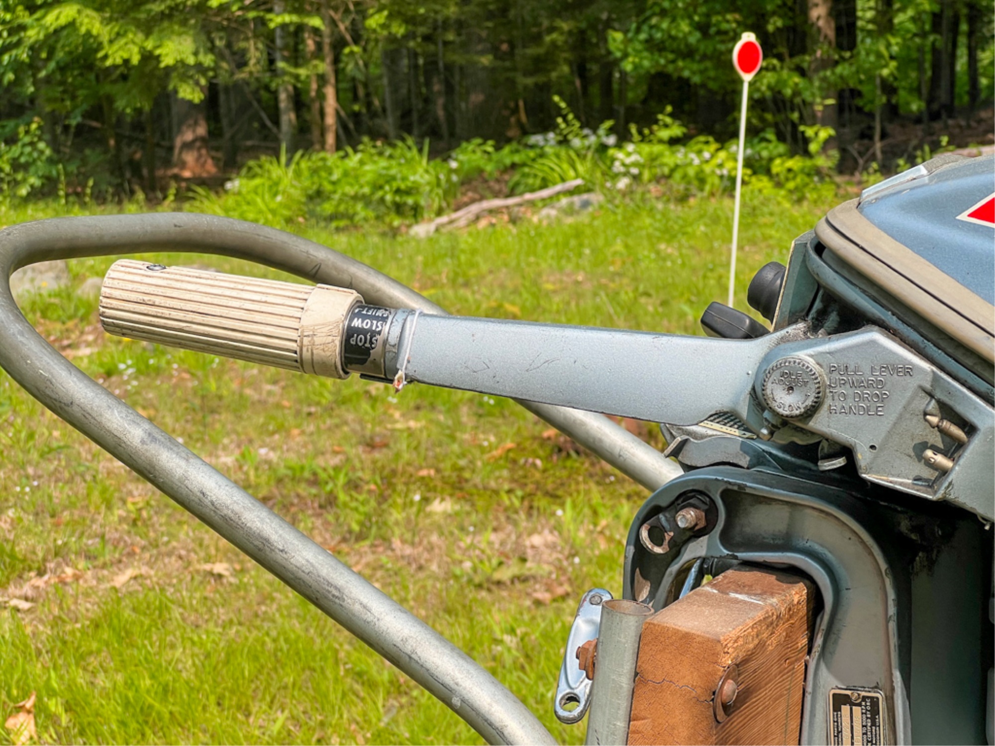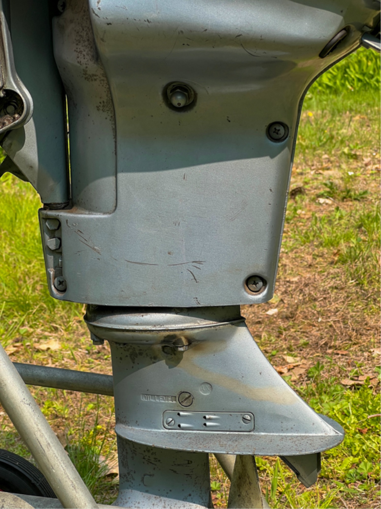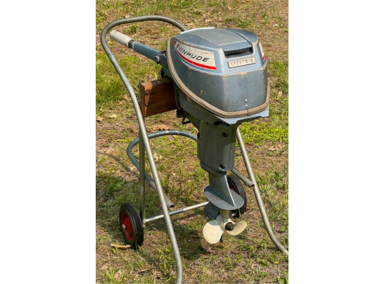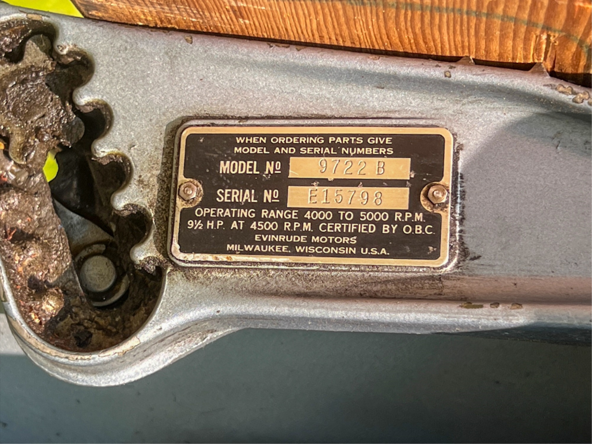 Evinrude "Sporttwin" 9.5 HP outboard motor model no. 9722B. 35 x 13 x 26 inches. Condition: Untested, maintained, & stored in a dry, enclosed shed. Temp No 4089