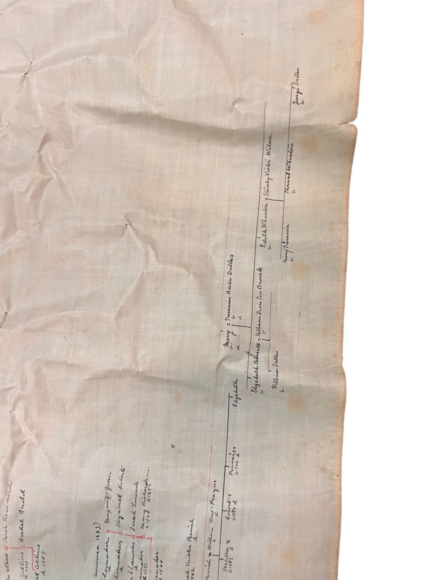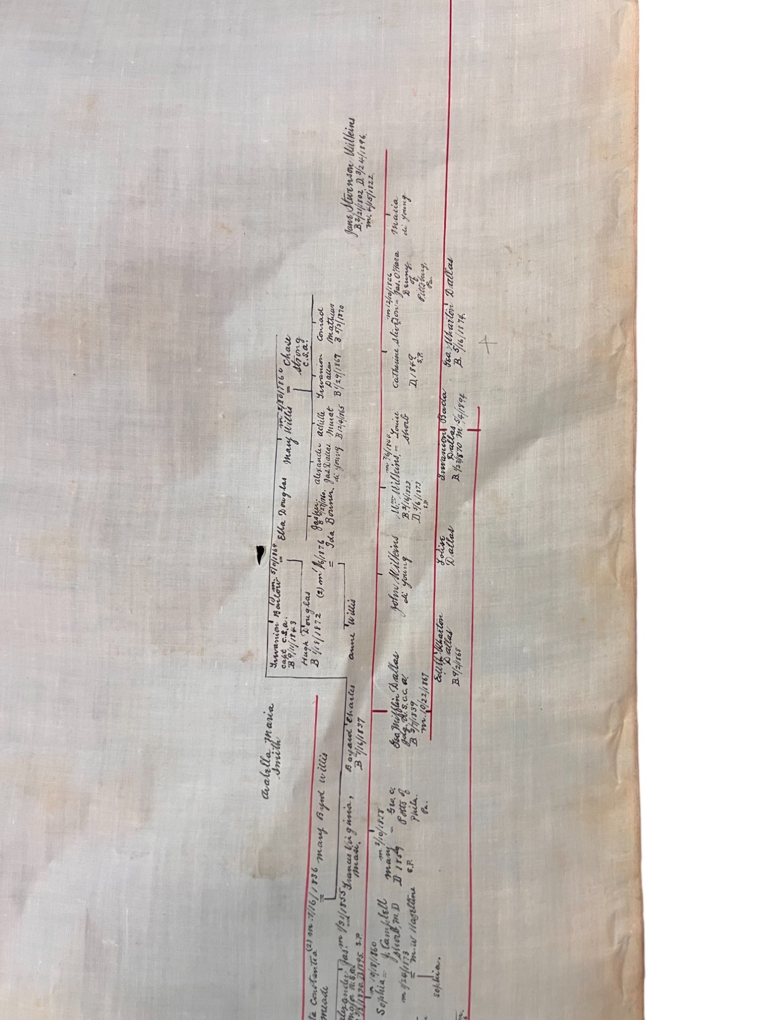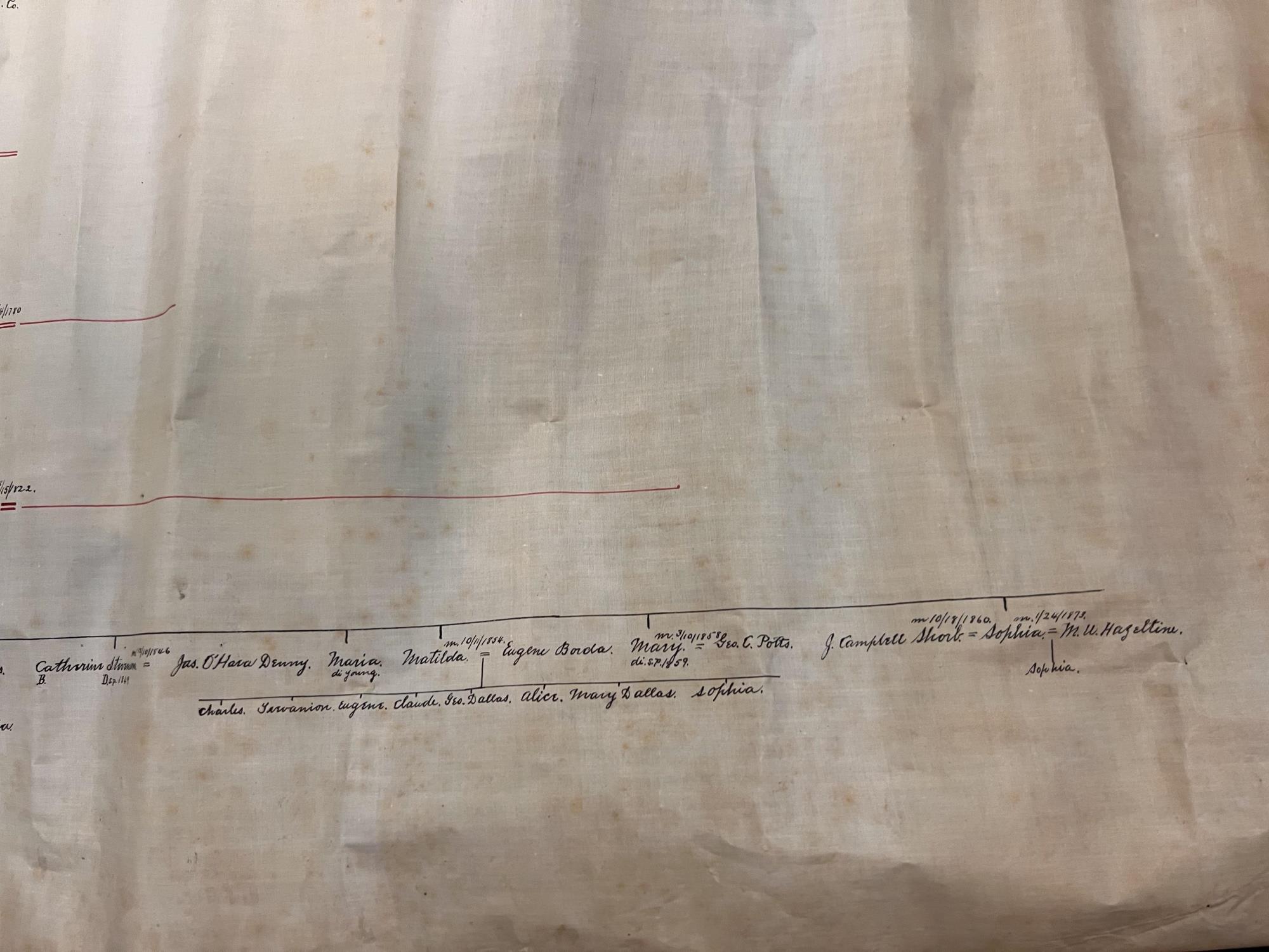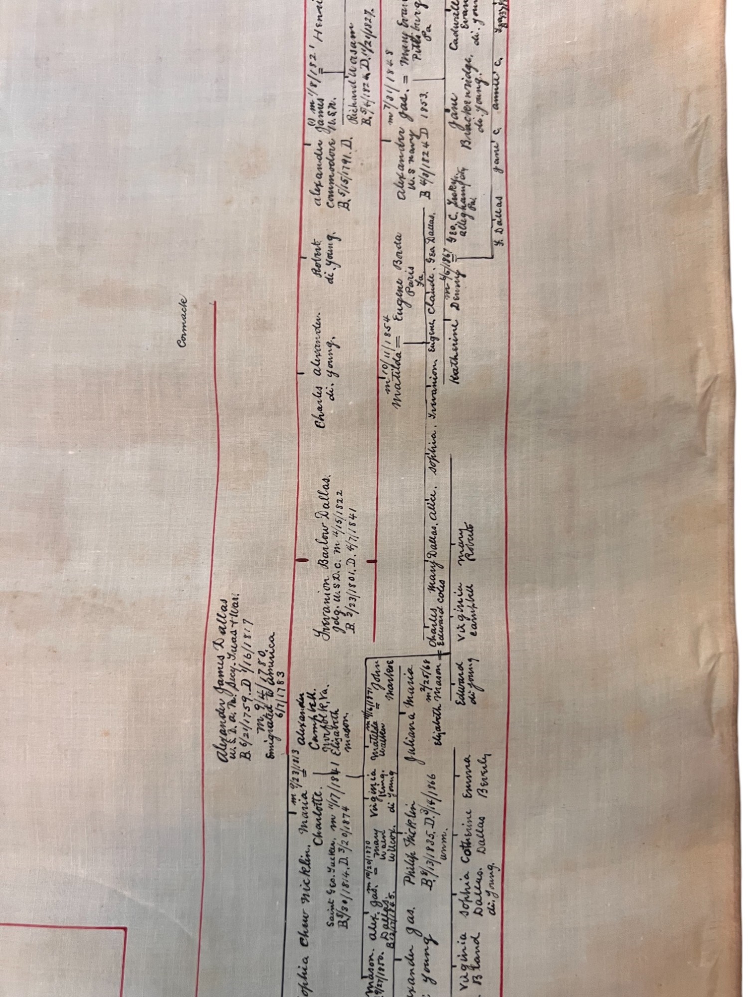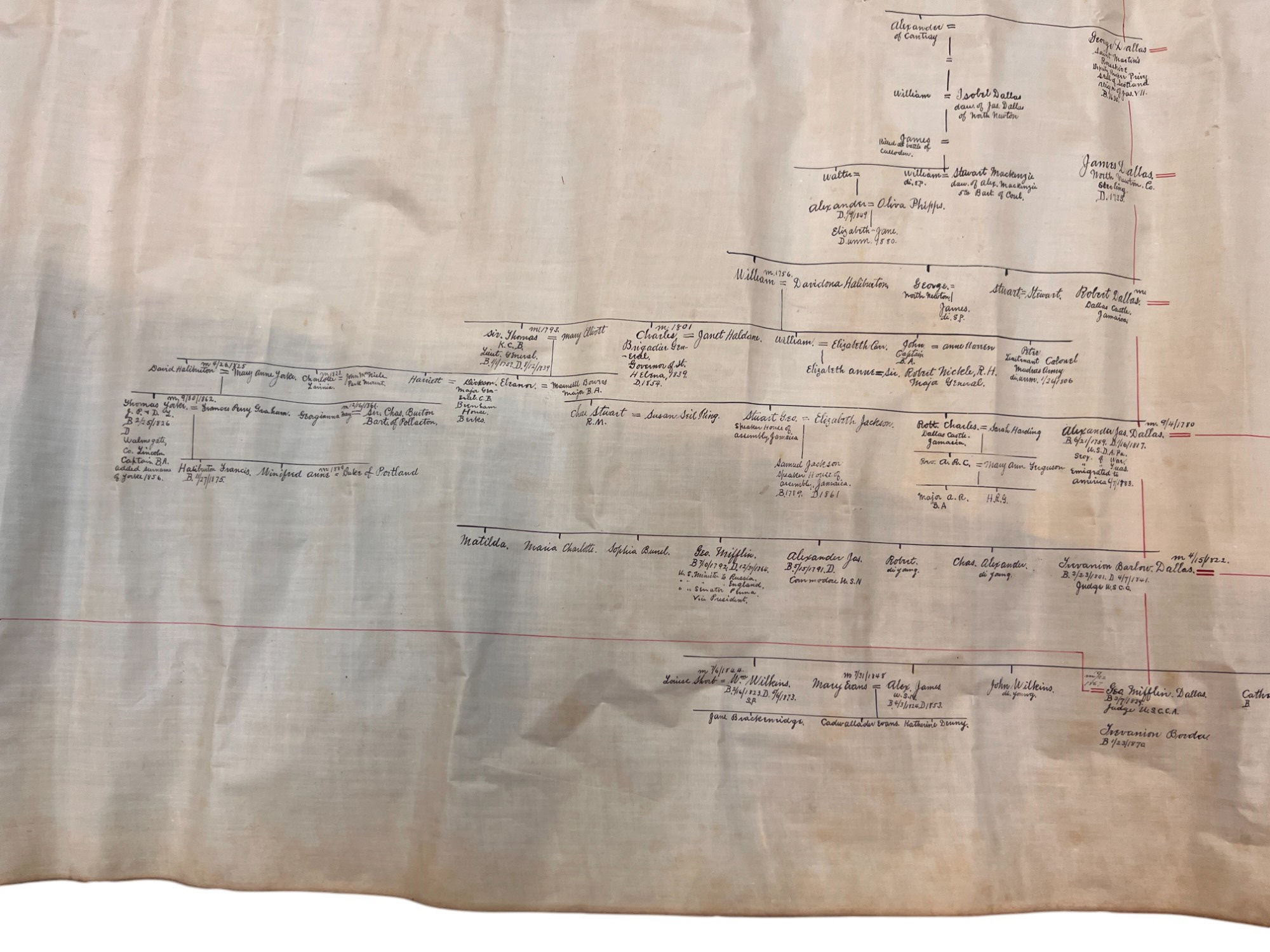 Recording begins with William? de Dallas, Lord of Dallas (1239-1290) and ending in the early 20th century. All hand written on what appears to be woven paper. (3) separate sheets of paper approx 36 x 68 inches. Provenance: by direct descent of the family of George M. Dallas, Vice President under James K. Polk.
