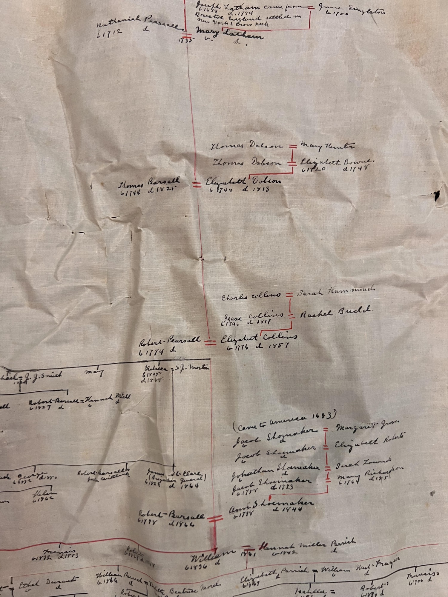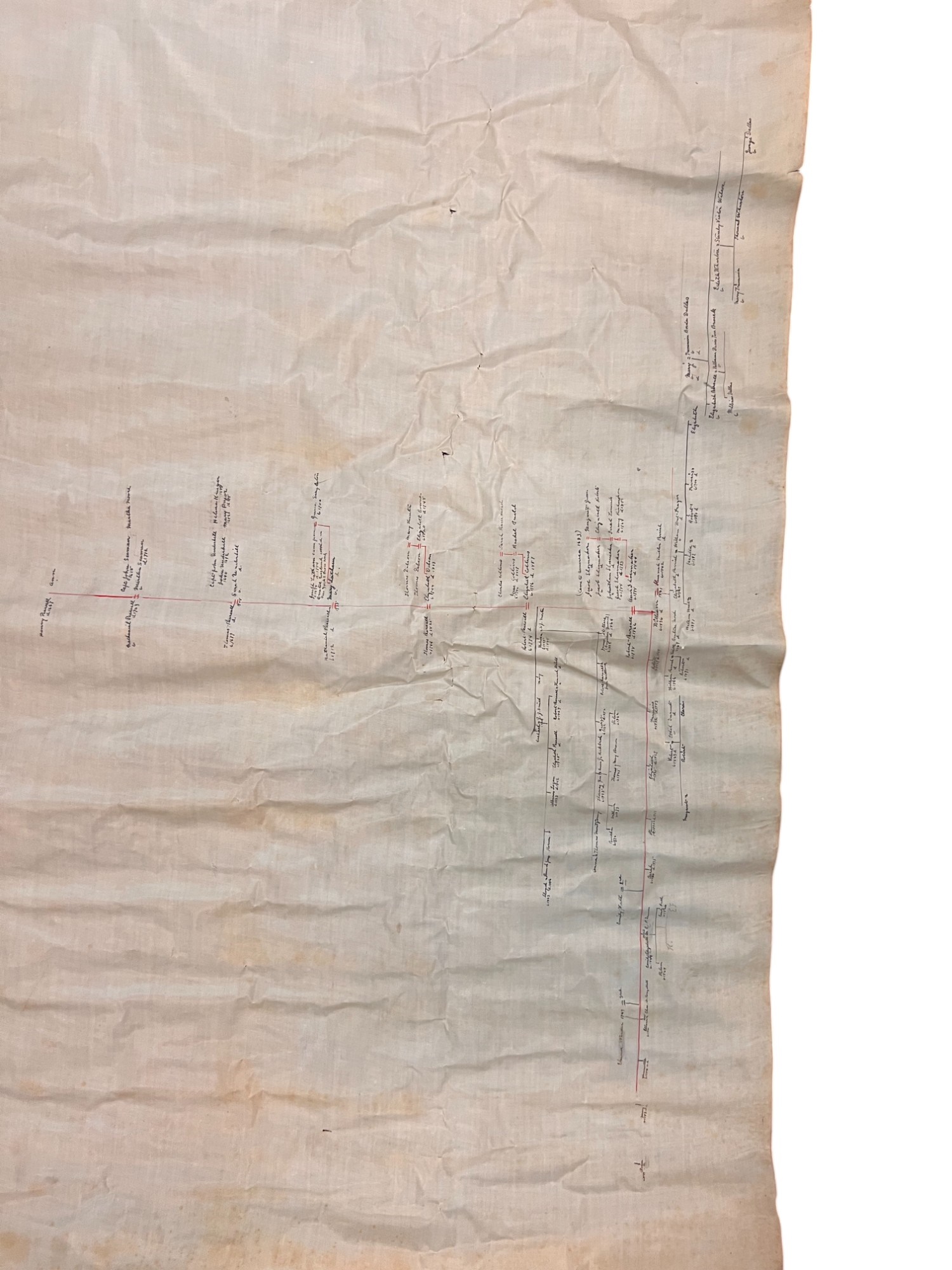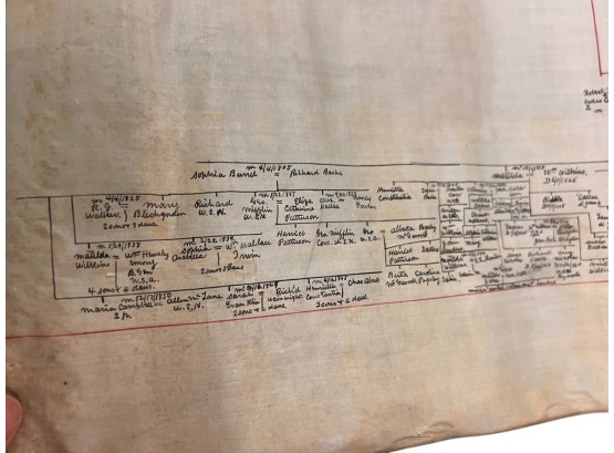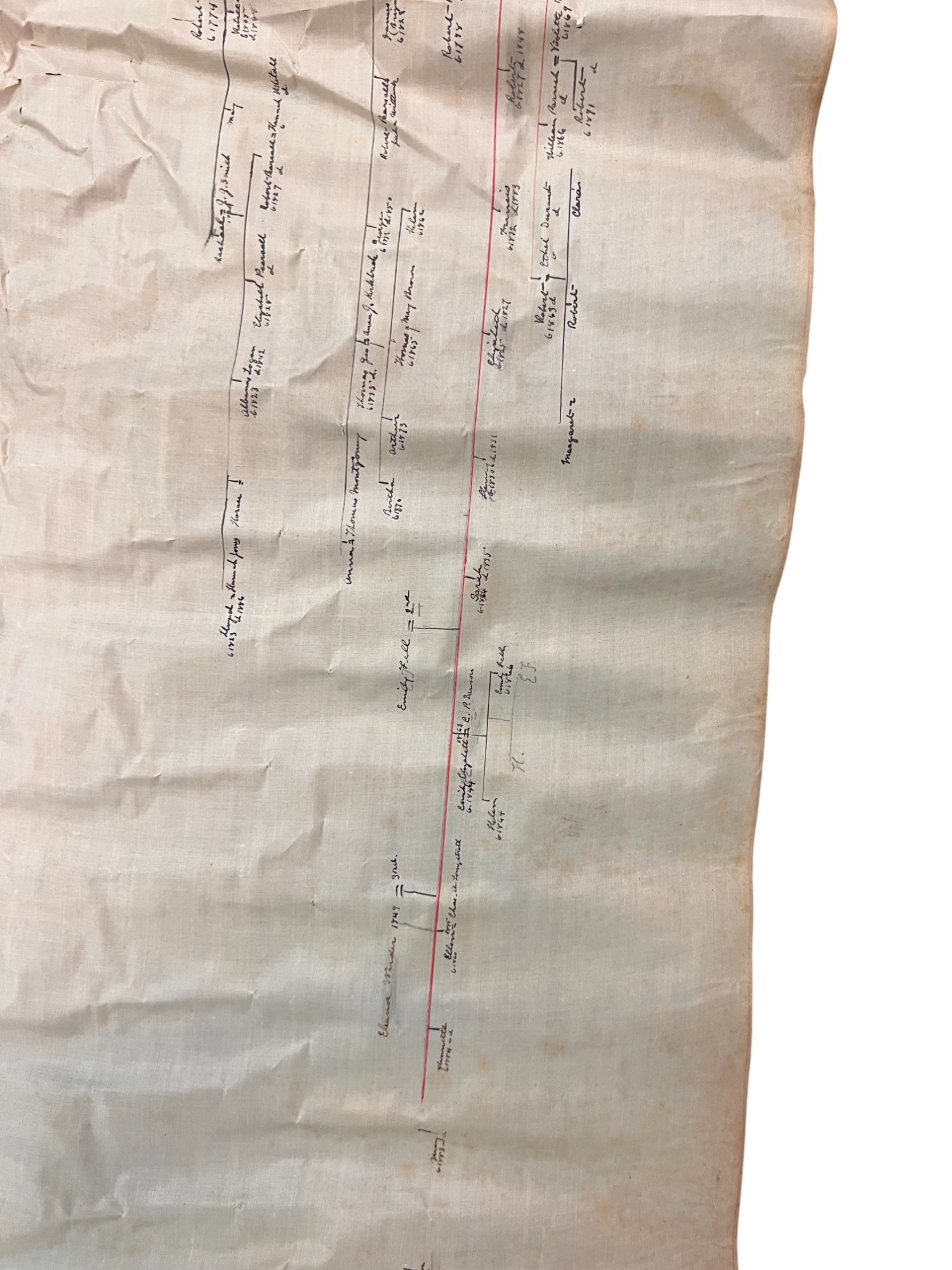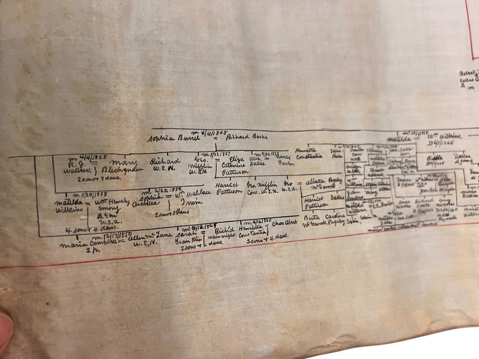 Recording begins with William? de Dallas, Lord of Dallas (1239-1290) and ending in the early 20th century. All hand written on what appears to be woven paper. (3) separate sheets of paper approx 36 x 68 inches. Provenance: by direct descent of the family of George M. Dallas, Vice President under James K. Polk.