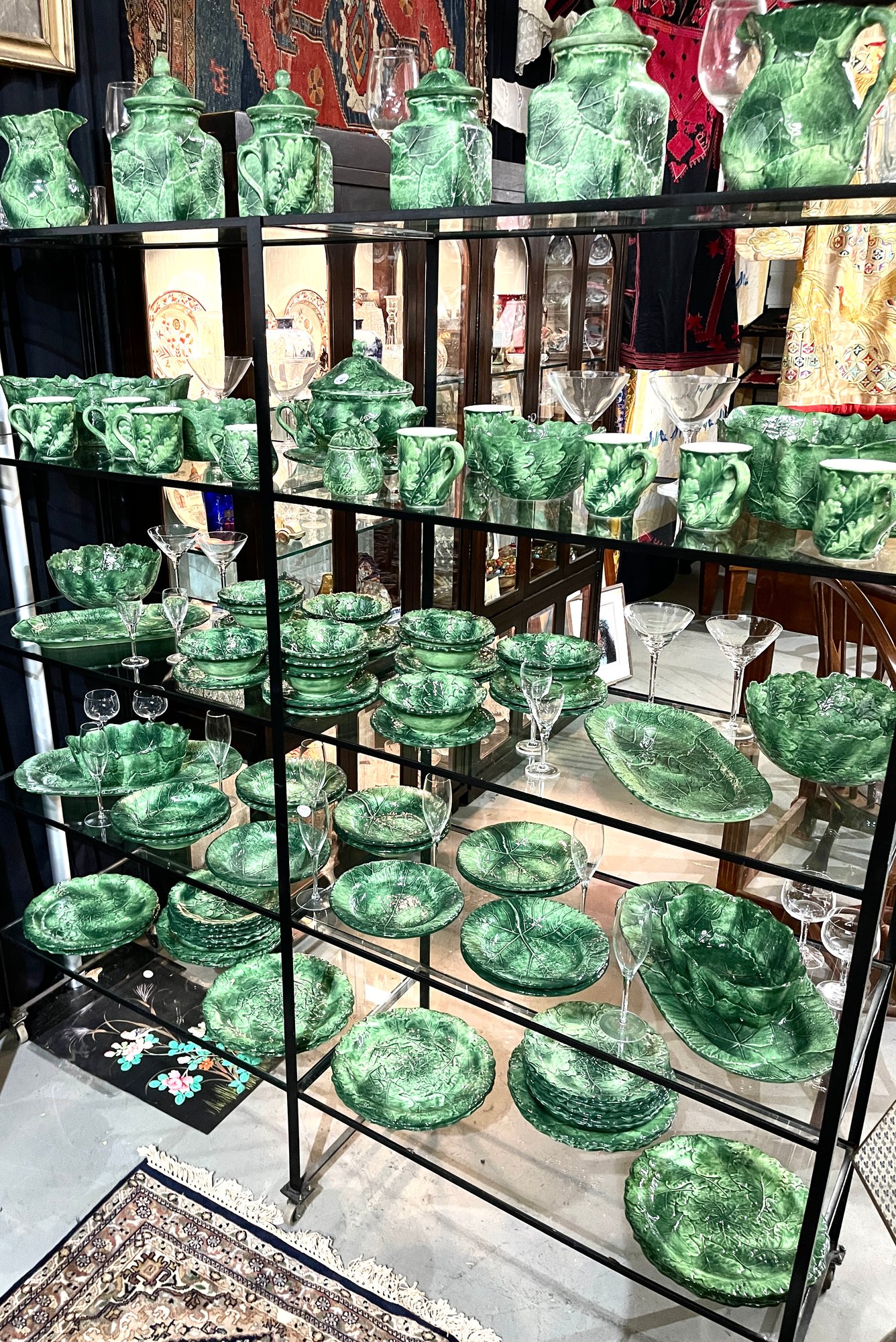 Ceramic service made in Italy. Includes: (12) 12 1/2" plates, (10) 10 3/4" plates, (12) 8" plates, (12) 9 1/2" bowls, (13) 7" bowls, (11) 4" h mugs, sugar and creamer, (2) 10" dia serving bowls, (2) 7 3/4" serving bowls, (2) 15 1/4" long serving bowls, (2) 11" L serving bowls, covered compote w/ platter 8 1/2" total height, (2) 19" platter, (2) 16" platters, (2) 8" h pitchers and (4) pc canister set 11" and 9"
