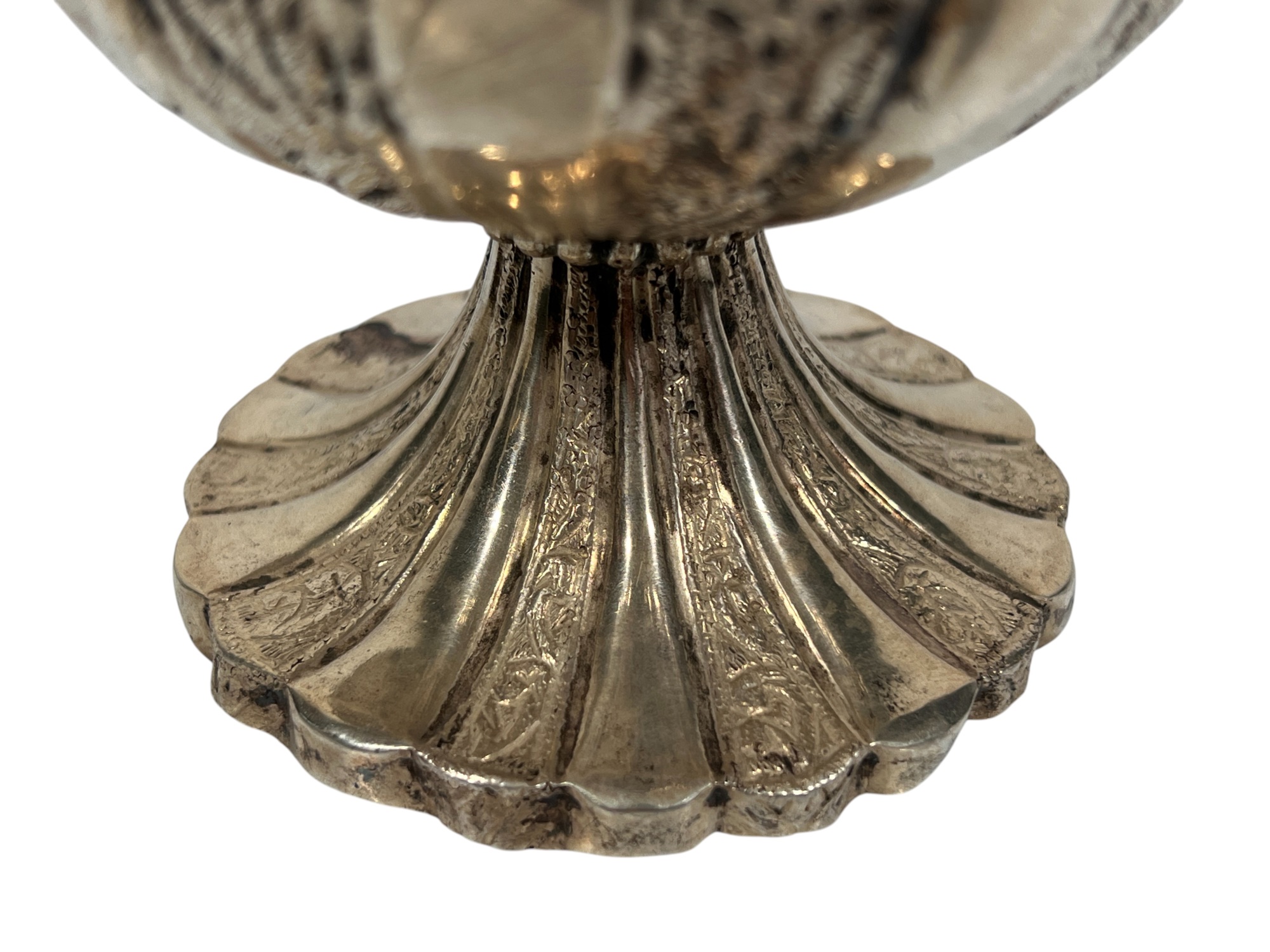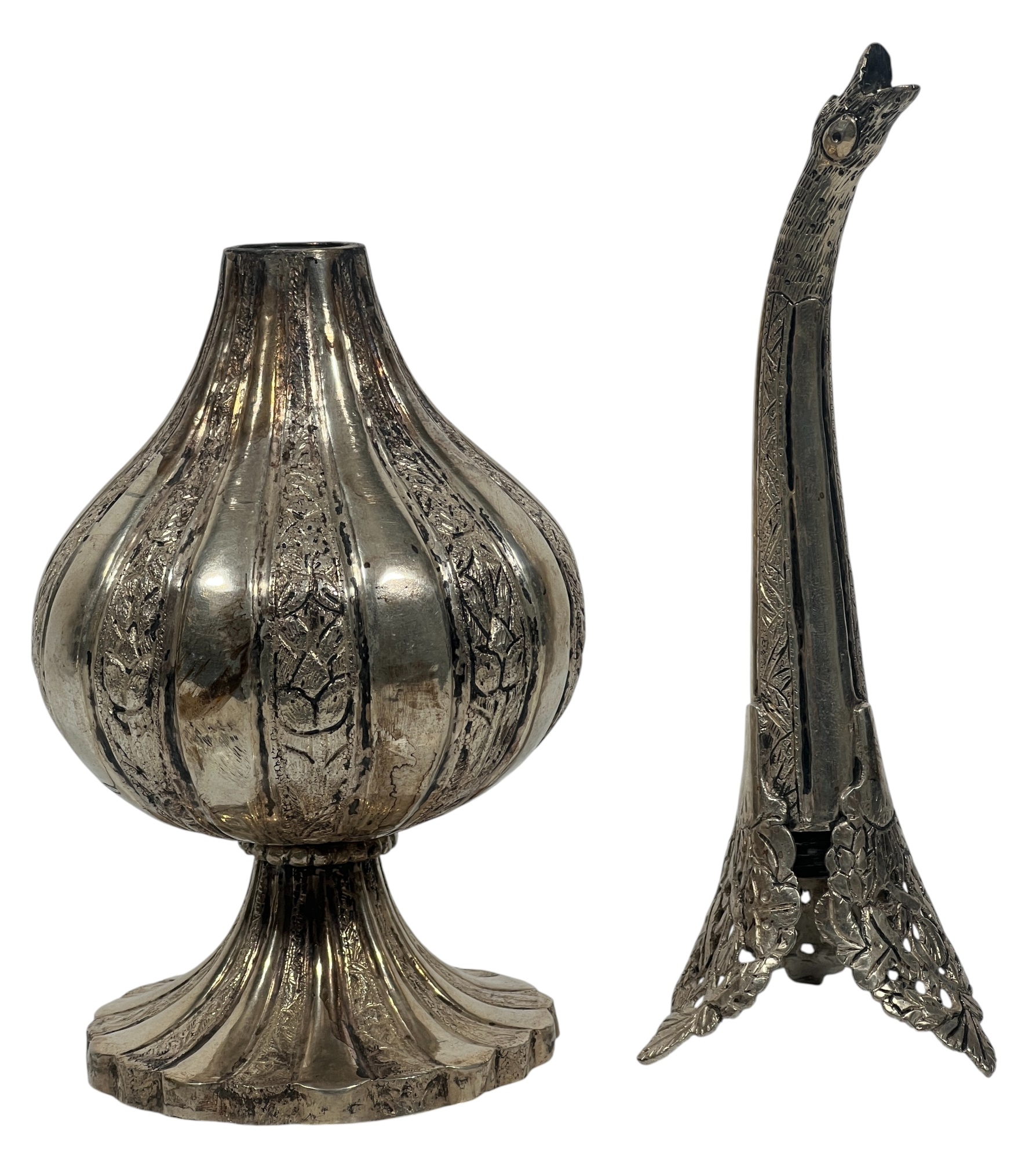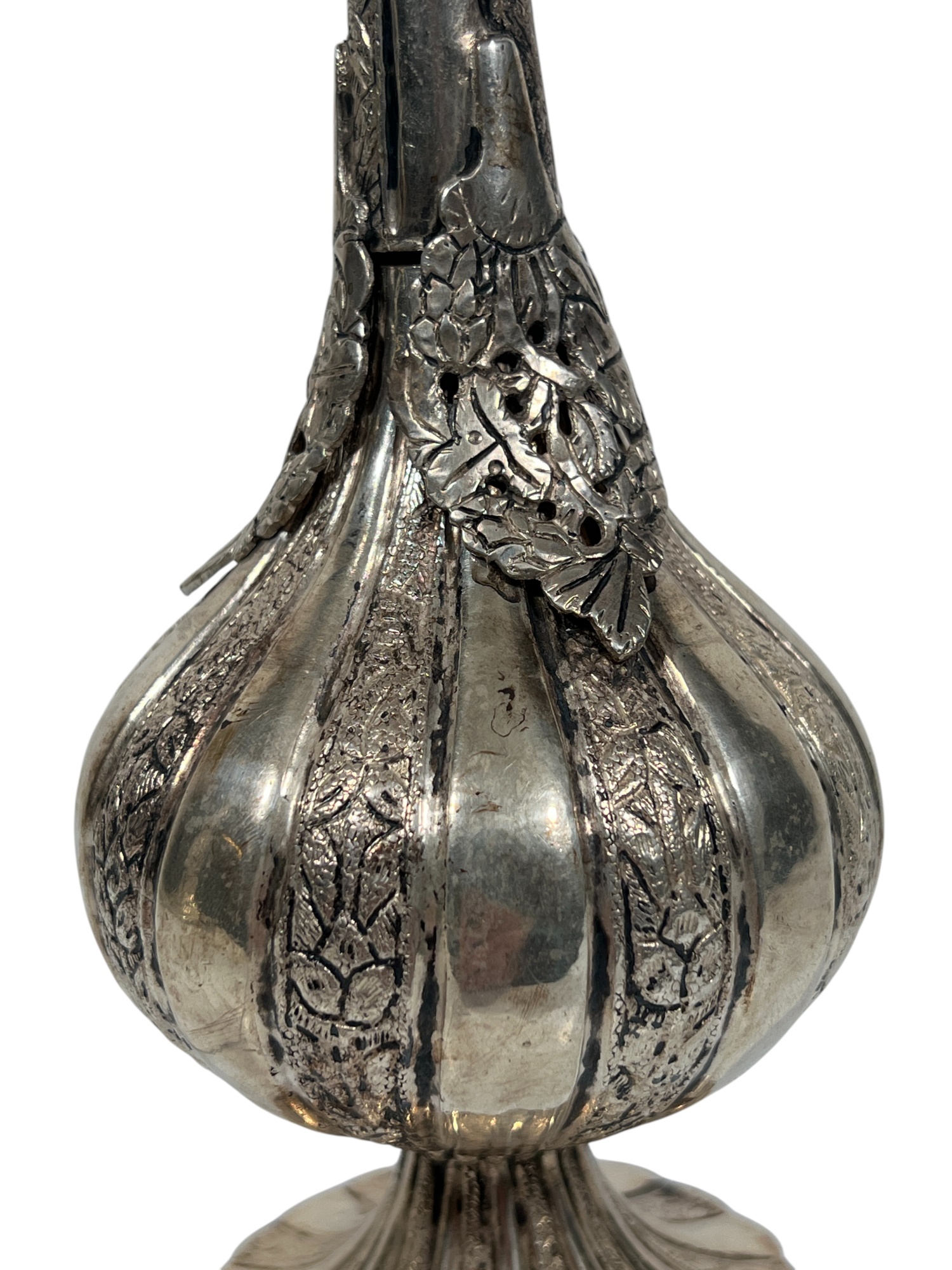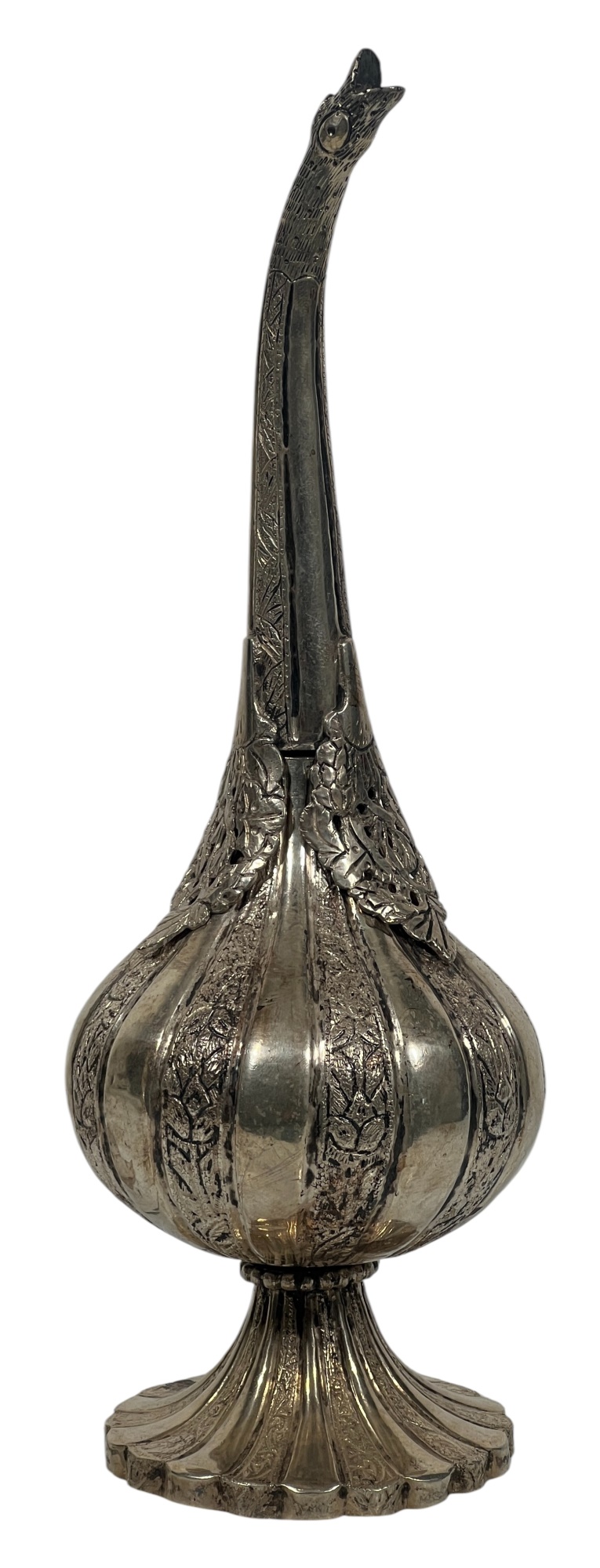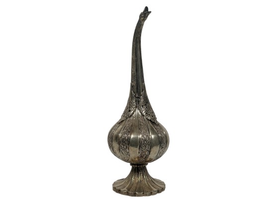 Figural (19th c) Ottoman silver rosewater sprinkler used to honor guests with gooseneck form spout. 10 1/2 inches. Condition: Good. Temp No 8859