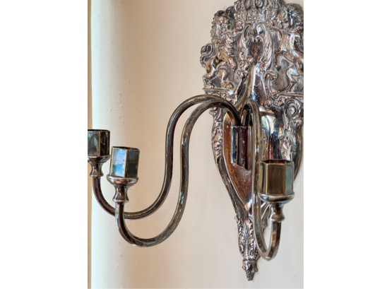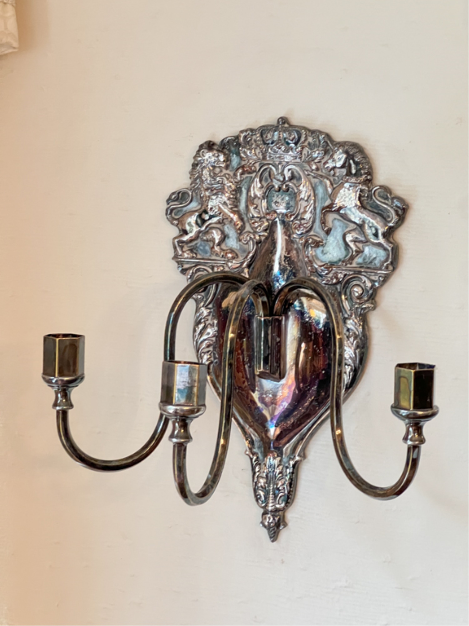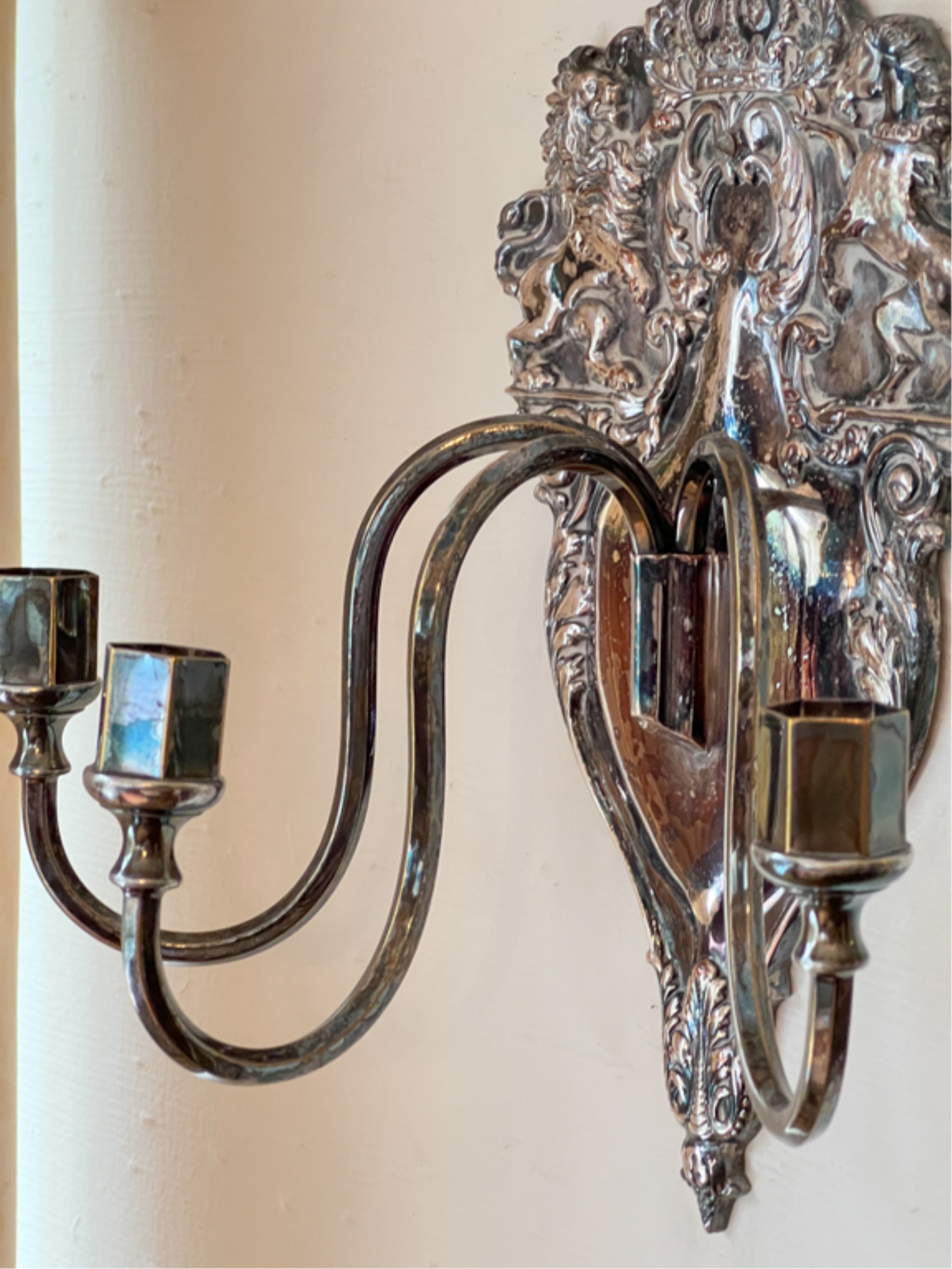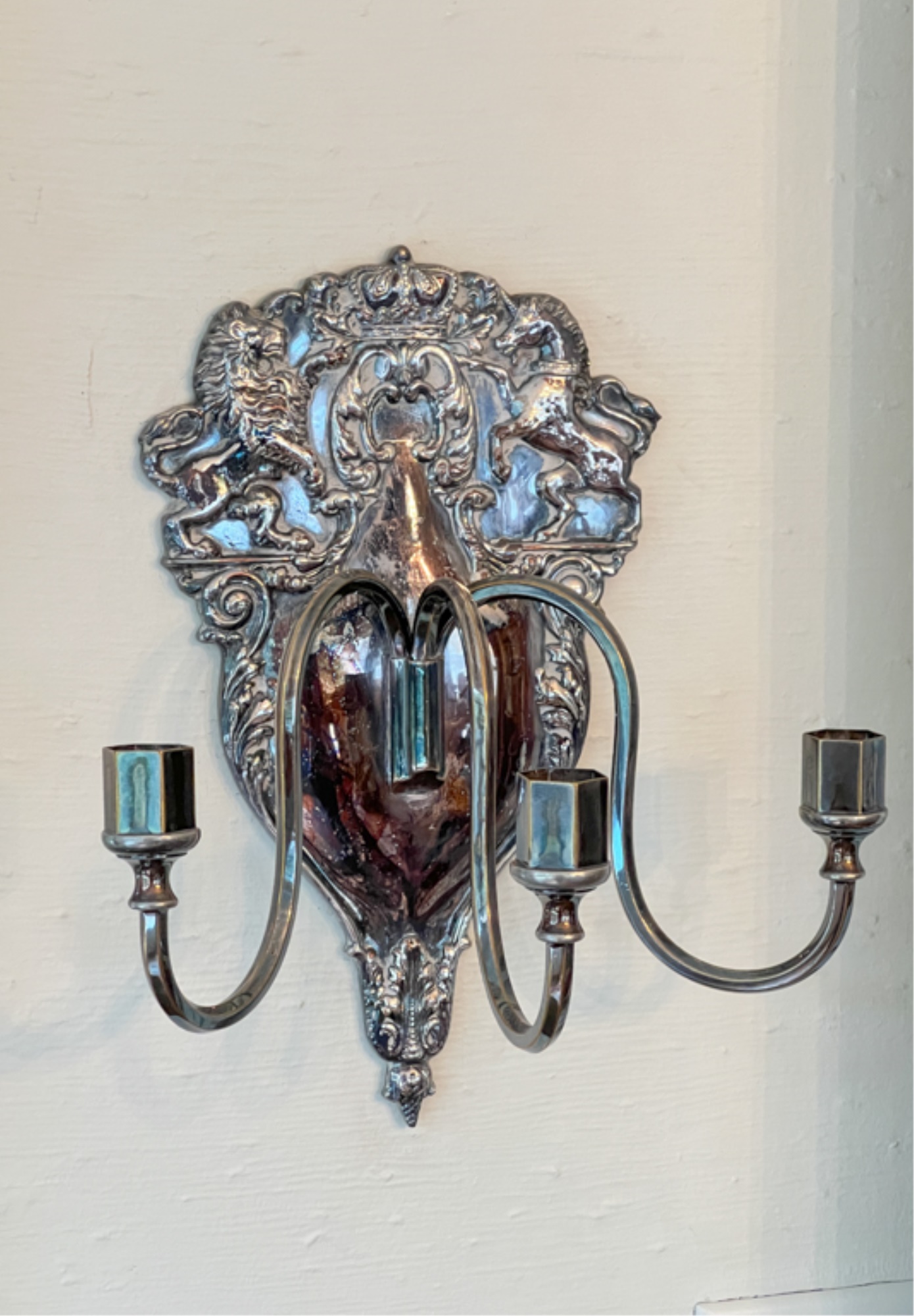 Silver plated with Lion and unicorn. Hallmarked. 12 1/2 x 7 1/2 x 7 1/2 inches.