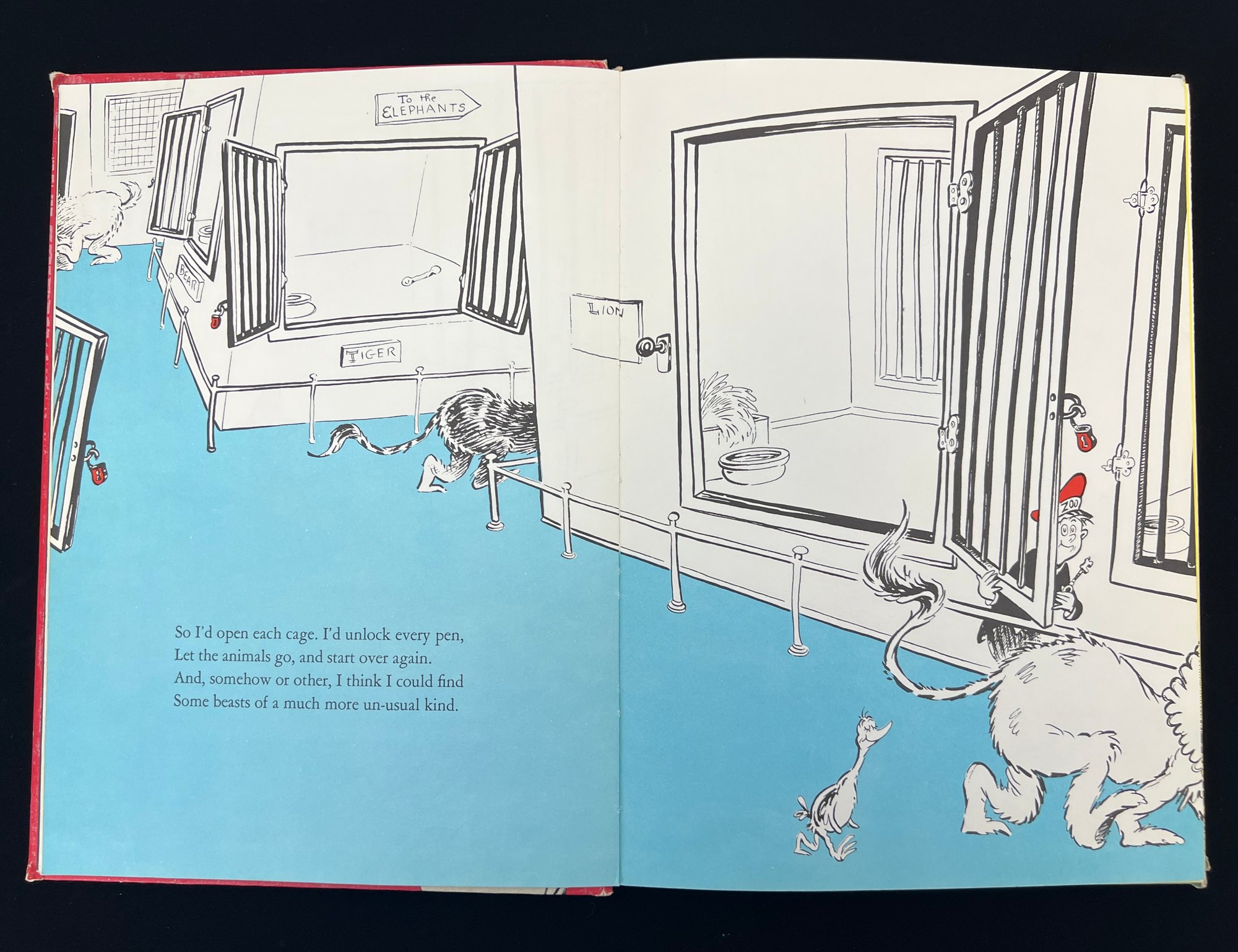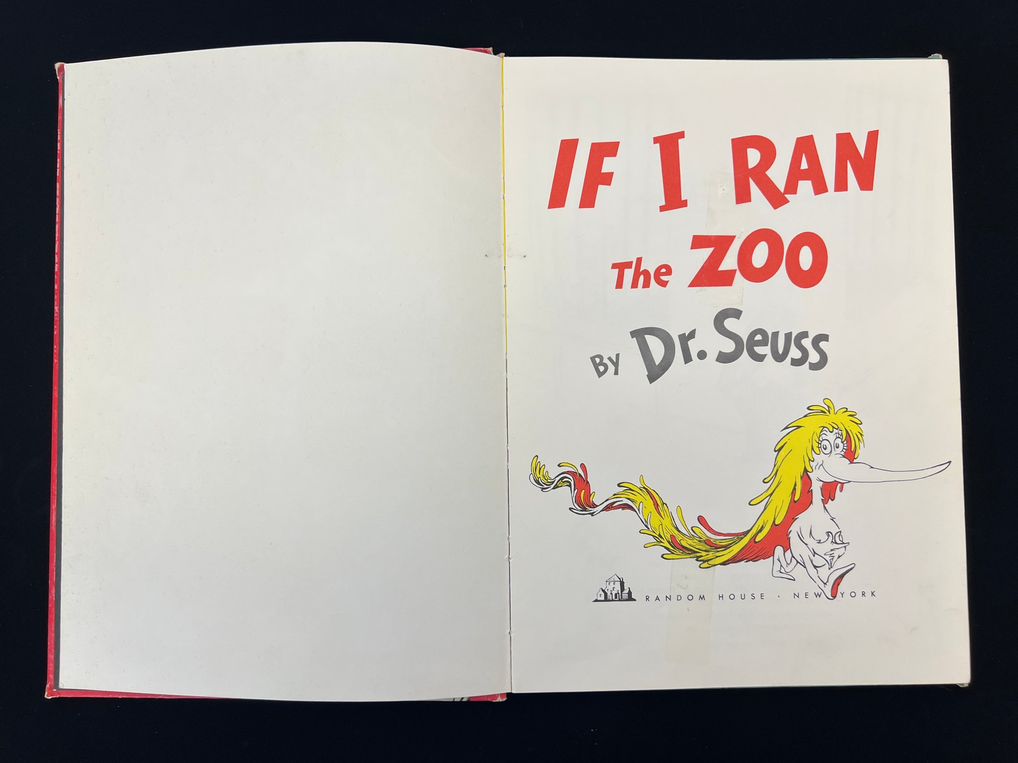 First edition hardcover copy of "If I Ran the Zoo" by Dr. Seuss. 11 1/4 x 8 1/4 inches.