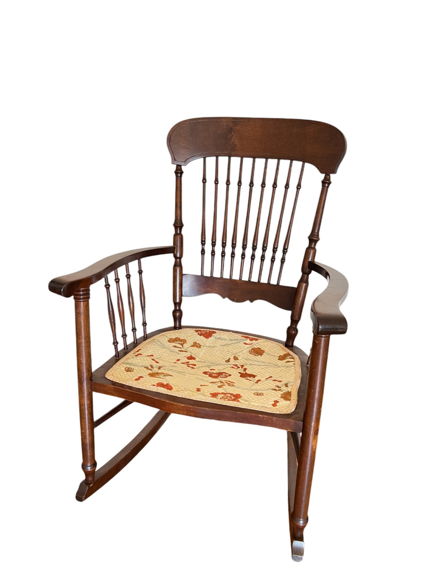 Cloth seat in place of cane seat. Pillow help to support seat. 35 x 24 x 27 inches