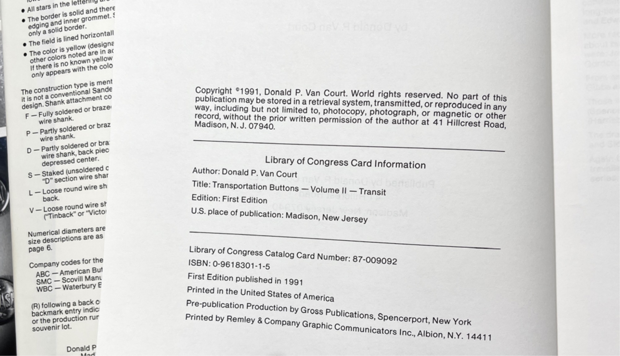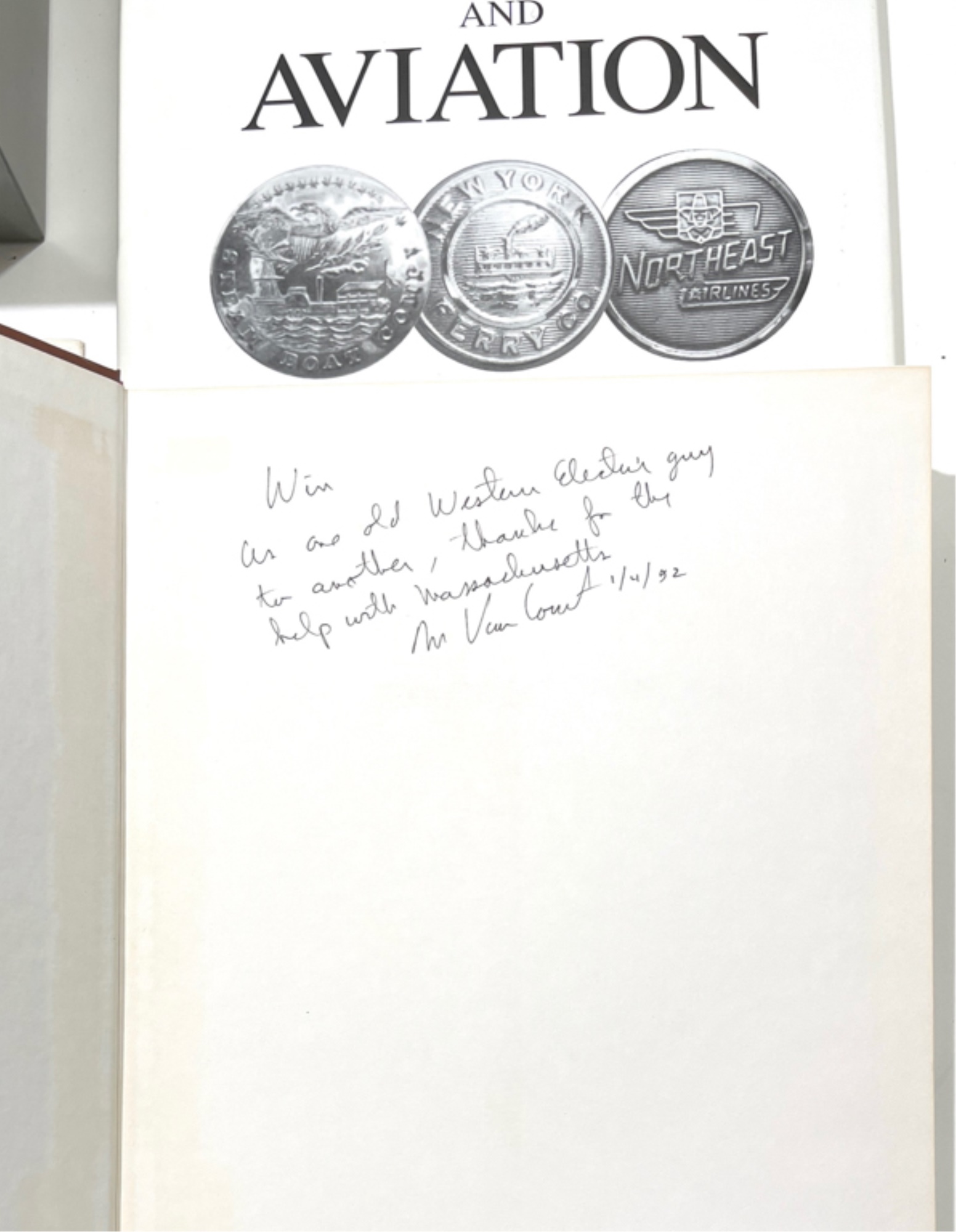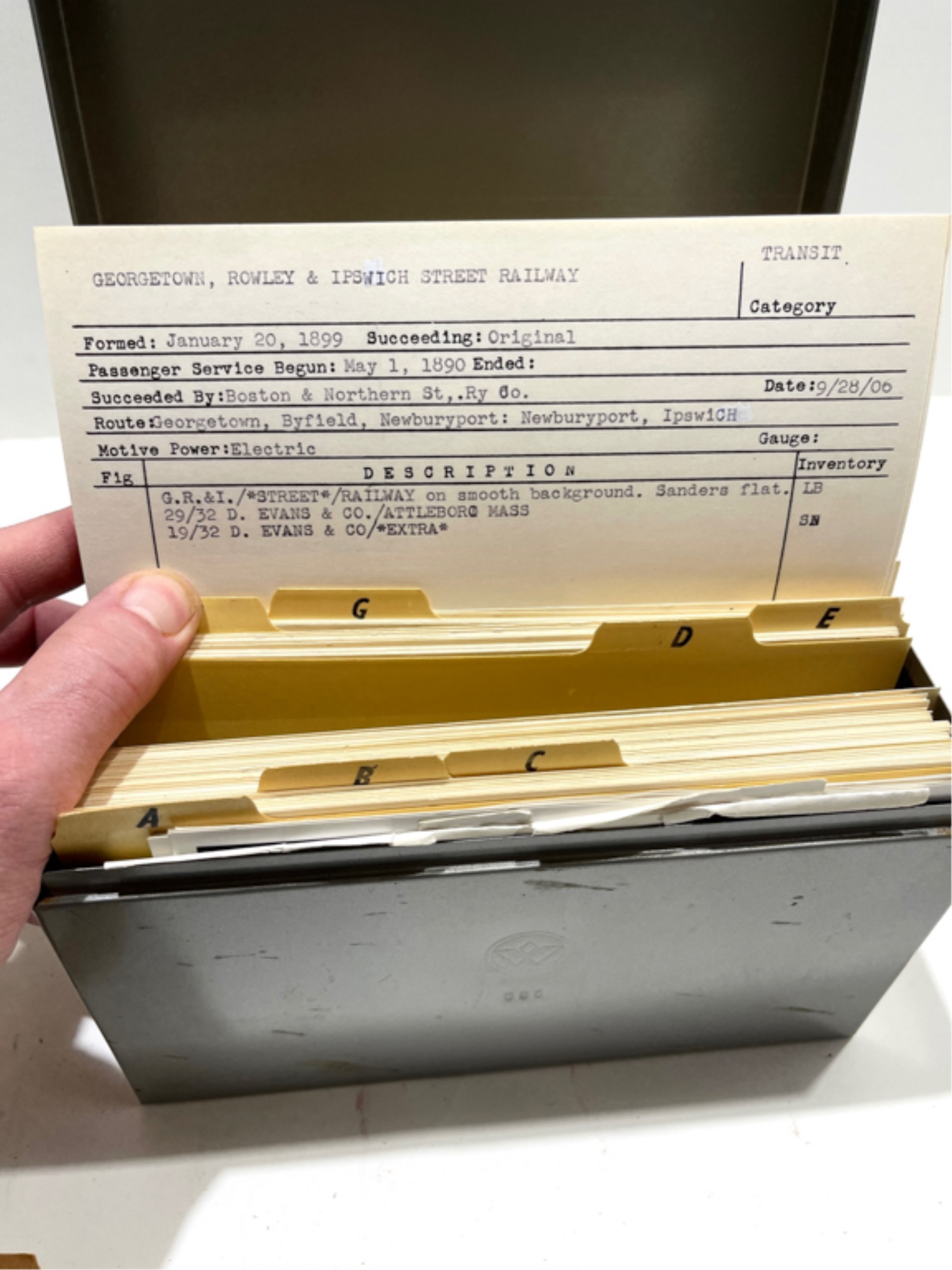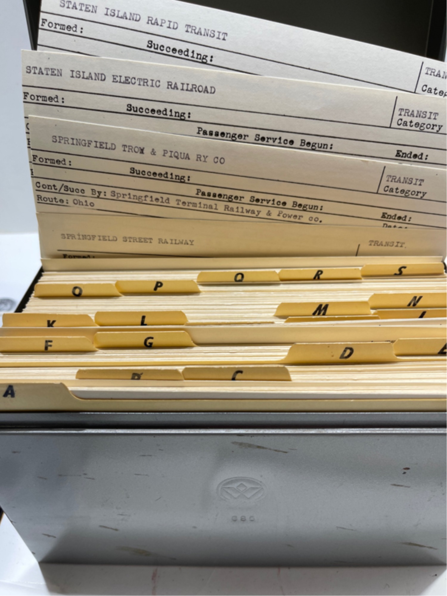 Including (3) volume set by Dan Van Court signed by the author Railroad 1987, Transit 1991 and Maritime and Aviation 1998, index card file on rail lines and other button information. Card file 5 1/2" x 8 1/2" x 6"