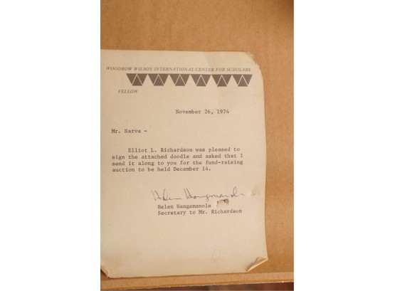 Pencil signed and dated with note verso. An original drawing. Resigned during Watergate scandal. Framed 17 5/8 x 14 5/8 inches.