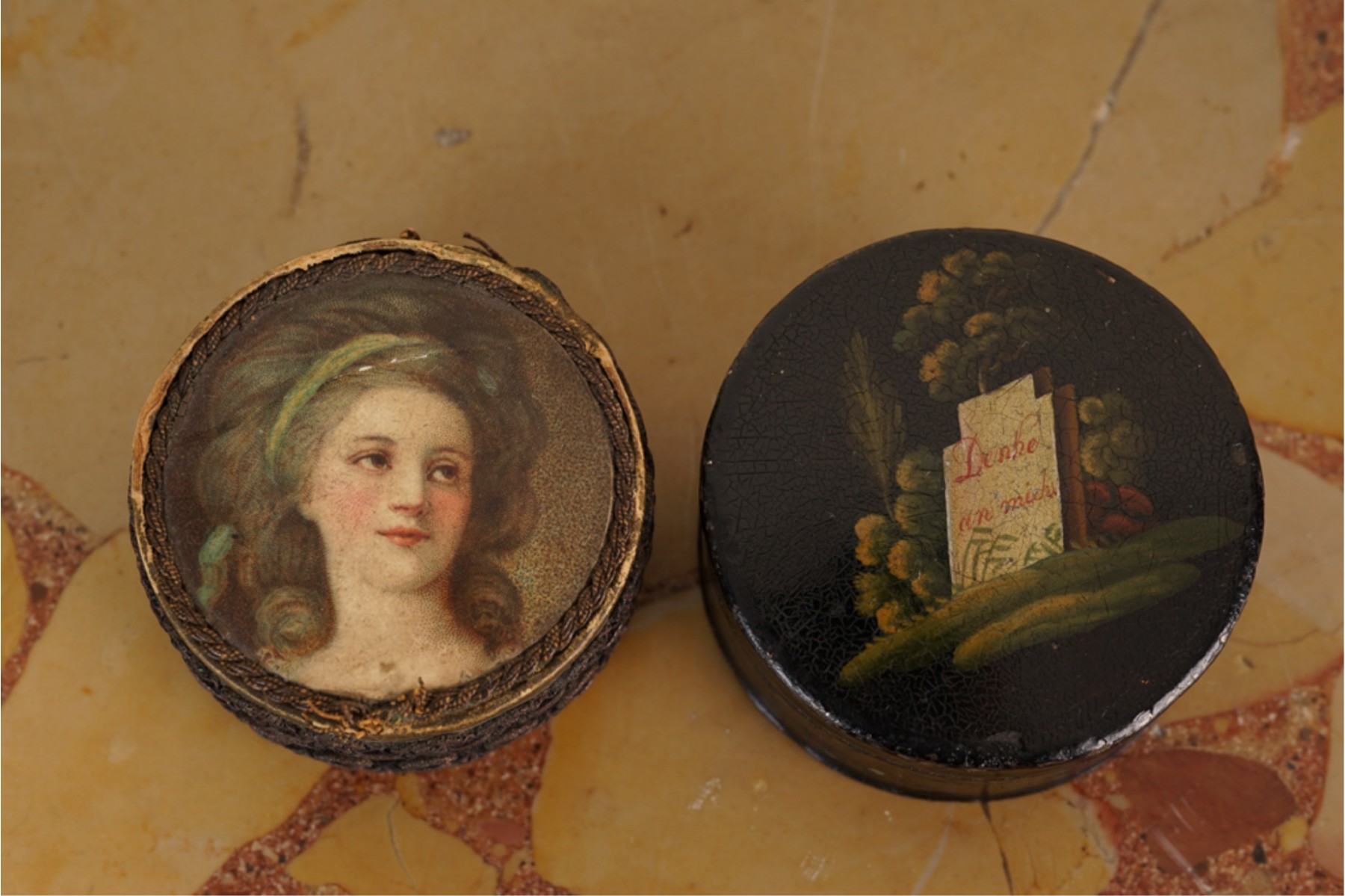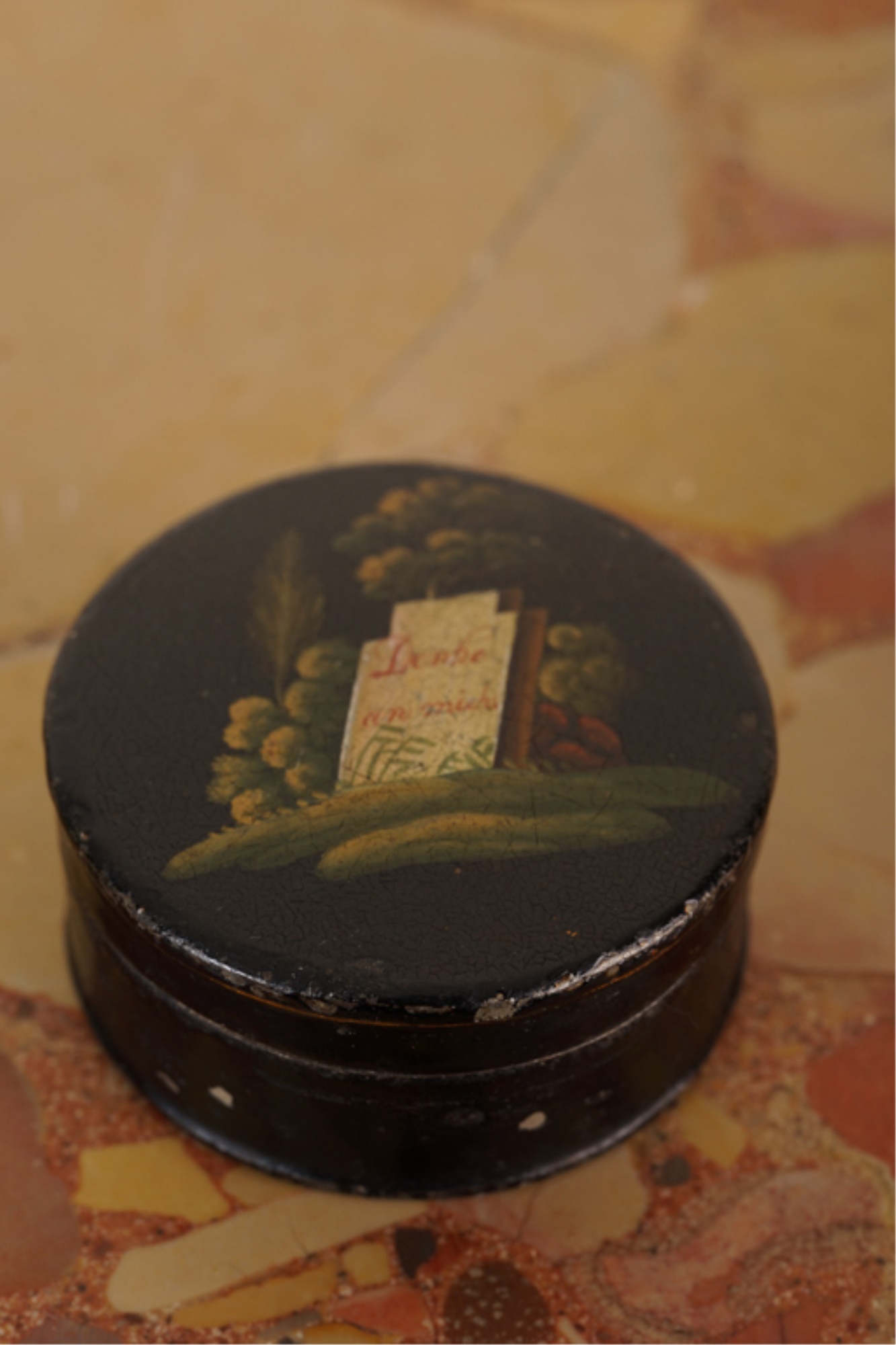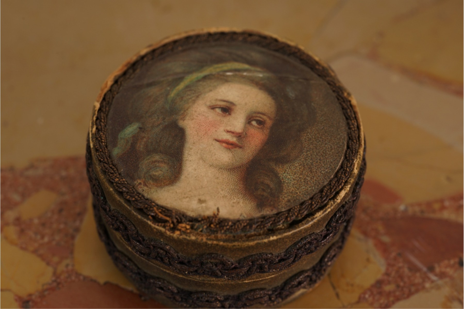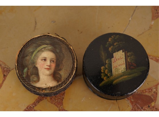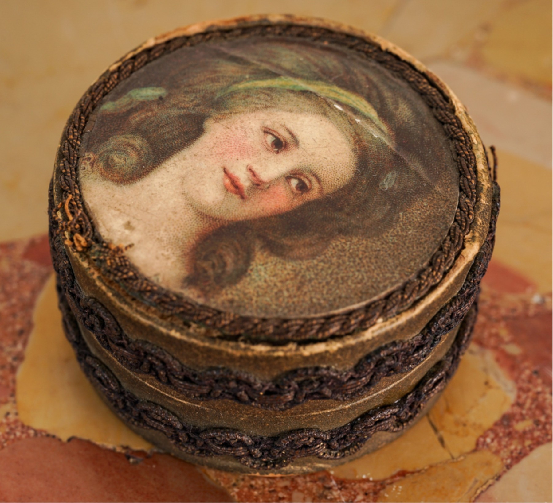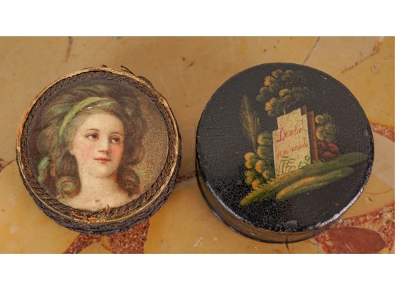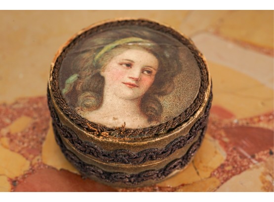 Along with litho portrait box. Tin measures 1 x 2 1/4 inches.