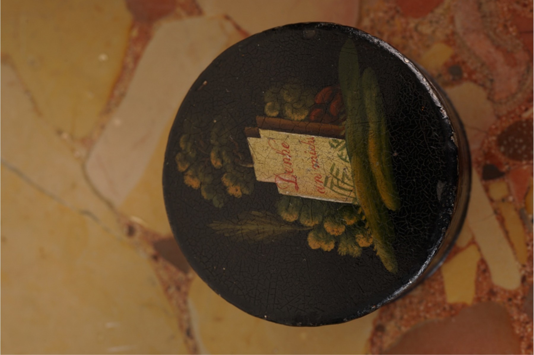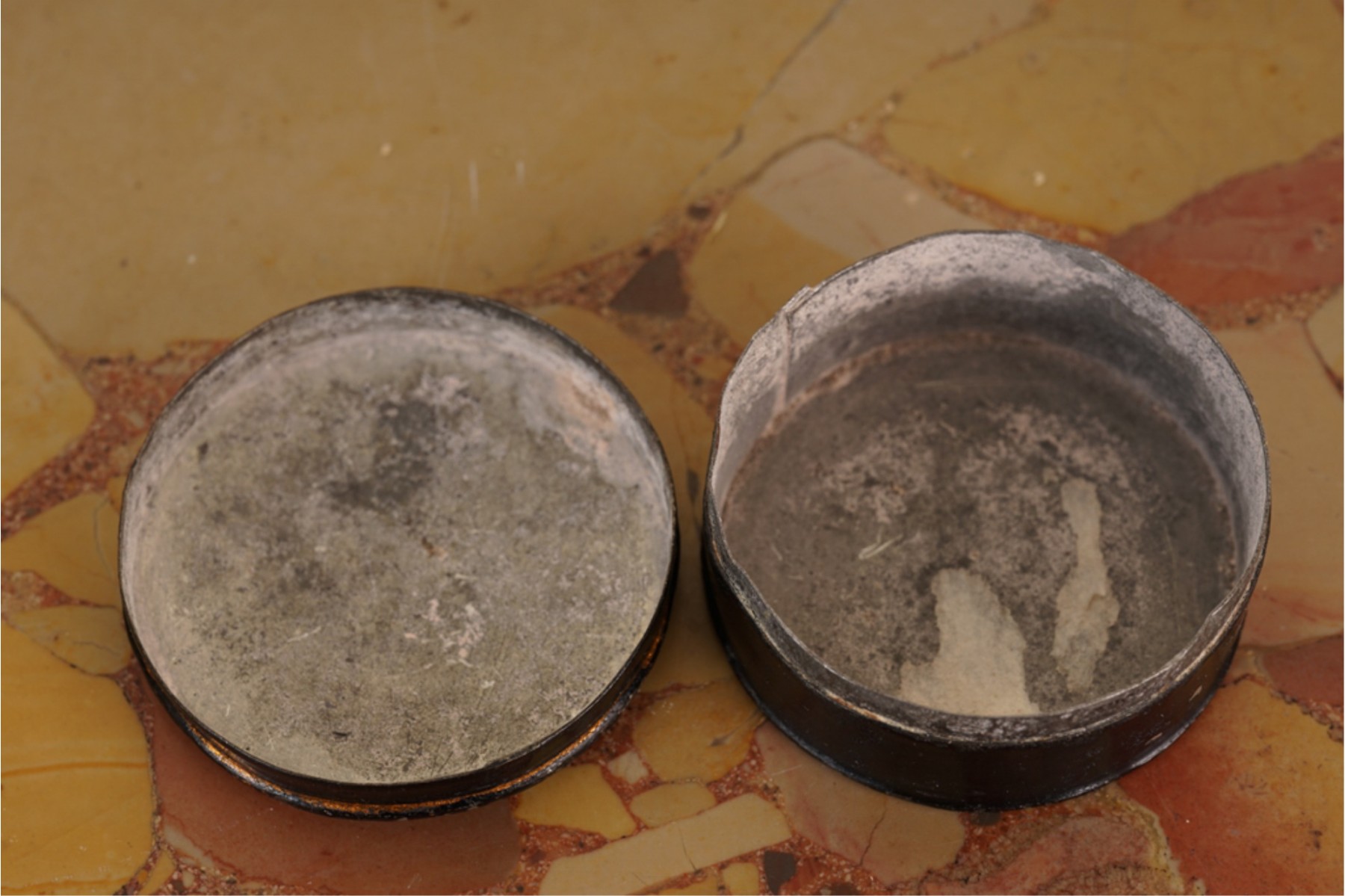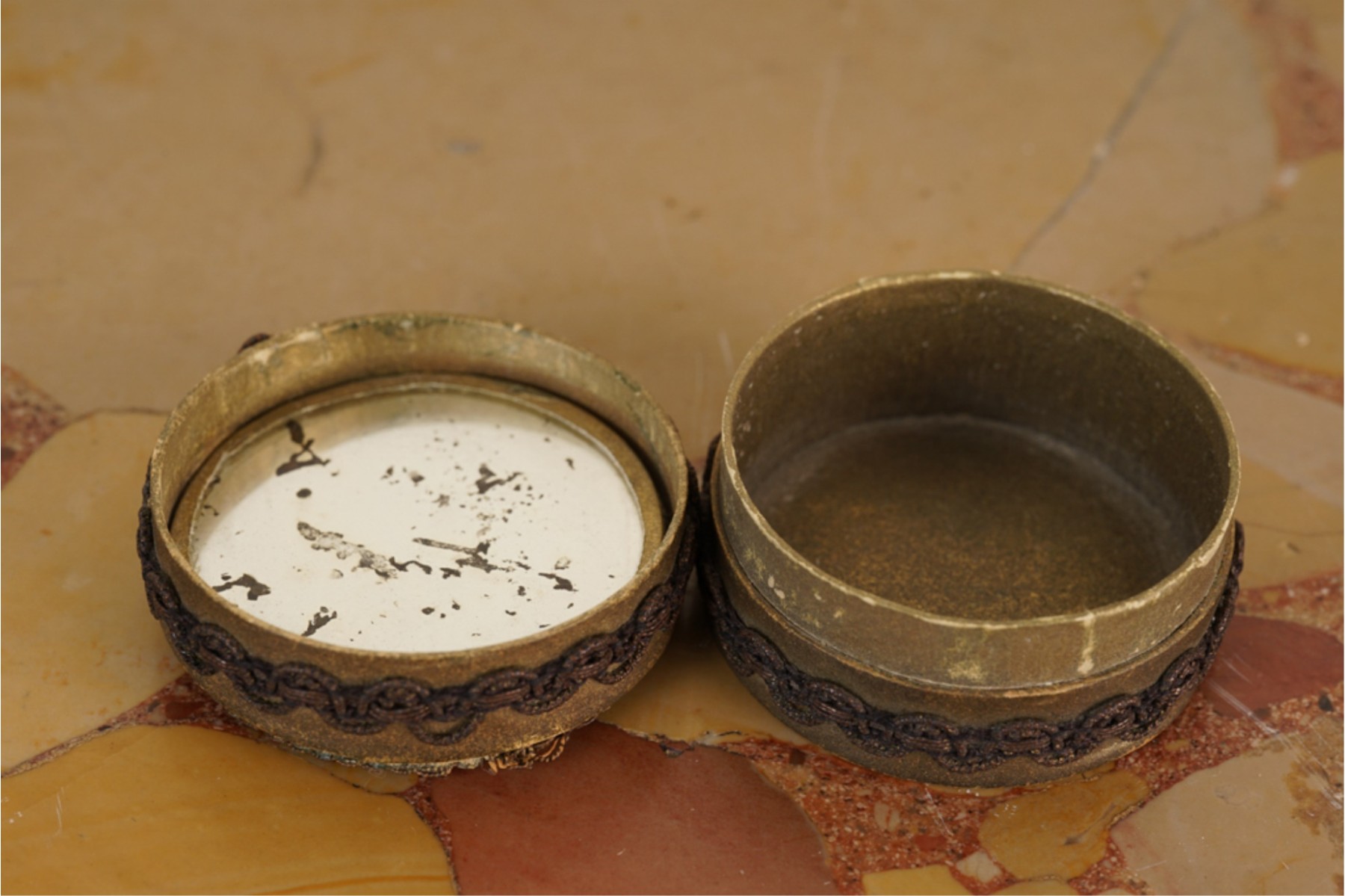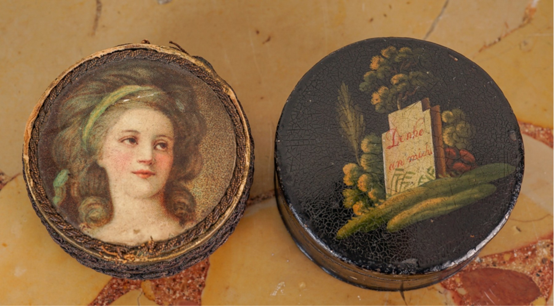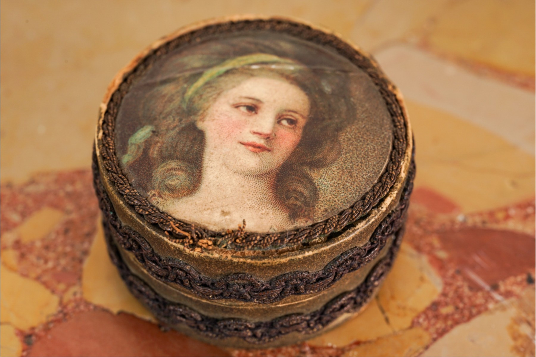 Along with litho portrait box. Tin measures 1 x 2 1/4 inches.