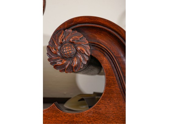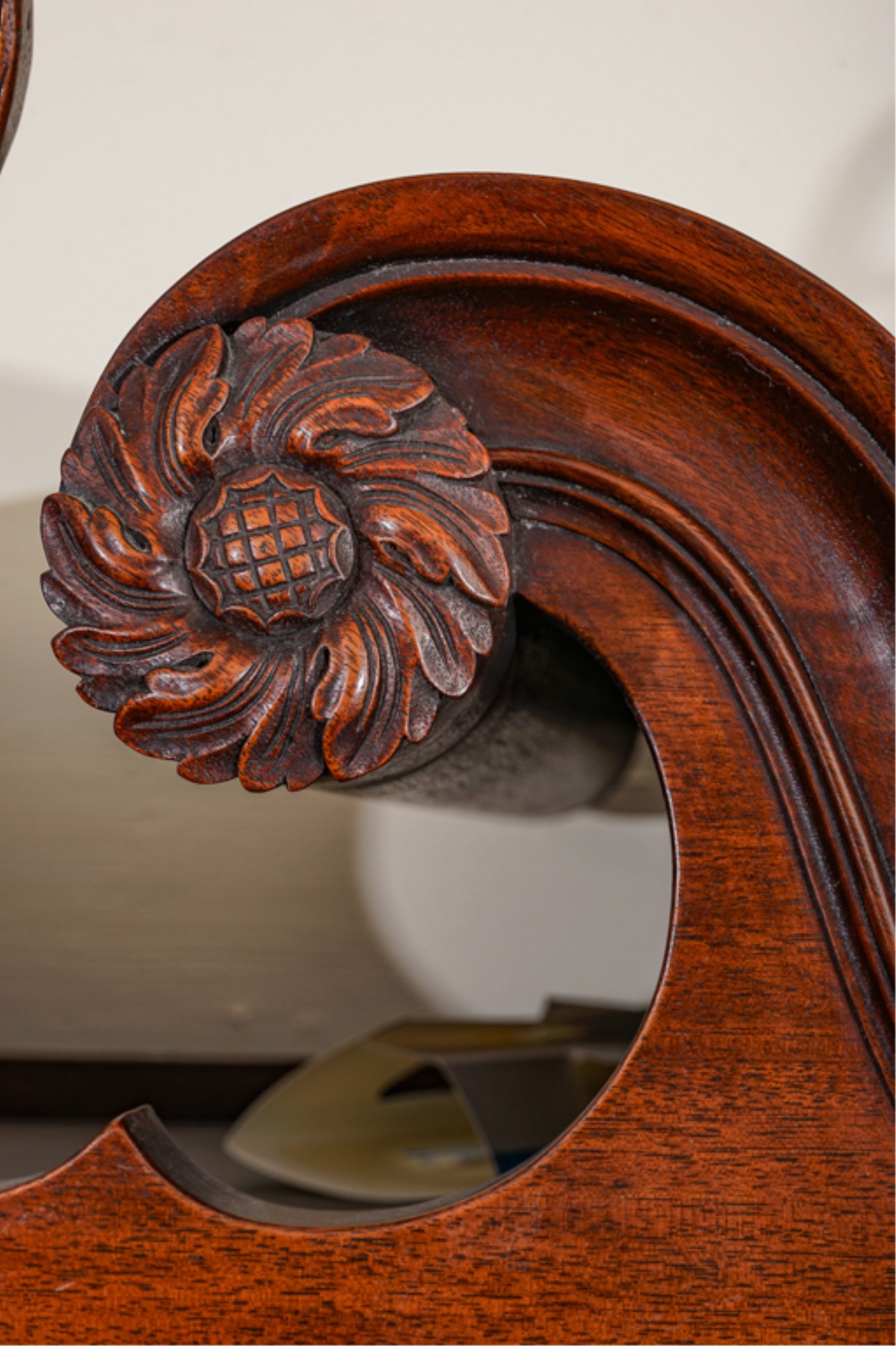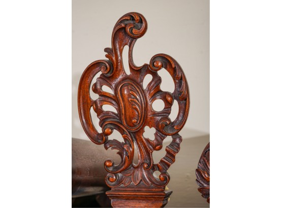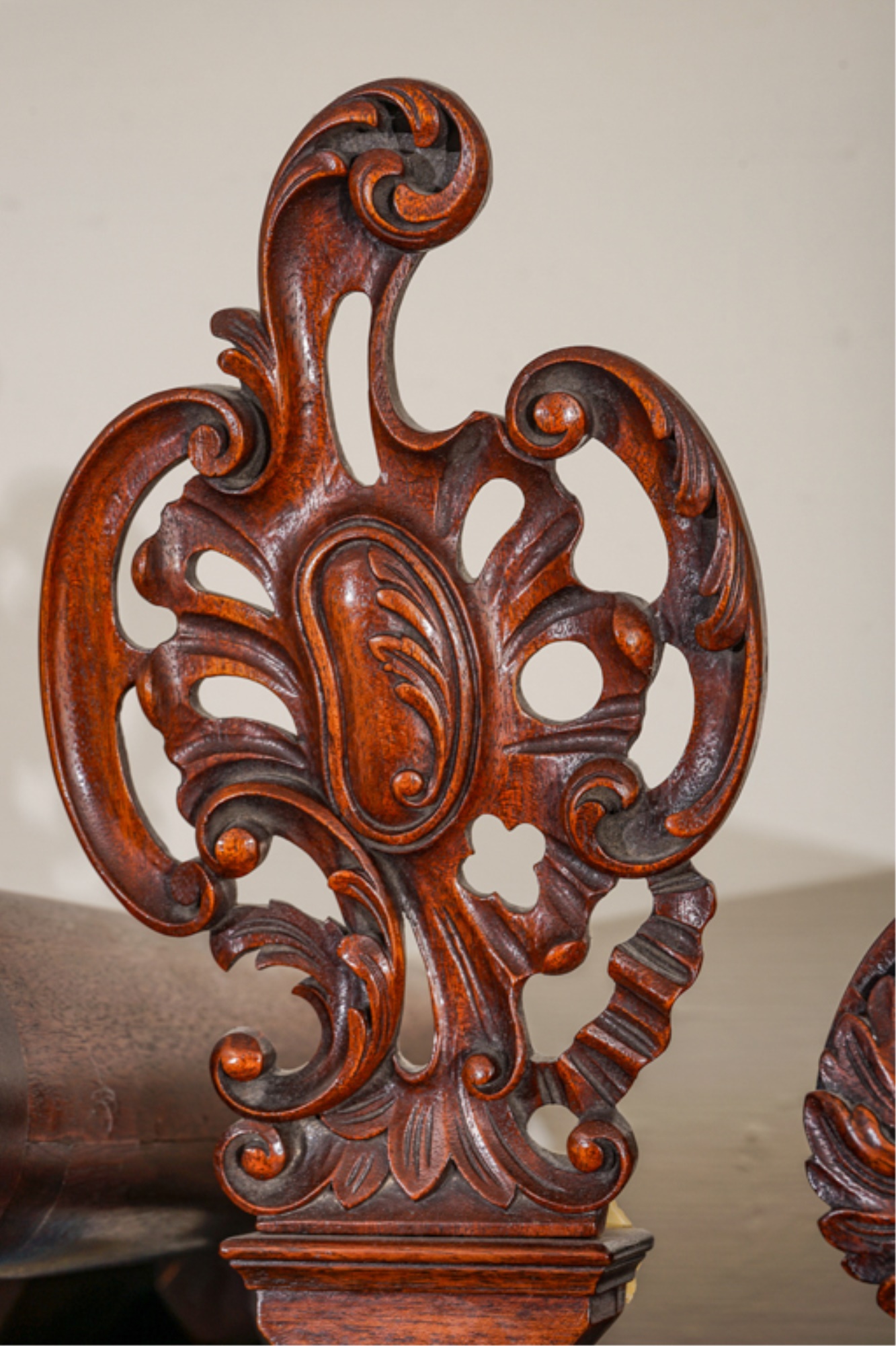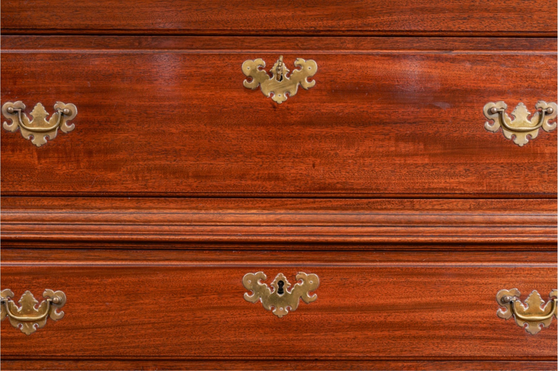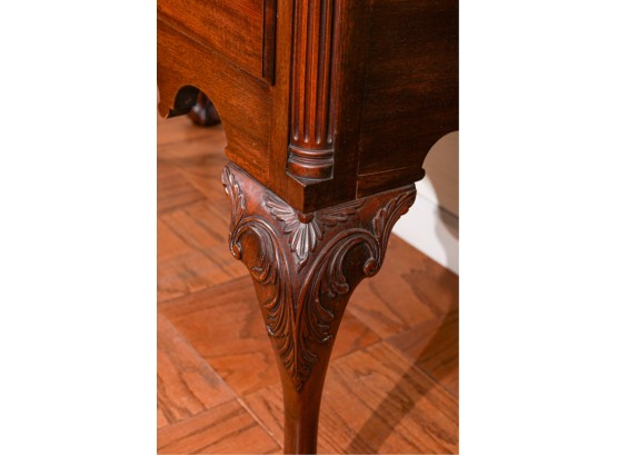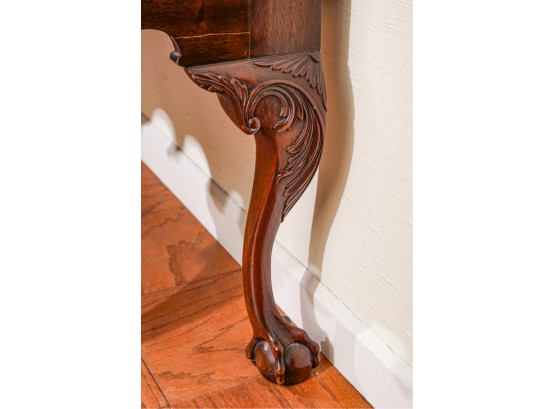 Chippendale style highboys with carved and pierced finial, shell design and brass pulls. On ball and claw feet. 81 x 41 1/2 x 20 inches.