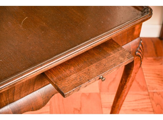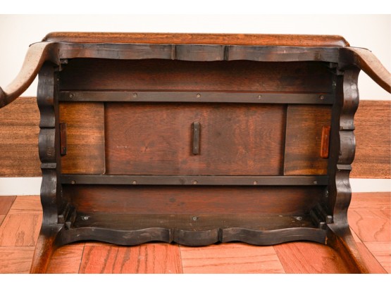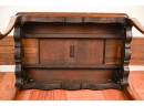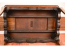 With dished top and (2) pull out shelves. 27 x 29 x 20 inches.