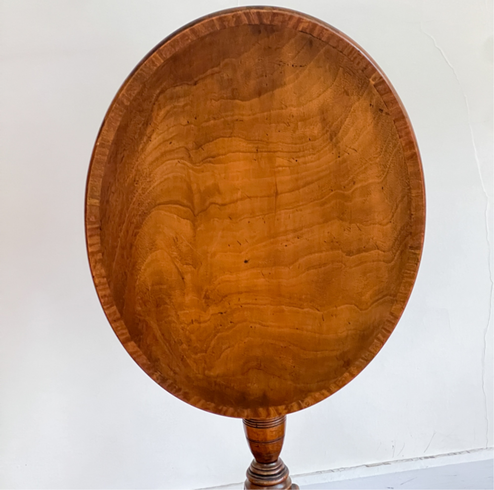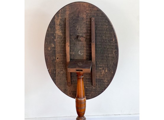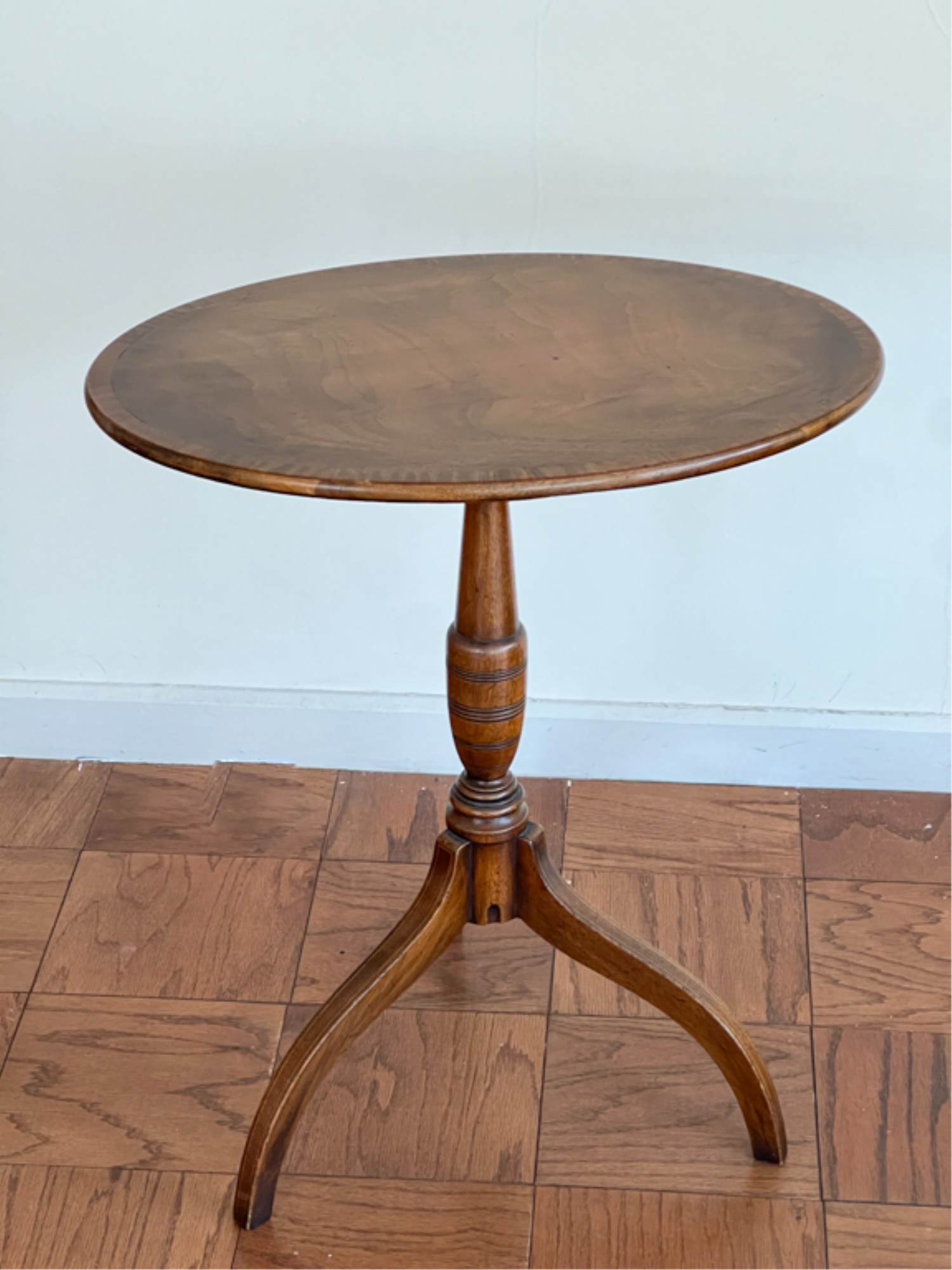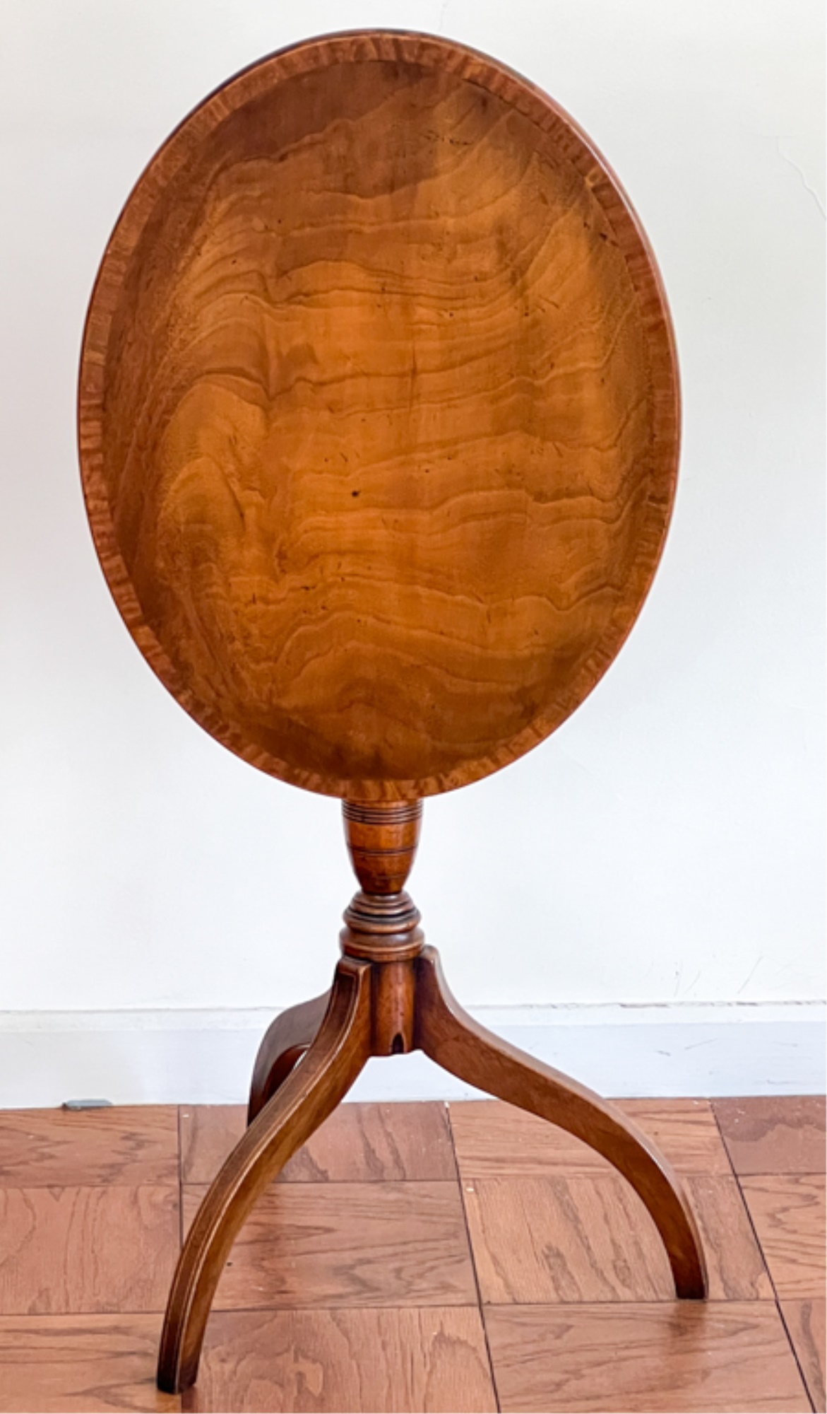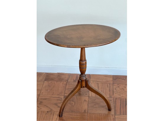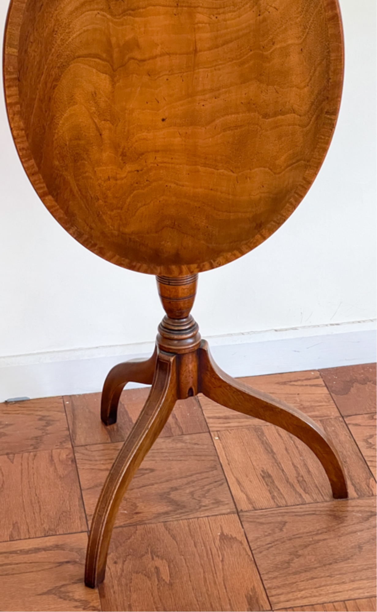 With string inlay and turned center column. 26 (38 1/2) x 18 x 23 inches.