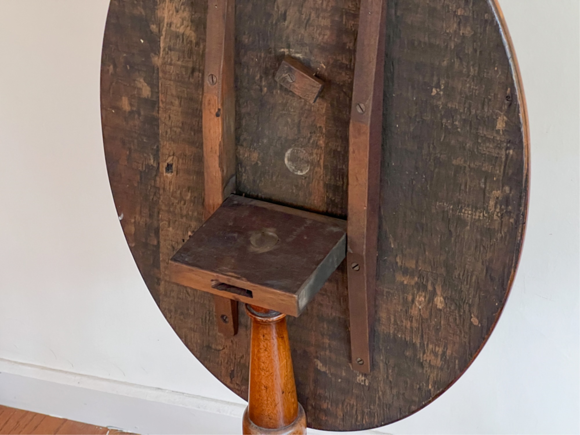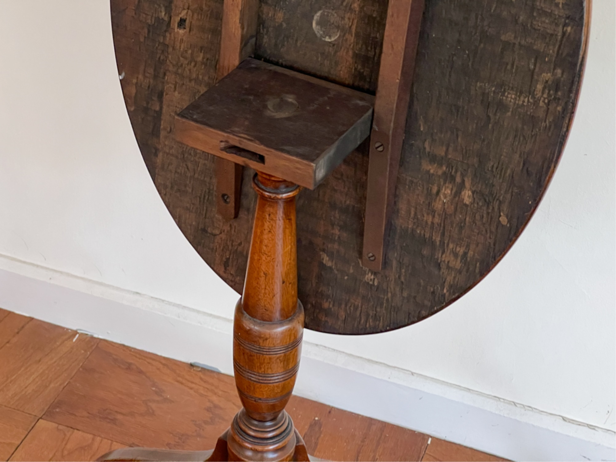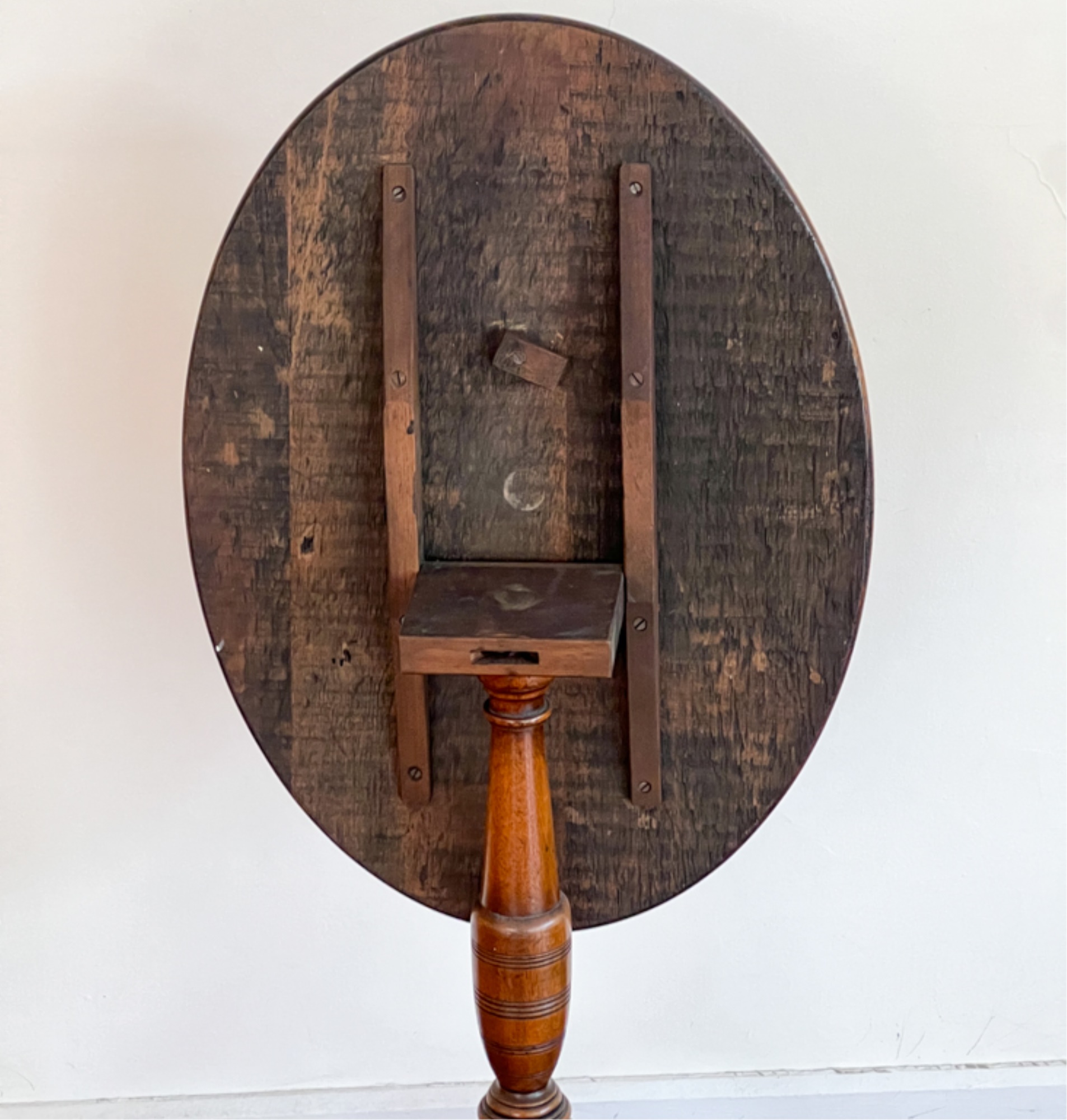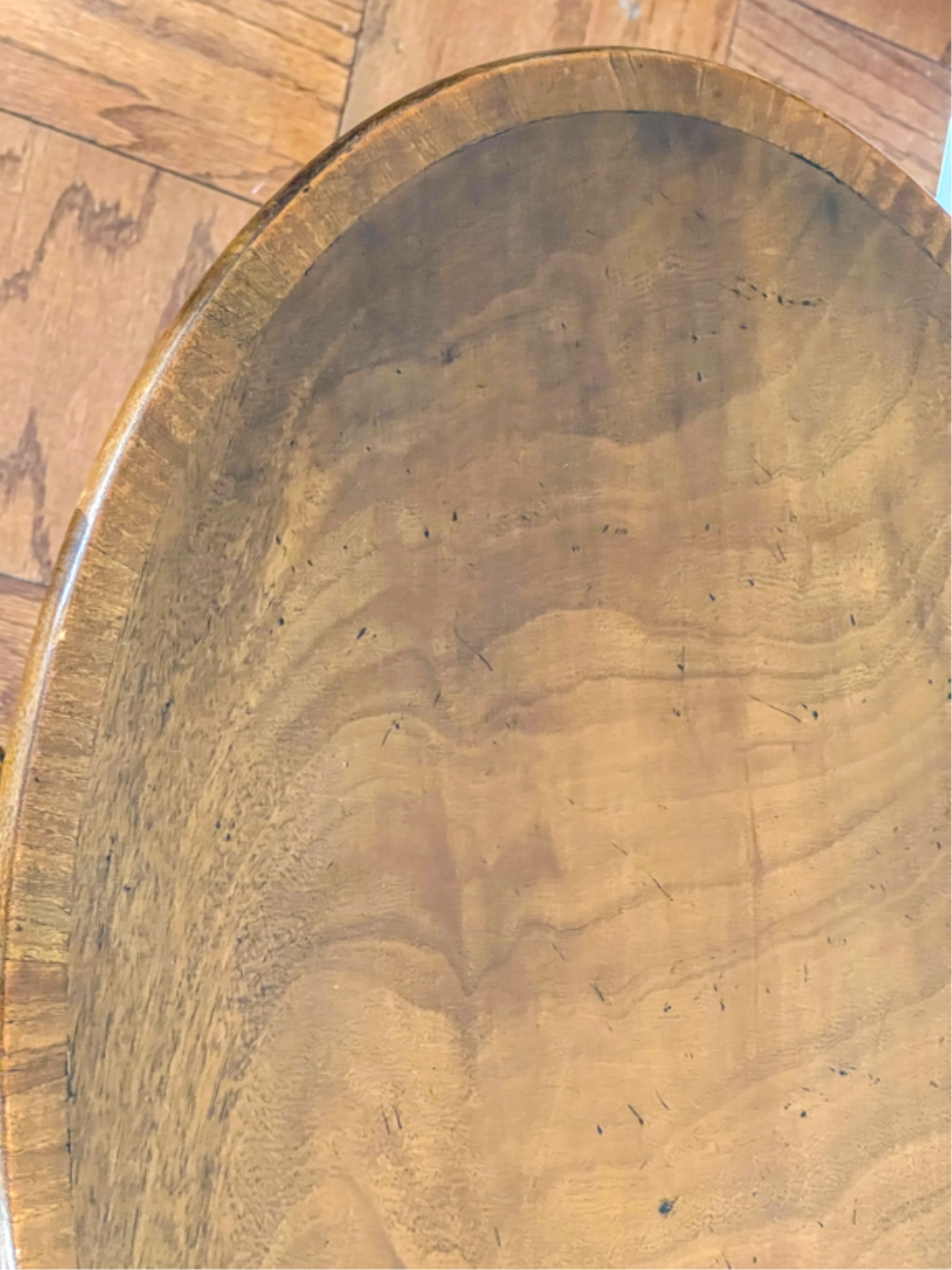 With string inlay and turned center column. 26 (38 1/2) x 18 x 23 inches.