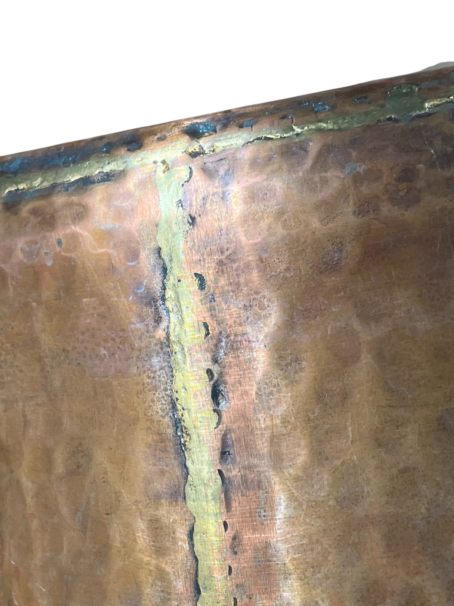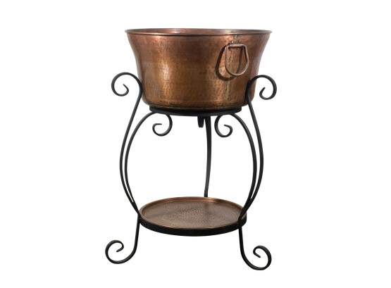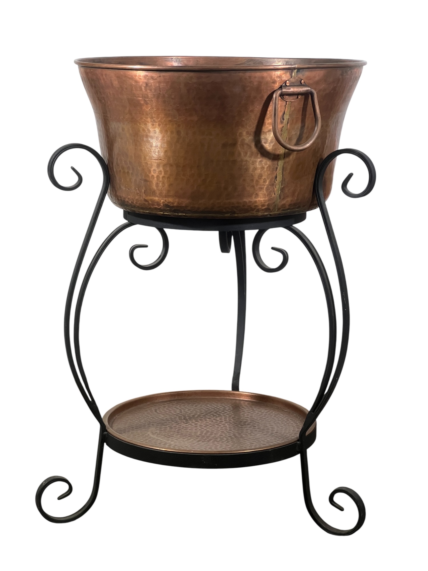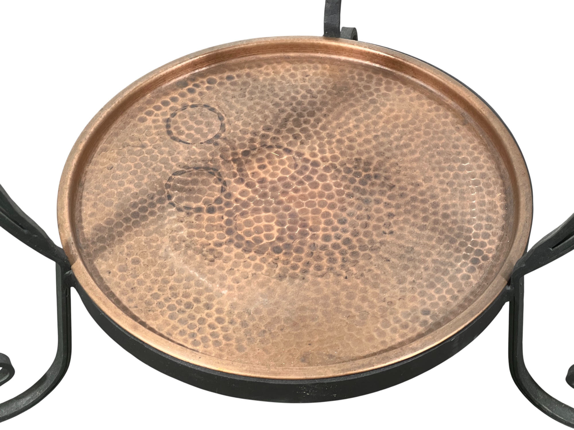 With lower hand hammered copper tray. A nice modern accent to a rustic home. 33 x 20 inches. Condition: Good. Temp No 8743