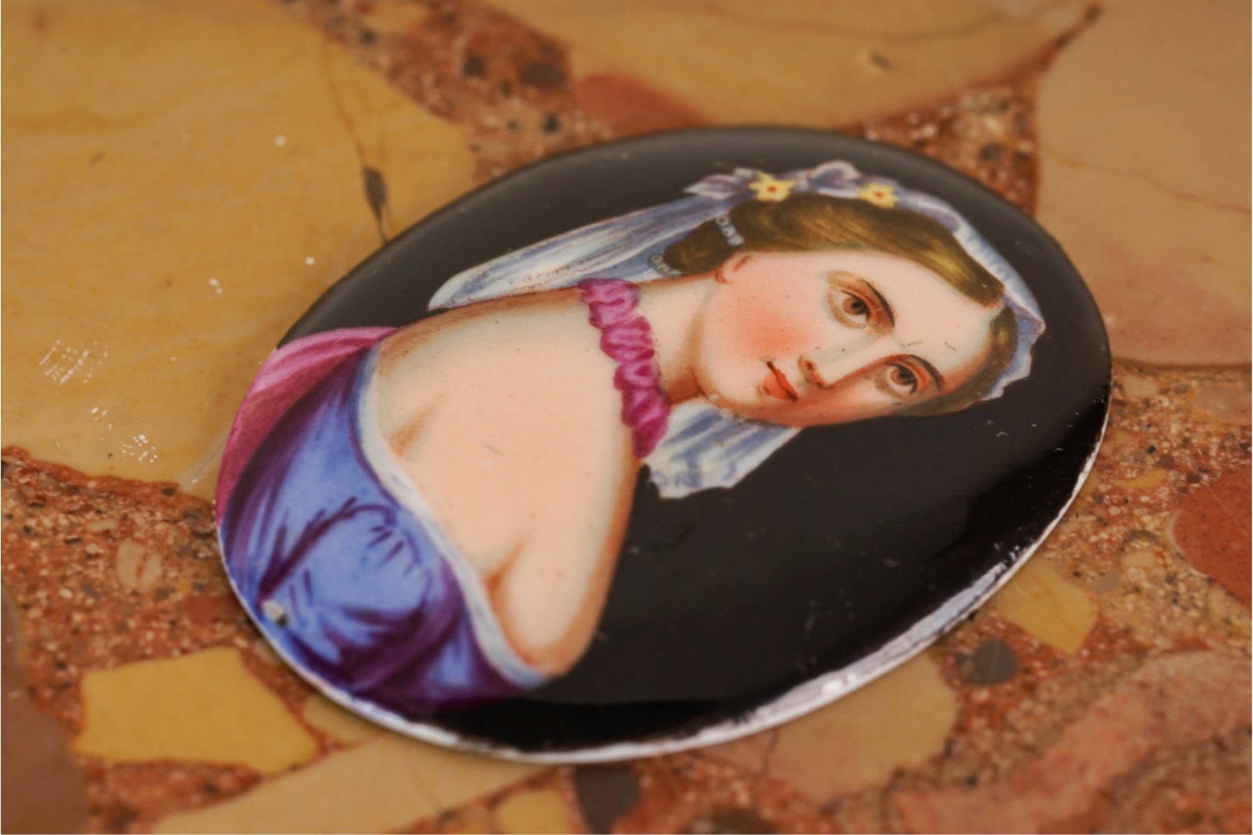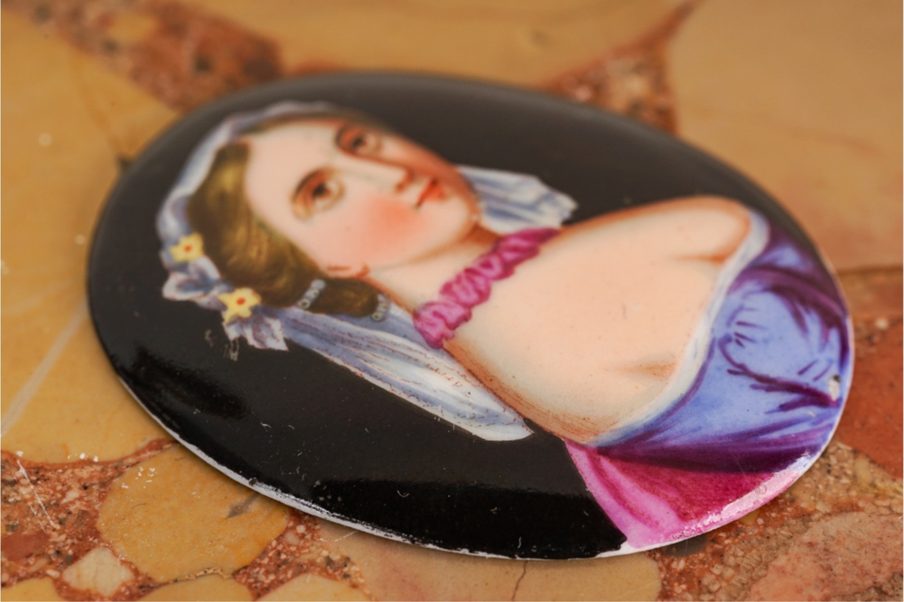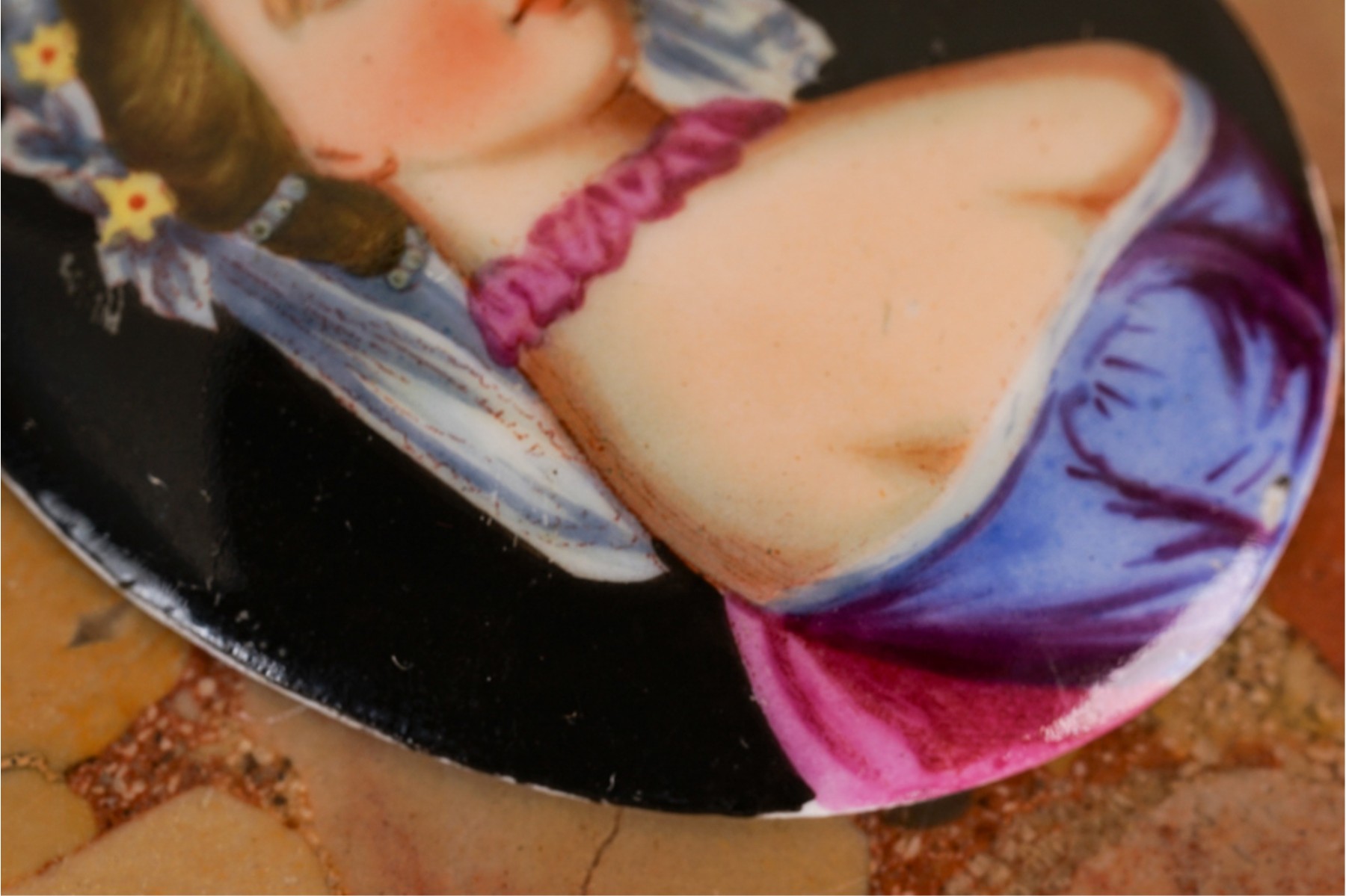 On porcelain. "Refined Lady" . 2 x 1 1/2 inches.