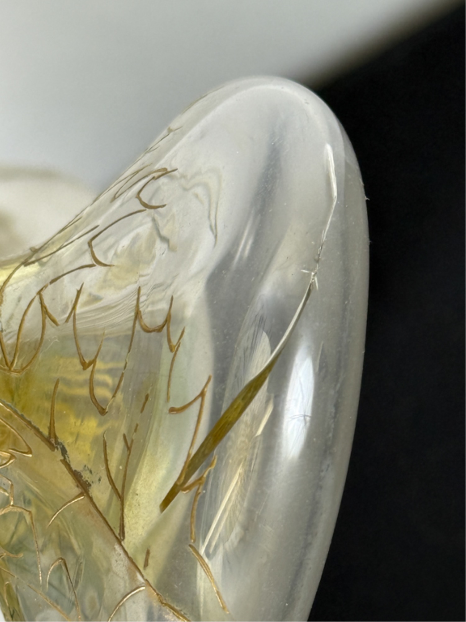 Notes: Non-displaced crack to vase, wear to paint on plate.