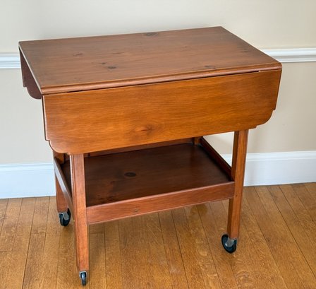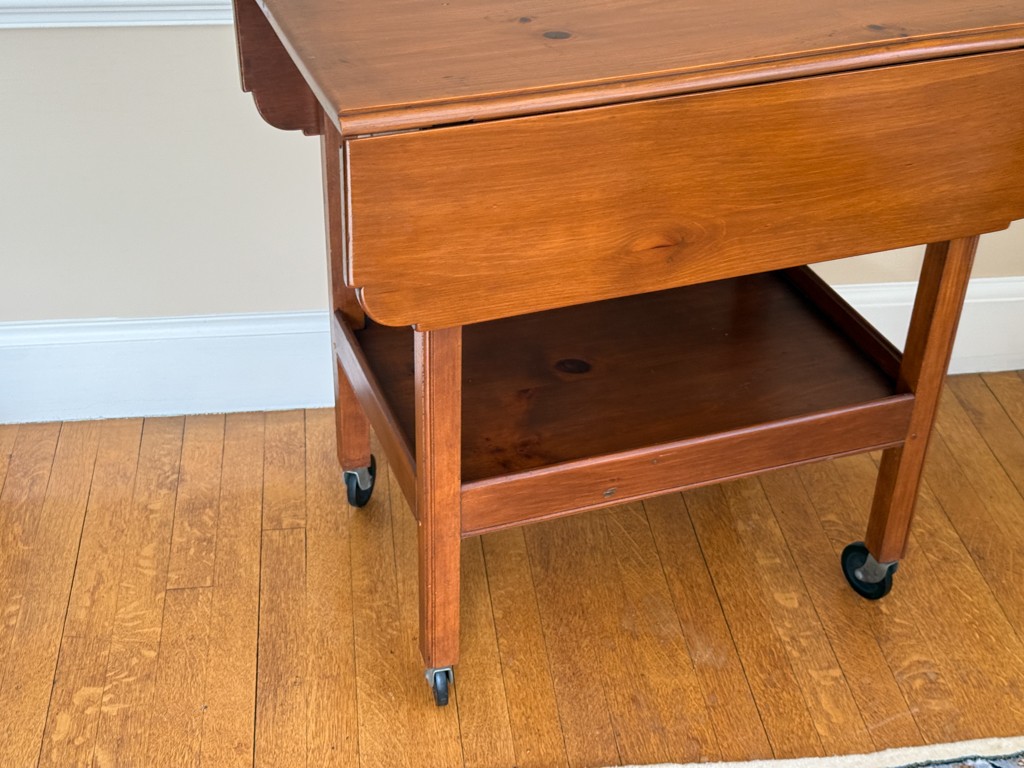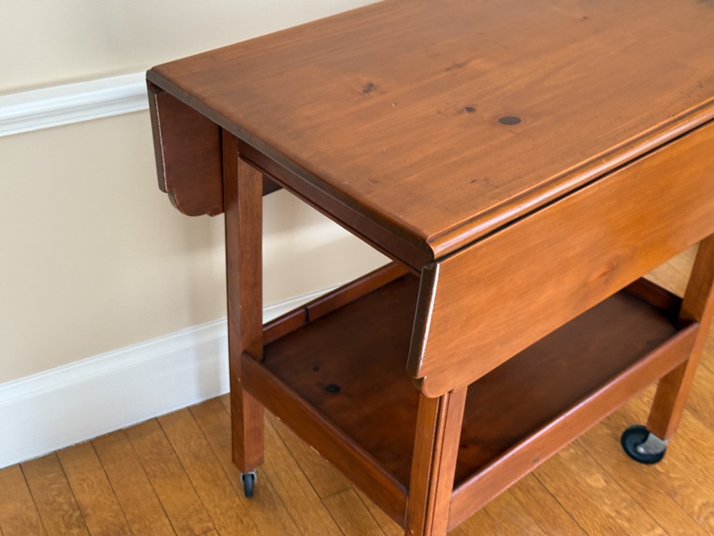 (2) drop leaves, lower shelf. 29 x 18 x 30 inches.