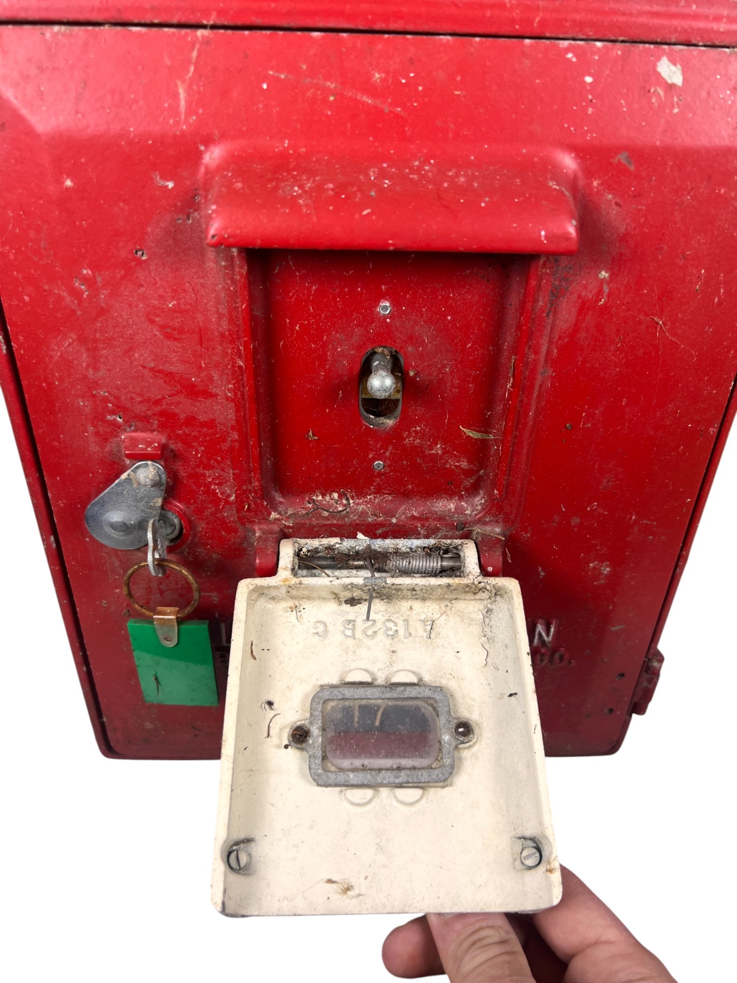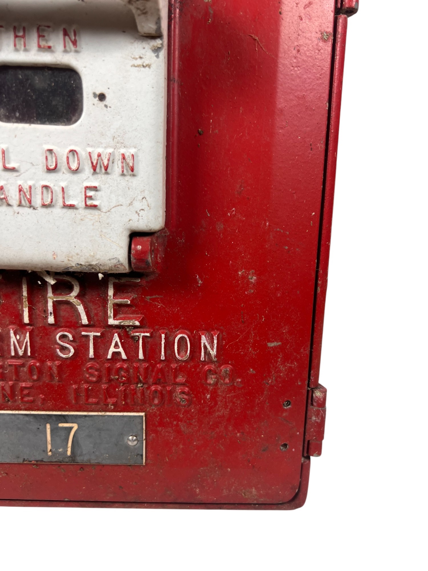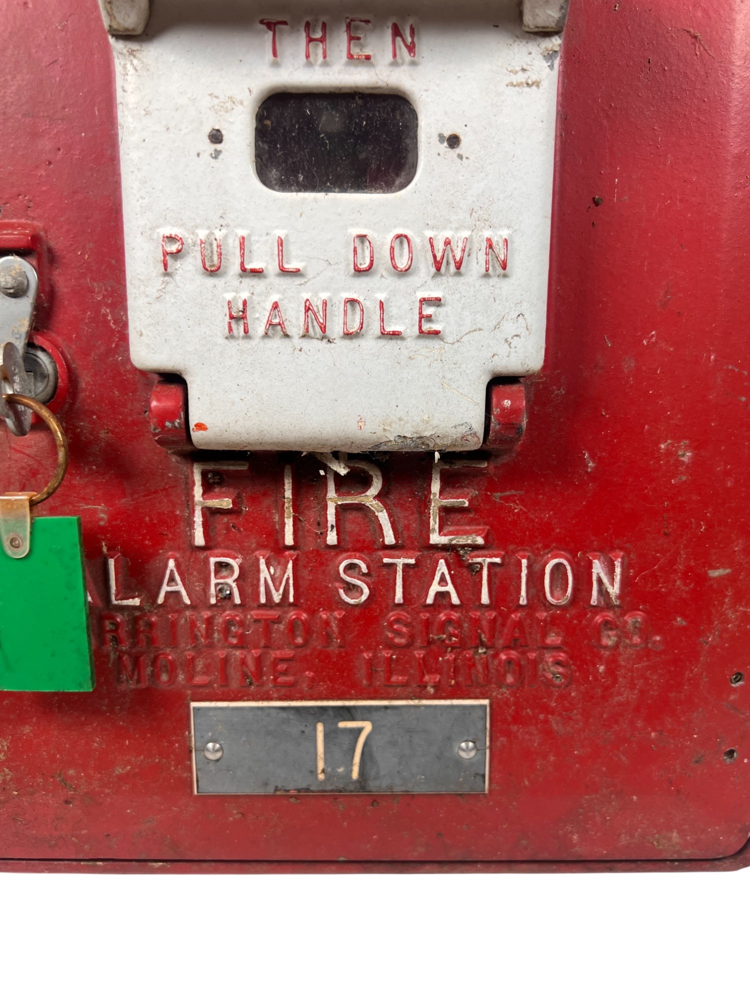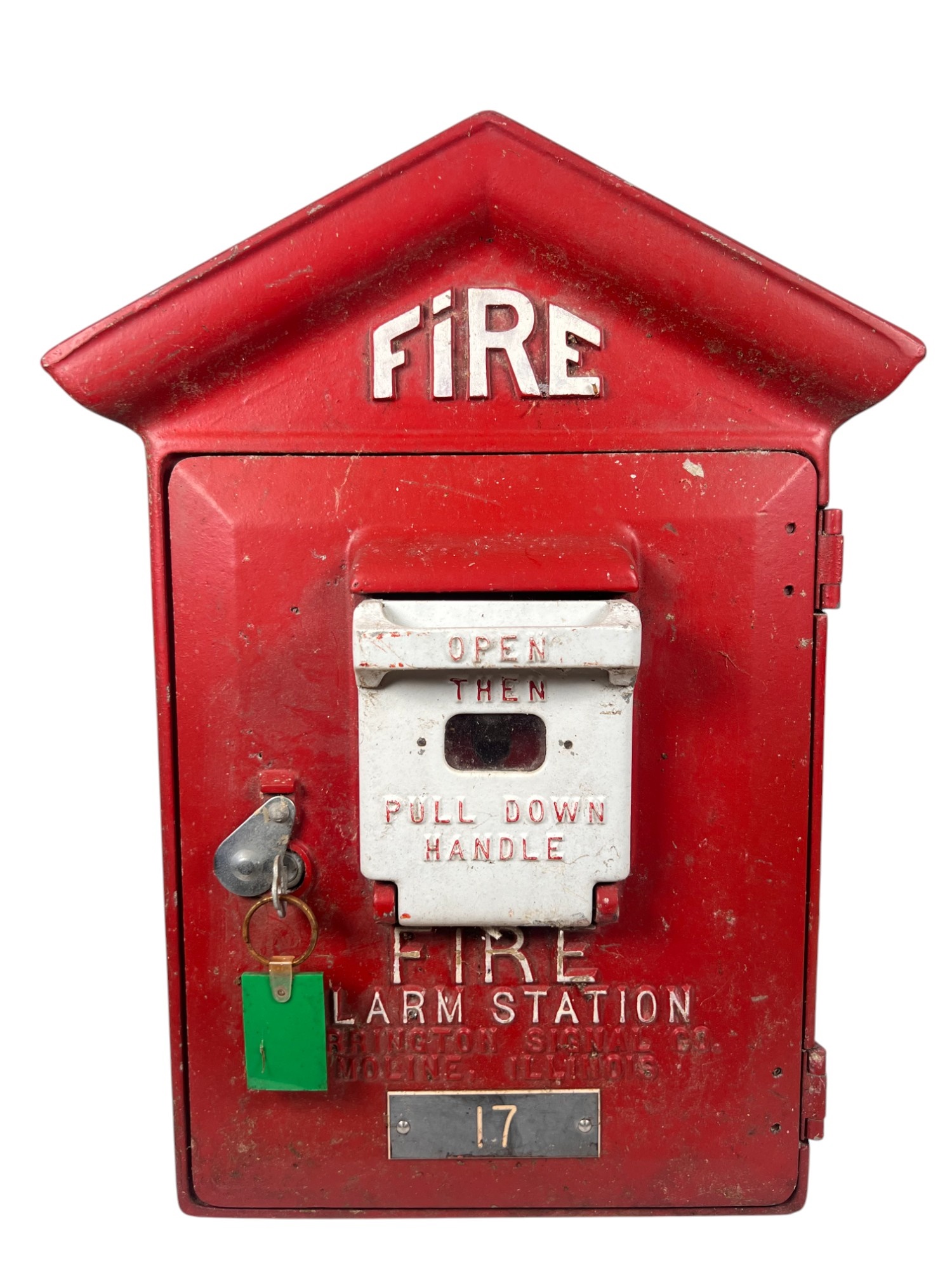 Manufactured in Moline, IL. 17 1/2" x 12 3/4" x 6 1/4" Condition: Wear to surface. Key present but lock may need adjustment to open properly