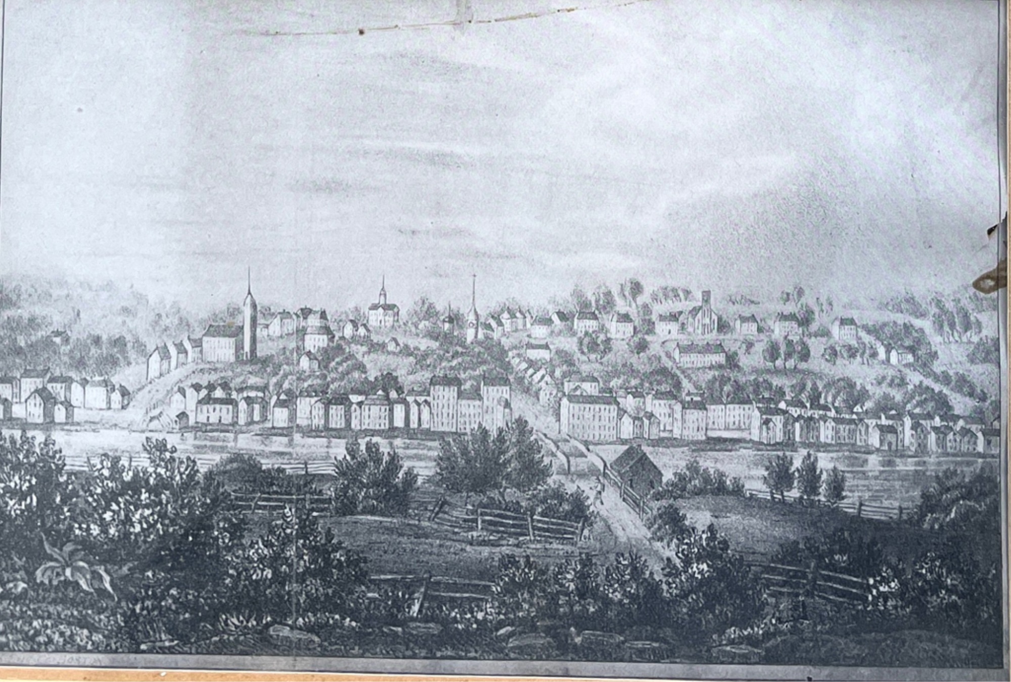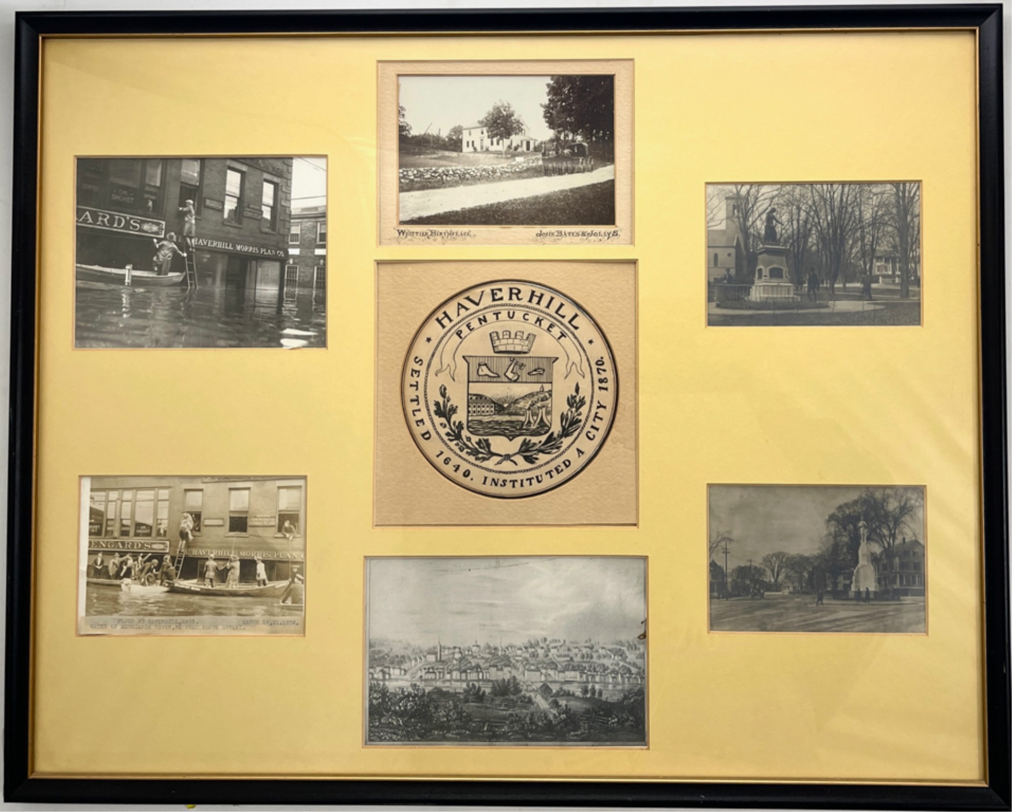 With (5) original vintage photos and small print copy of city. Wooden frame 23 1/4" x 29 1/4"