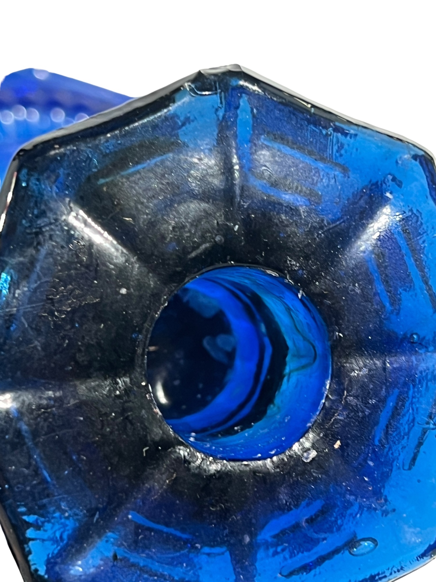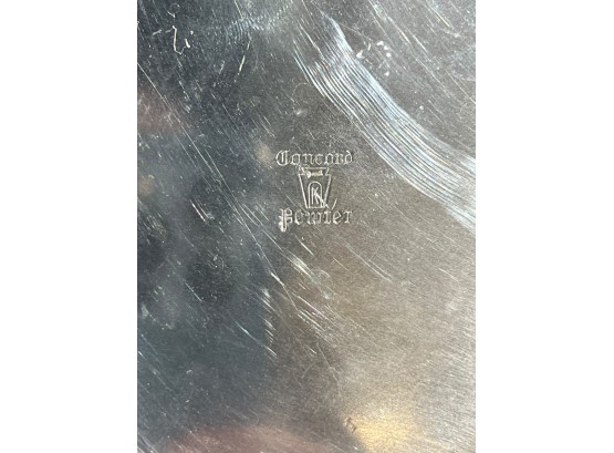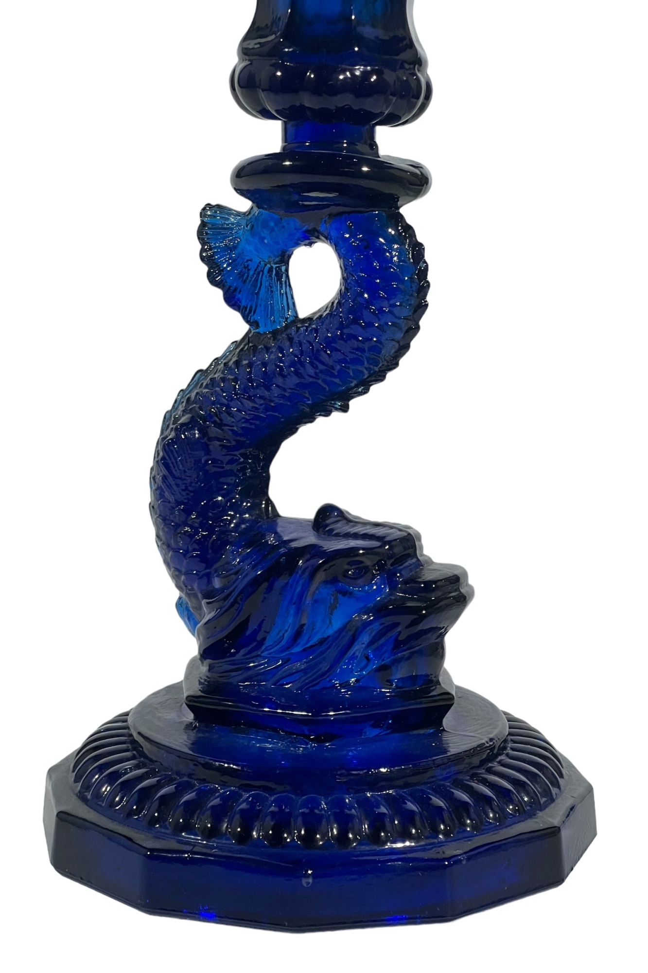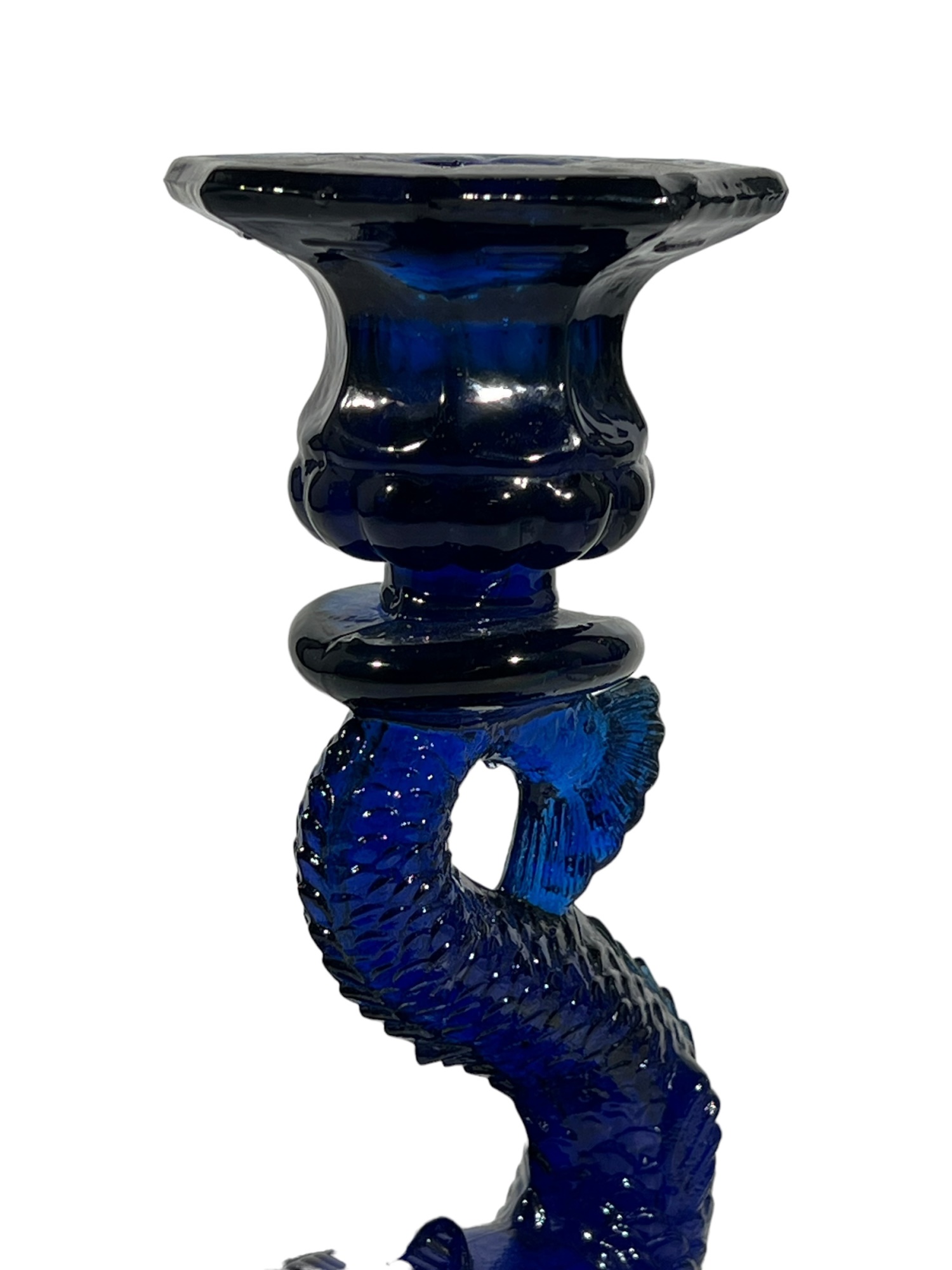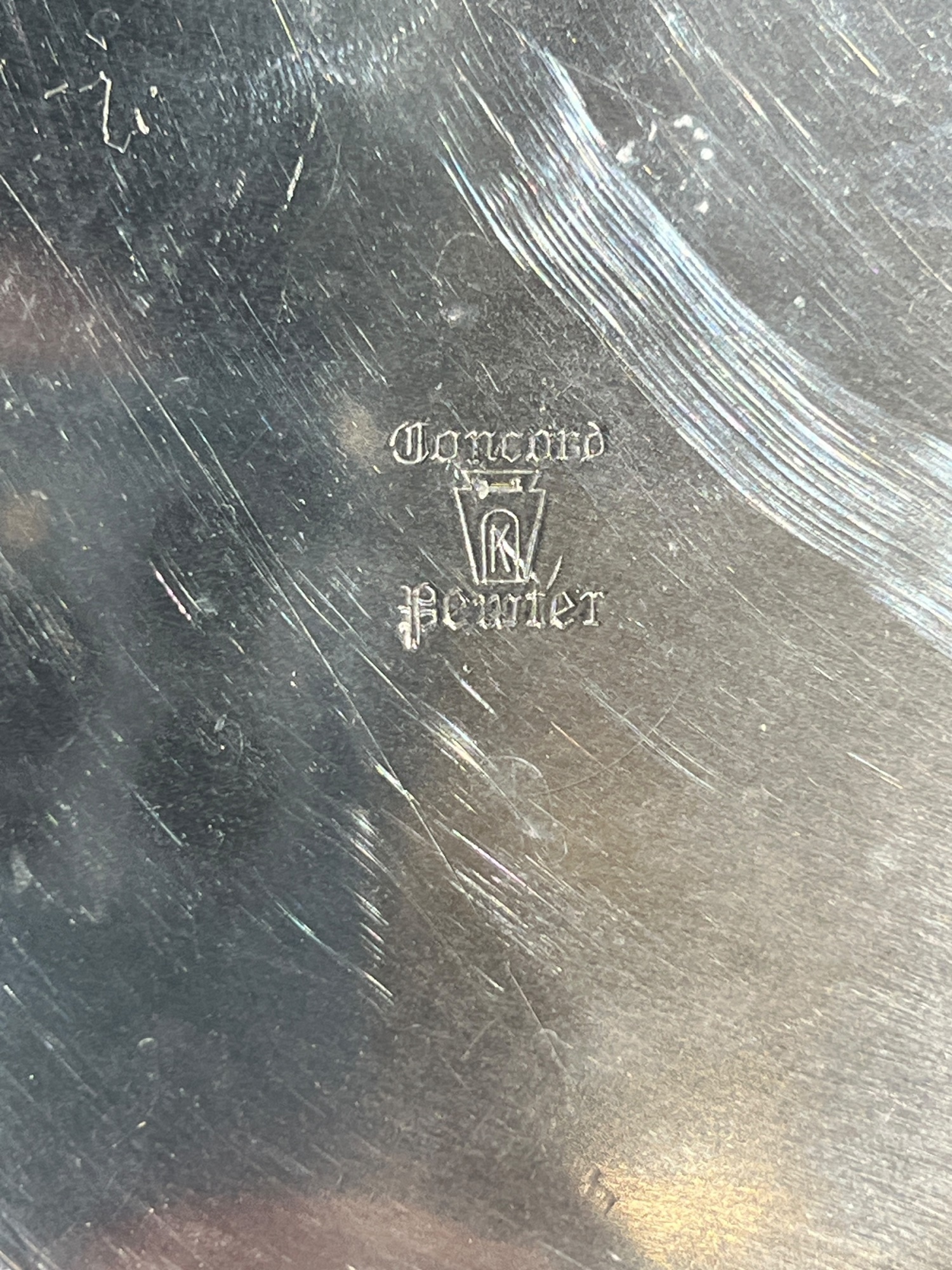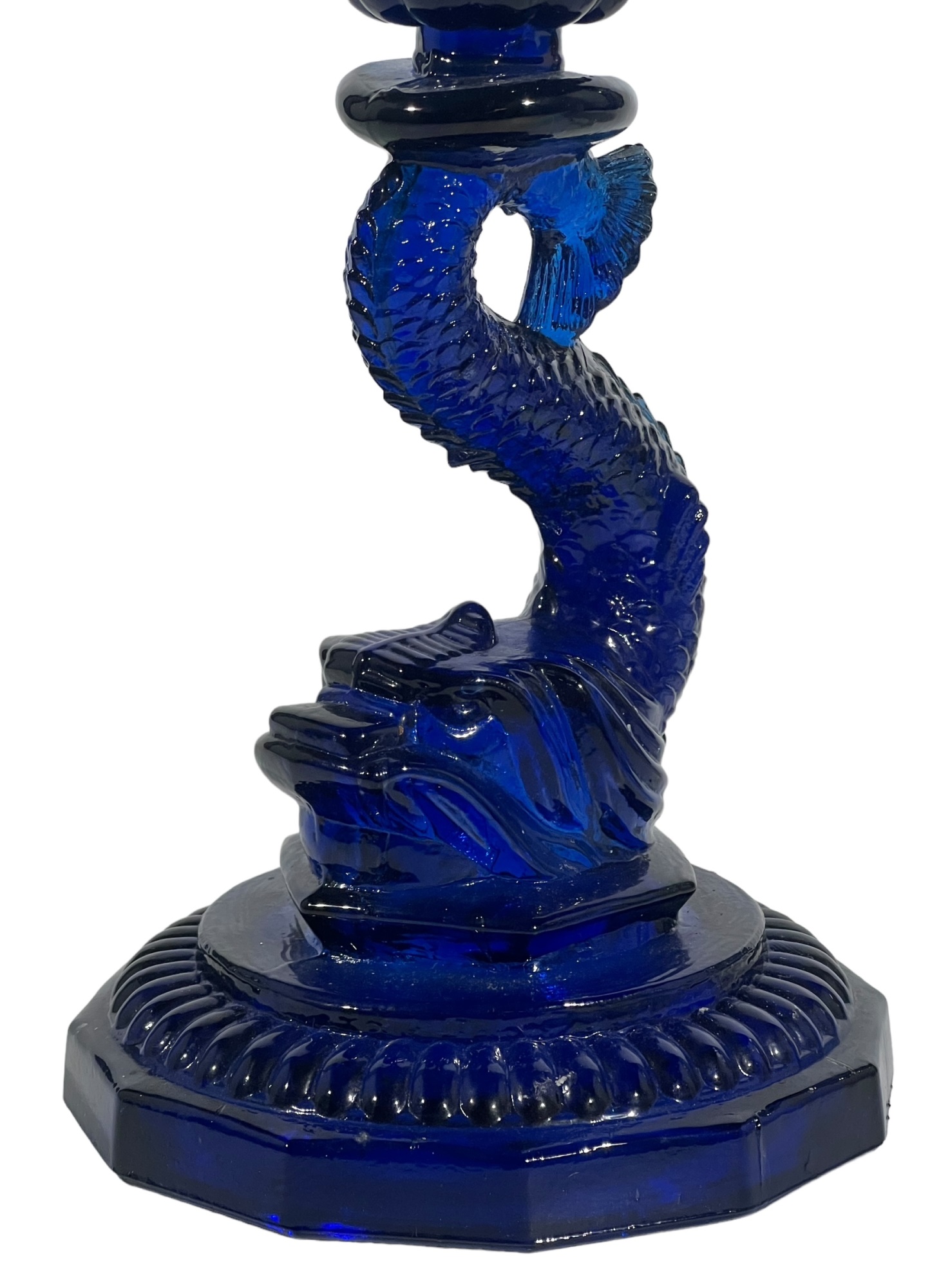 1957 Four Meters, 1st Prize to Red Cloud, pewter pitcher form 7 x 8 1/2 with a Cobalt Dolphin Glass Candlestick, 8 1/4 inches