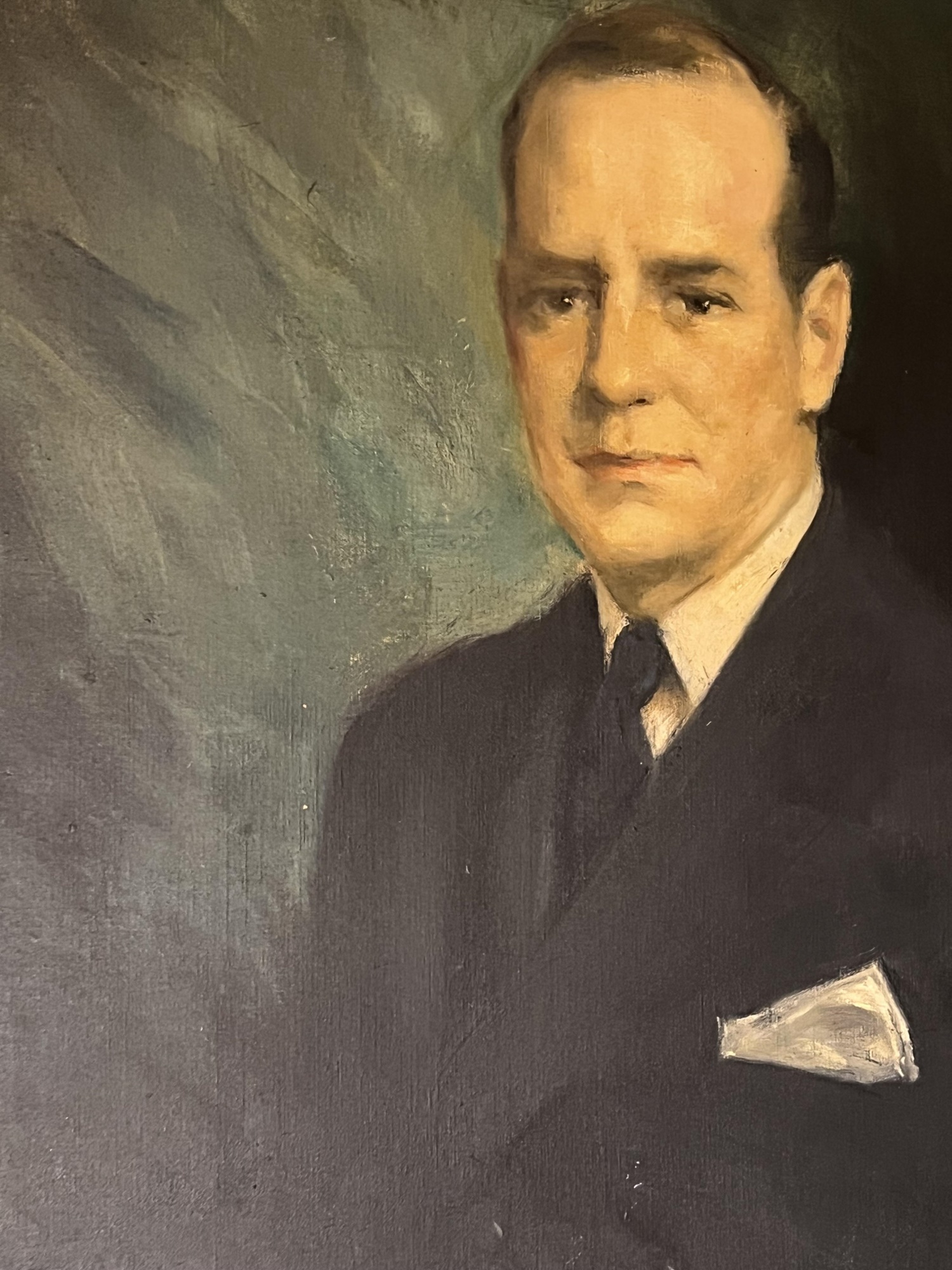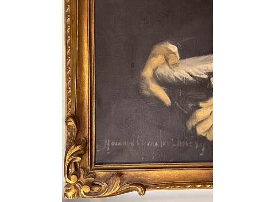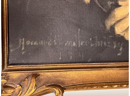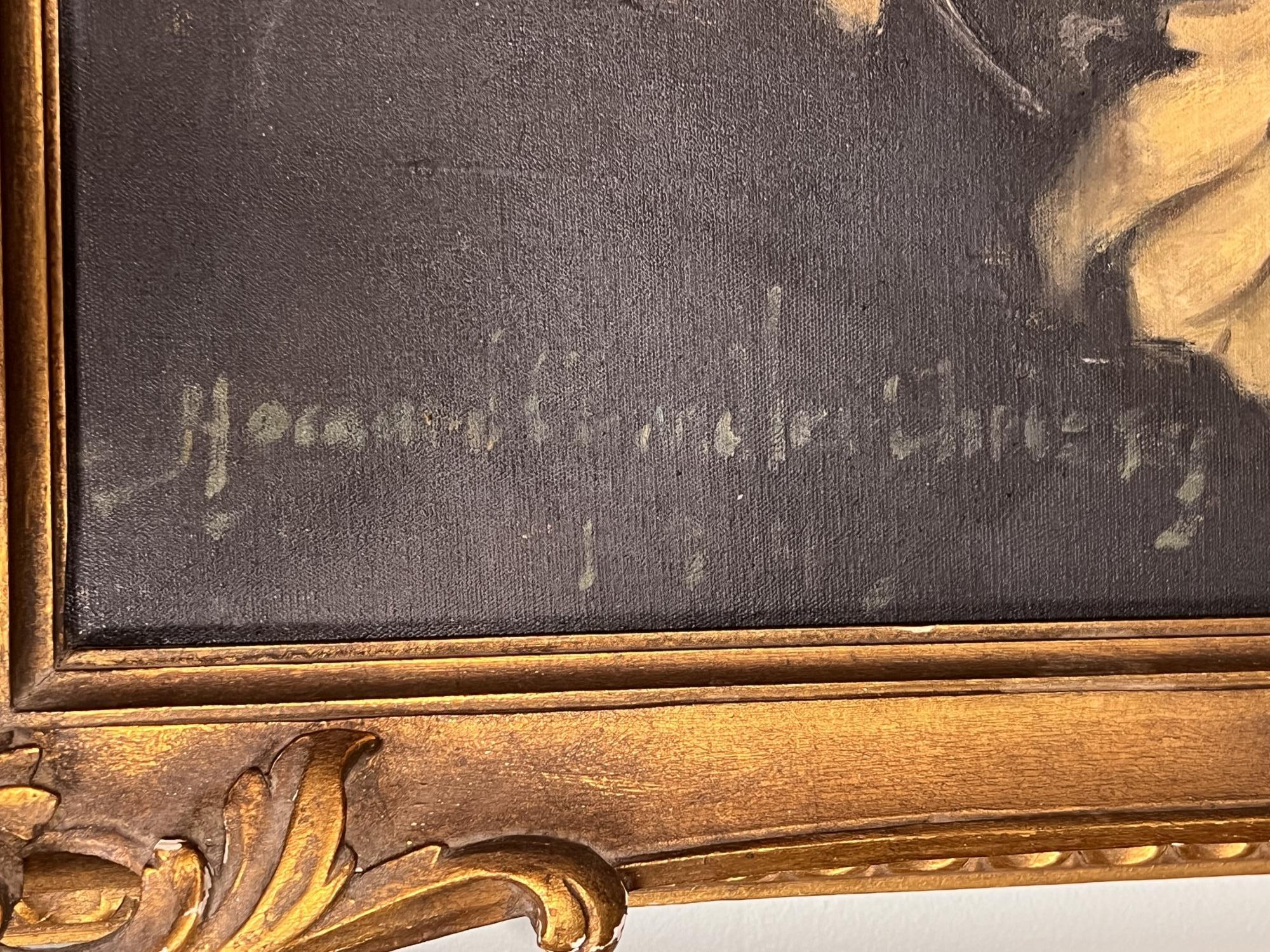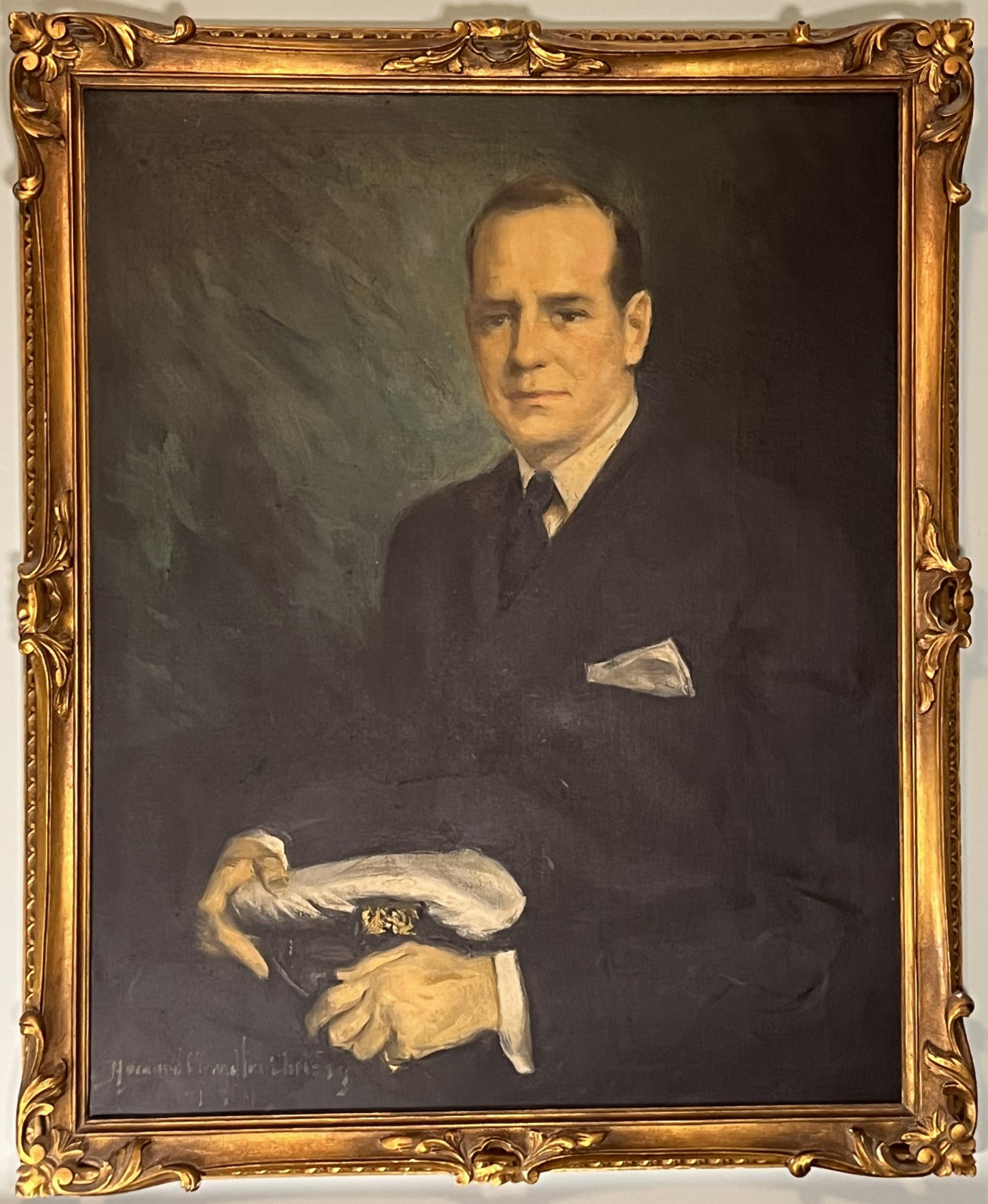 Portrait of John Vaughan Clarke III, scion of a Chicago banking family. Christy was a well known illustrator and portrait artist who painted Theodore Roosevelt, Warren G Harding, Calvin Coolidge, Herbert Hoover, FDR and Harry Truman. Oil on canvas, housed in nice signed carved gilt A. Pancani frame, signed lower left and dated 1947. 38 1/2 x 32 inches framed. Provenance: The painting was gifted directly to the consigners family from the Clark family in the mid 20th c. The families were close friends