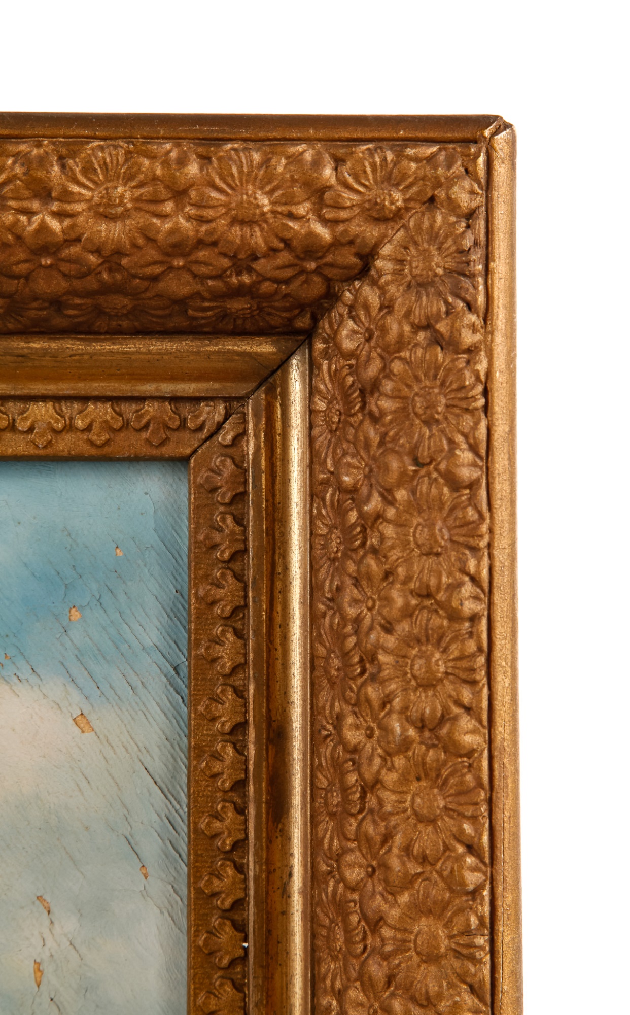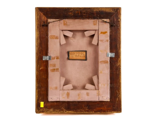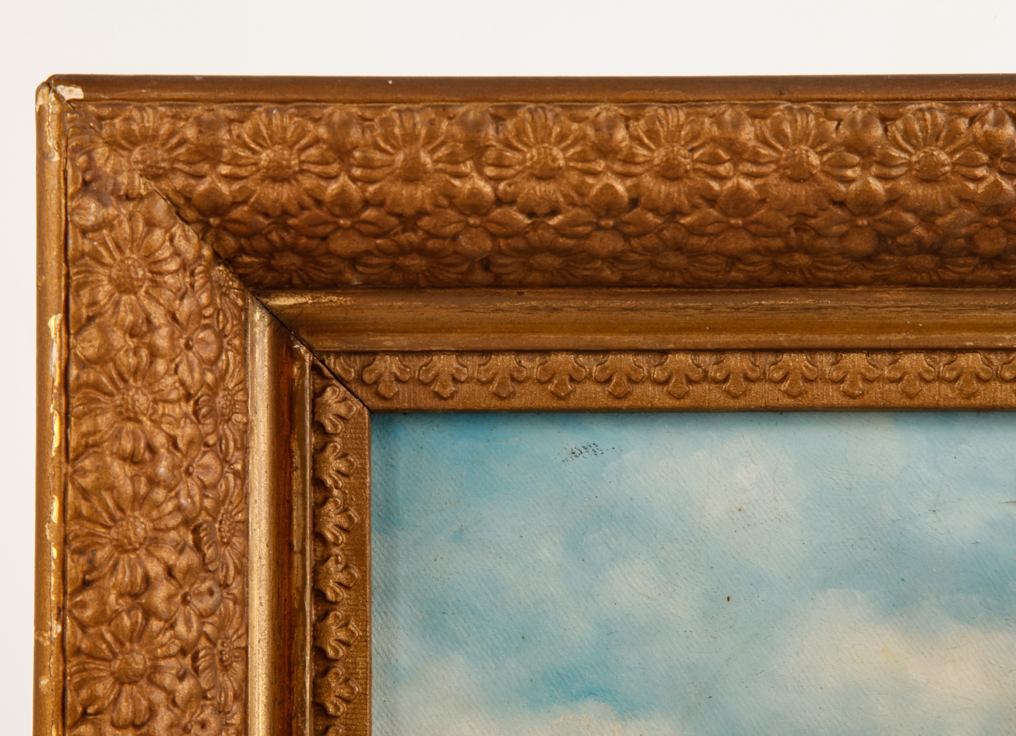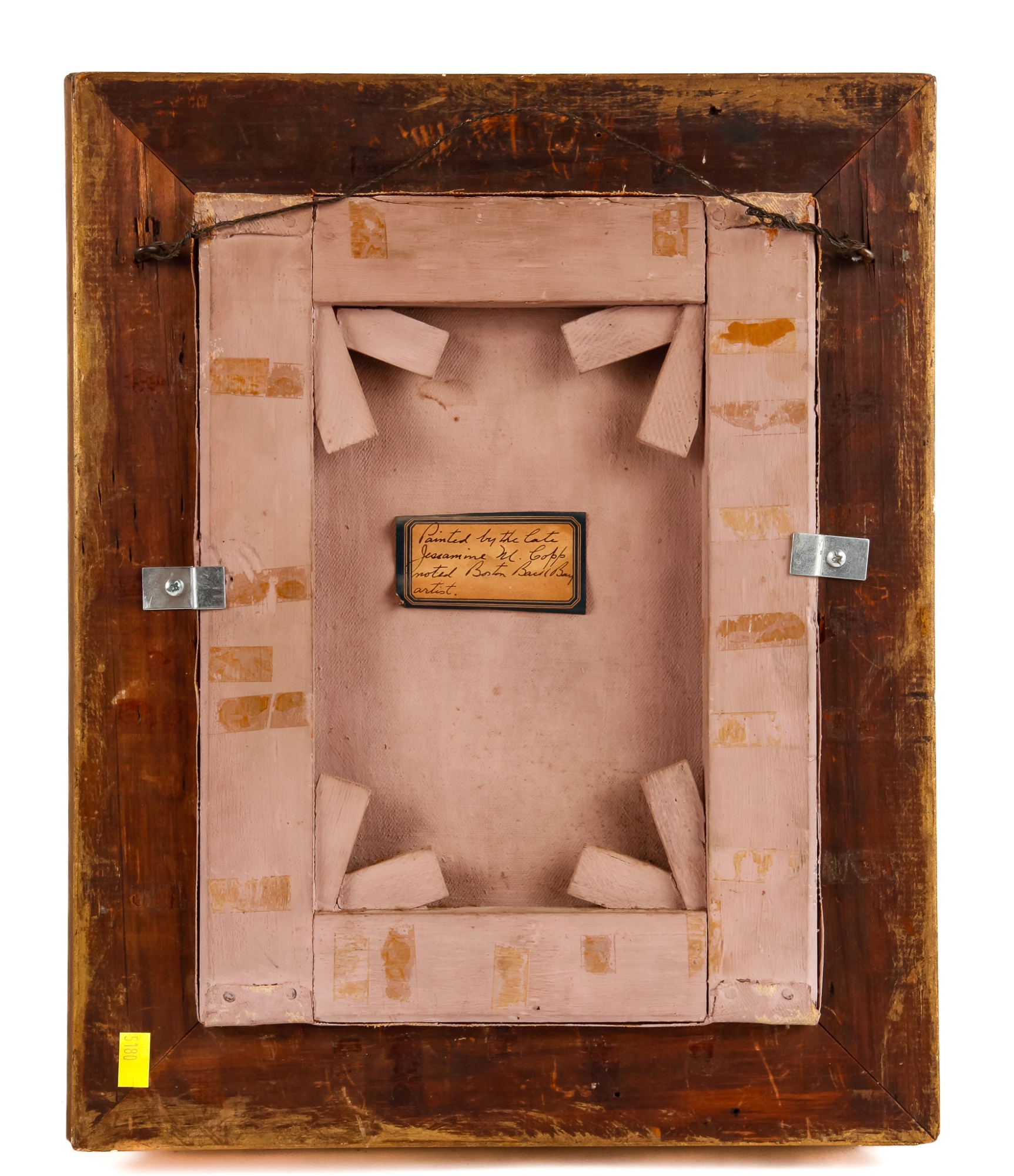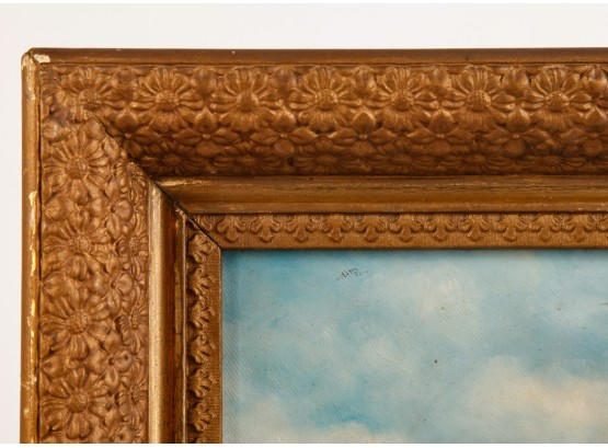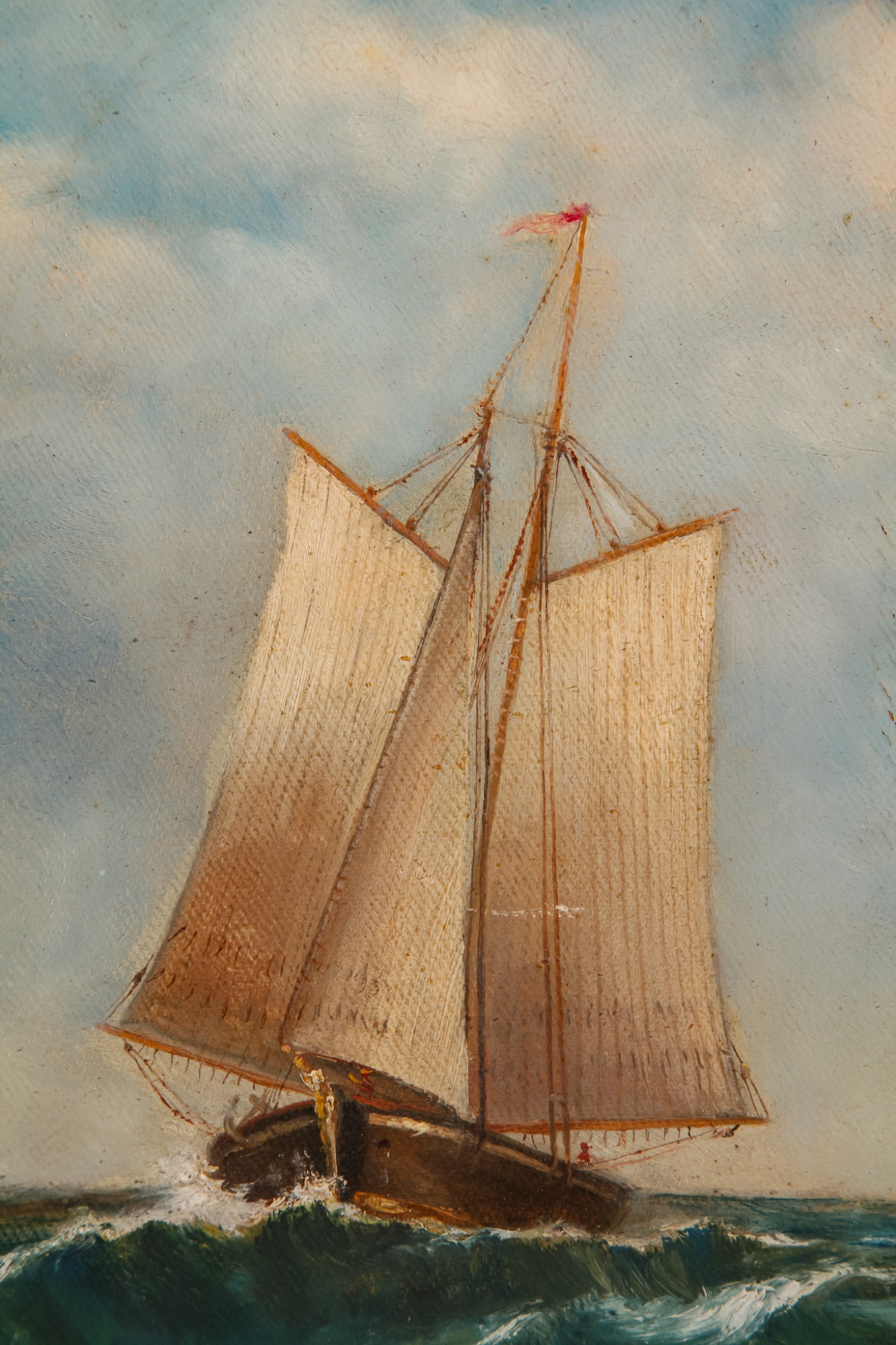 Oil on Canvas, Ship at Sea, Boston Back Bay Artist in Victorian frame. Unsigned, note on reverse. 16 1/2 x 13 1/2 inches framed.