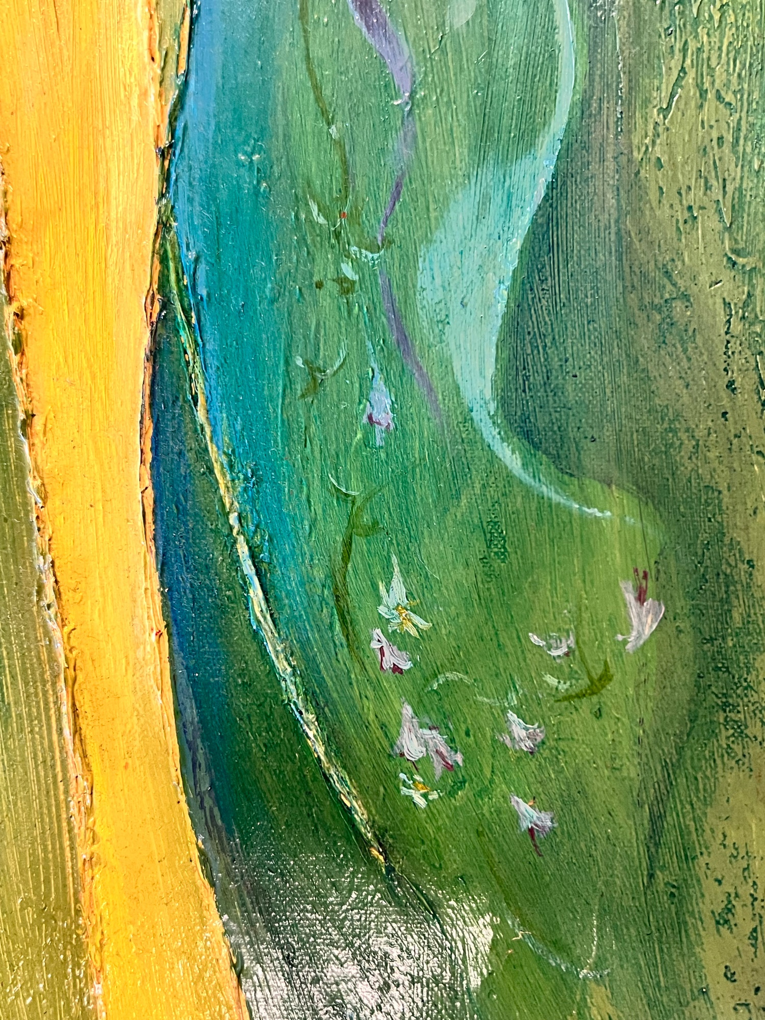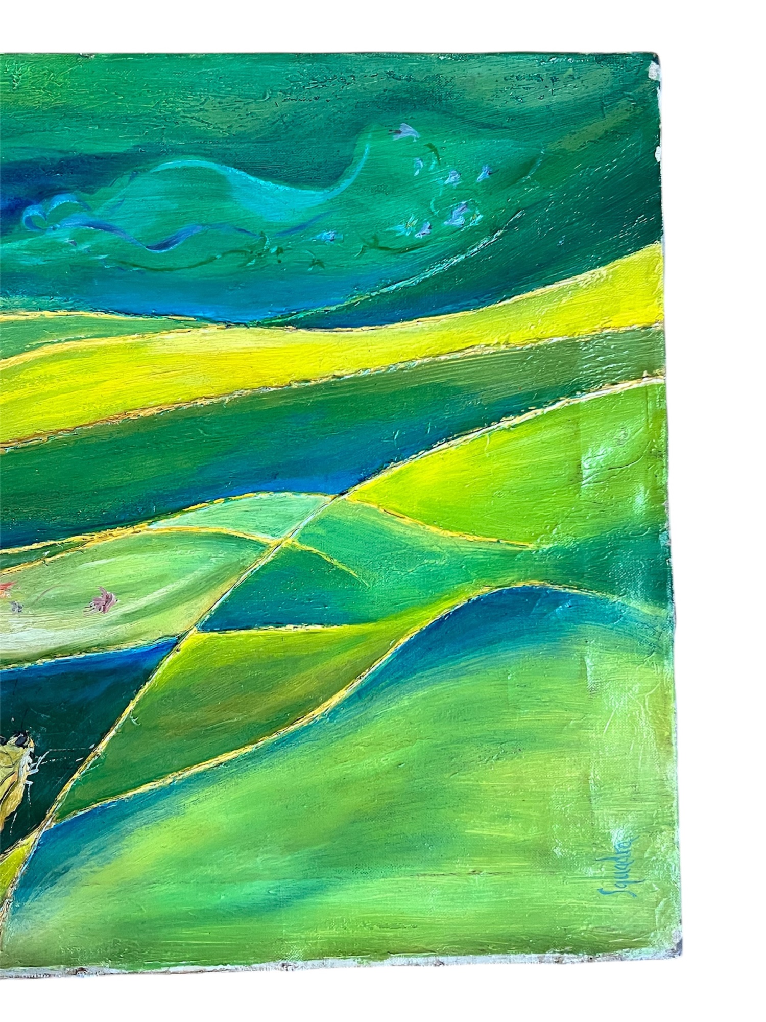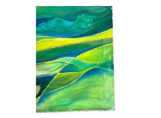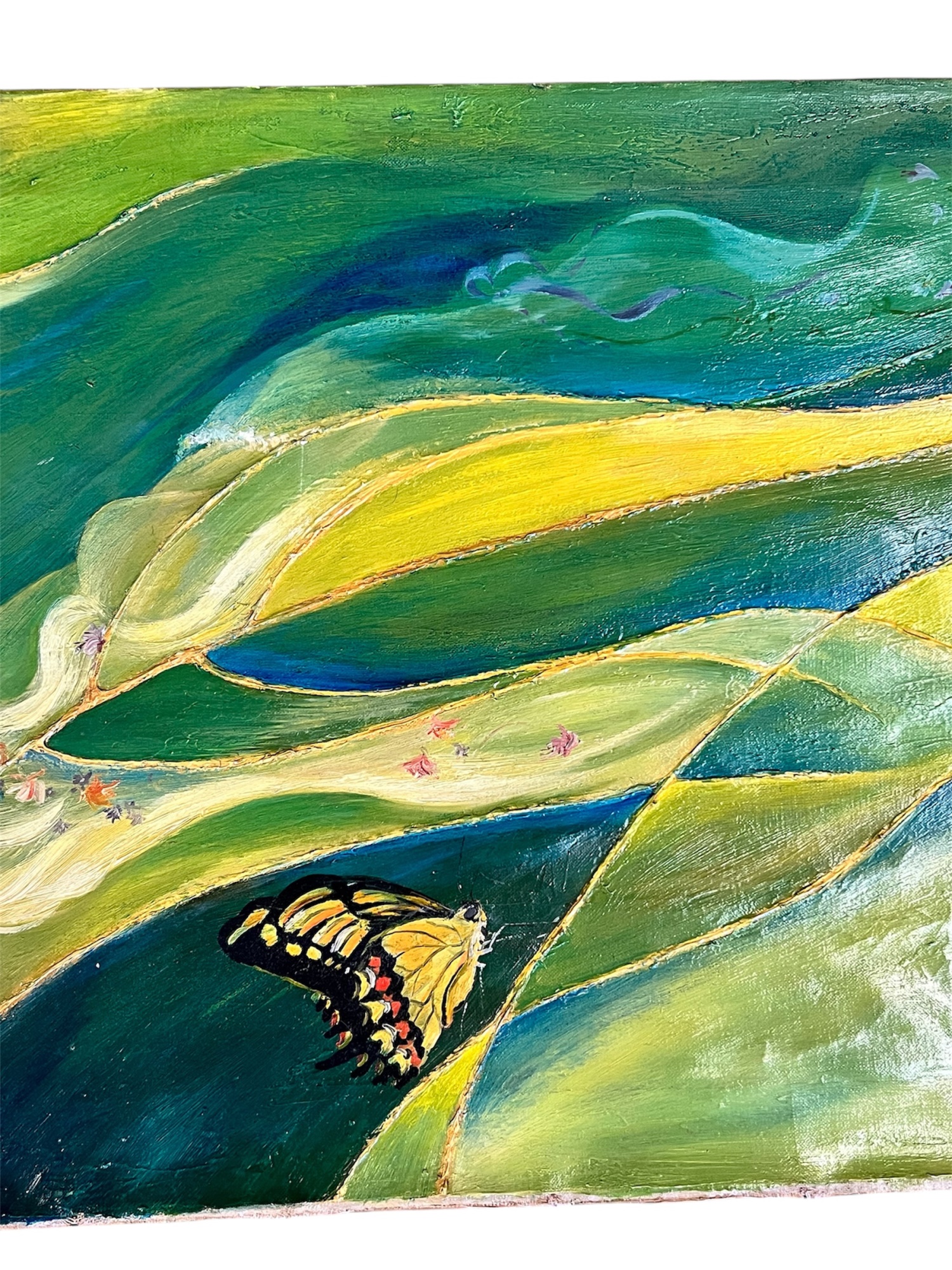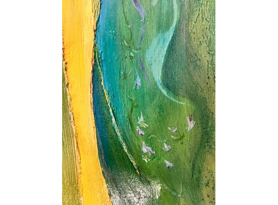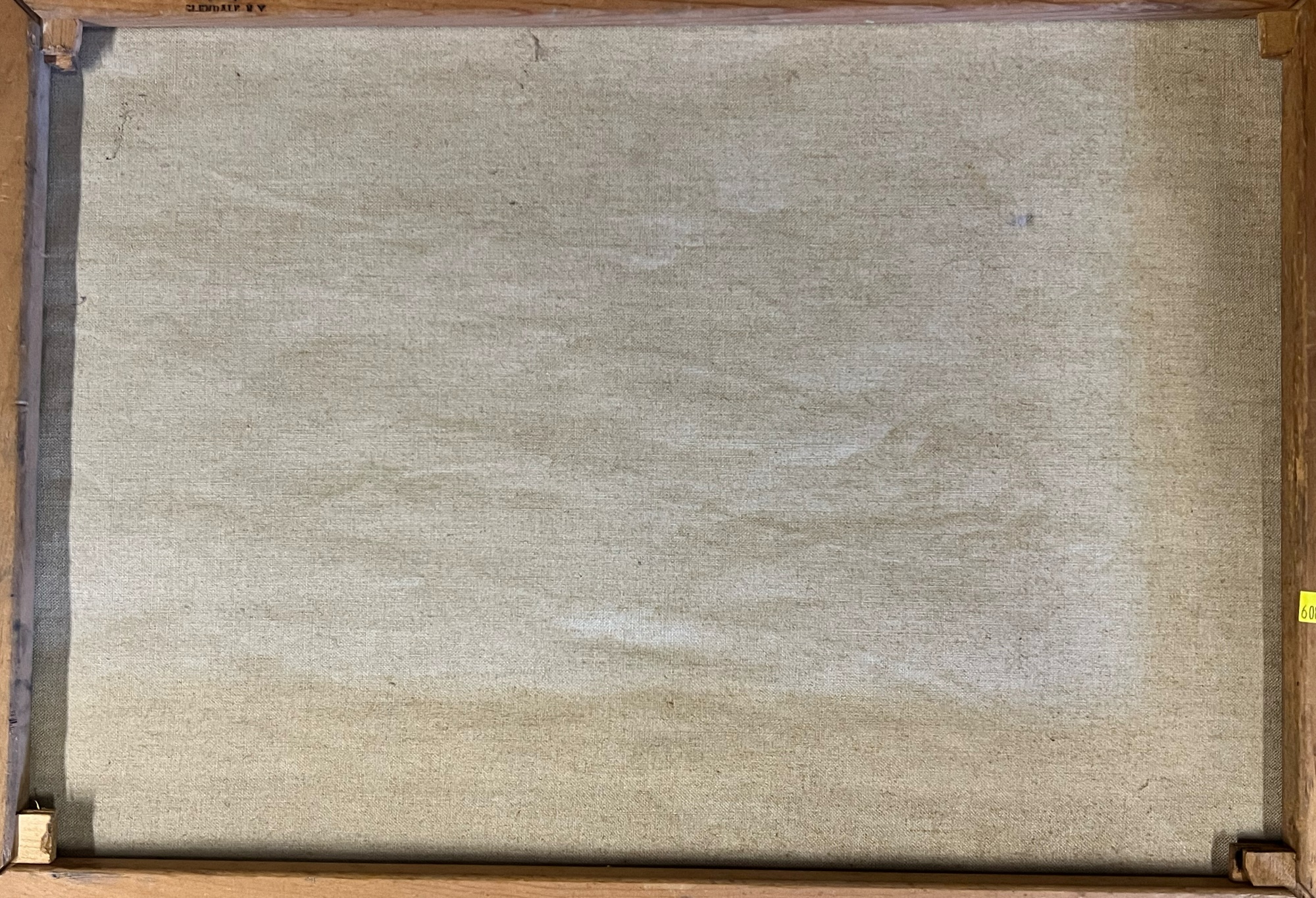 (Butterfly on Flower) oil on canvas 22 x 16 inches. signed Condition: Good, minor paint loss near edges Temp No 6101